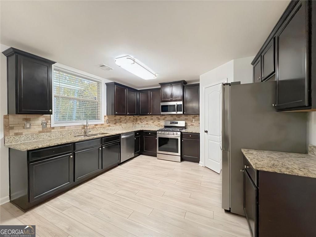 Welcome to 2416 Peach Shoals in the highly desirable Peachtree Shoals community of Dacula! This beautifully updated 5-bedroom, 3-bathroom home features a bright, open layout filled with natural light, fresh interior paint, and comfortable living spaces designed for today's lifestyle. At the heart of the home, the spacious kitchen showcases granite countertops, stainless steel appliances, and abundant storage, seamlessly opening to the family room for effortless entertaining and everyday living. The main level also includes a welcoming guest bedroom with full bath, a separate dining room, and a versatile flex space ideal for a home office, playroom, or sitting area. Upstairs, you'll find four generously sized bedrooms, including an expansive primary suite with a soaking tub, separate shower, double vanity, and walk-in closet. Three additional bedrooms share a full bath, while the conveniently located upstairs laundry room adds everyday ease. A bonus media room offers the perfect space for movie nights, gaming, or relaxing at home. Step outside to a fully fenced backyard providing privacy and plenty of space for outdoor activities or gatherings. Ideally located near top-rated Dacula schools, Rabbit Hill Park, and Little Mulberry Park, this home is also just minutes from shopping, dining, and medical facilities. Residents of Peachtree Shoals enjoy access to a community walking trail. With quick access to Highway 316 and I-85, commuting is simple and convenient. Welcome Home!