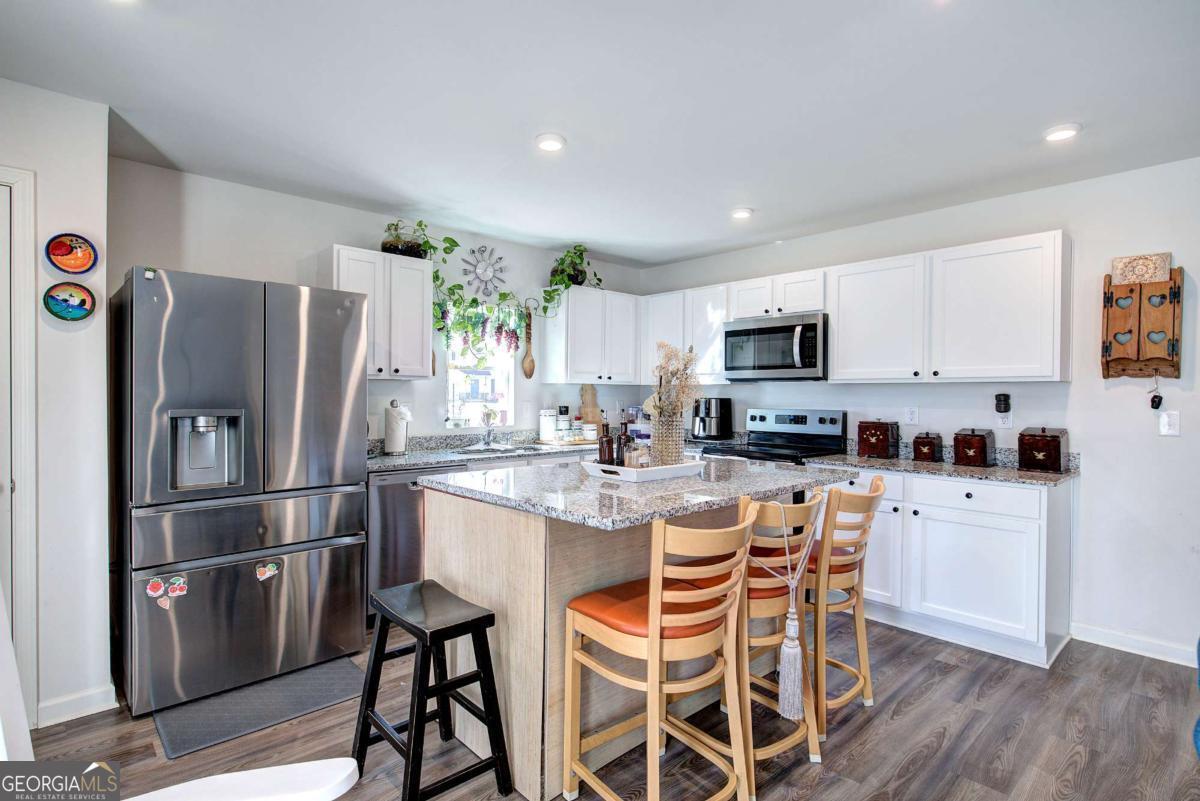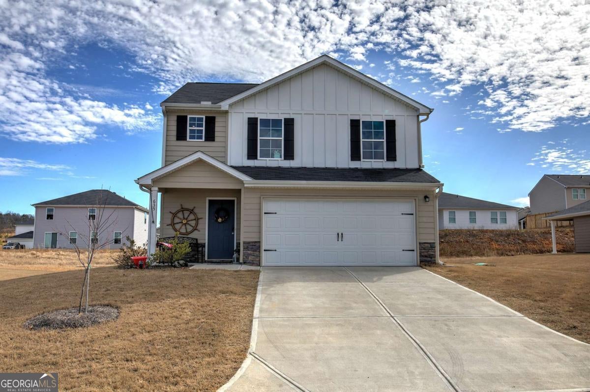Welcome home to 635 Tudor Street! This beautifully maintained two-story residence offers 3 bedrooms, 2.5 bathrooms, and a thoughtfully designed floor plan that blends comfort, style, and functionality. Luxury vinyl plank flooring flows throughout the entire main level, creating a seamless and durable foundation for everyday living. As you enter the home, you're welcomed by a bright foyer with a conveniently located half bathroom to the left-perfect for guests. The hallway opens into an inviting open-concept living space that effortlessly connects the living room, dining area, and kitchen. Large windows and a glass sliding door flood the space with natural light, creating a warm and airy atmosphere while providing easy access to the backyard. The kitchen is both stylish and practical, featuring crisp white cabinetry, solid-surface countertops, stainless steel appliances, a spacious pantry, and a large center island that offers additional seating and prep space-ideal for entertaining or casual meals. The adjacent dining area comfortably accommodates gatherings, while the living room provides ample space to relax and unwind. Upstairs, a versatile loft area offers the perfect spot for a home office, play area, or additional lounge space. The conveniently located upstairs laundry room includes cabinetry above the washer and dryer for extra storage, along with a solid-surface folding counter for added convenience. The en-suite is a true retreat, filled with natural light and generous in size. The en-suite bathroom features LVP flooring, a double vanity with solid-surface countertops, a separate shower and soaking tub, and a spacious walk-in closet with plenty of storage. Two additional bedrooms are located down the hall, each offering windows and closets and flexibility for guests, family, or office space. The secondary bathroom includes a tub/shower combination and white vanity topped with solid-surface countertops. Step outside to the flat, low-maintenance backyard-perfect for outdoor entertaining, gardening, or simply enjoying the outdoors. Completing the home is a two-car garage, providing ample parking and additional storage. This home offers a perfect balance of modern finishes, functional living spaces, and natural light-ready to welcome its next owner.