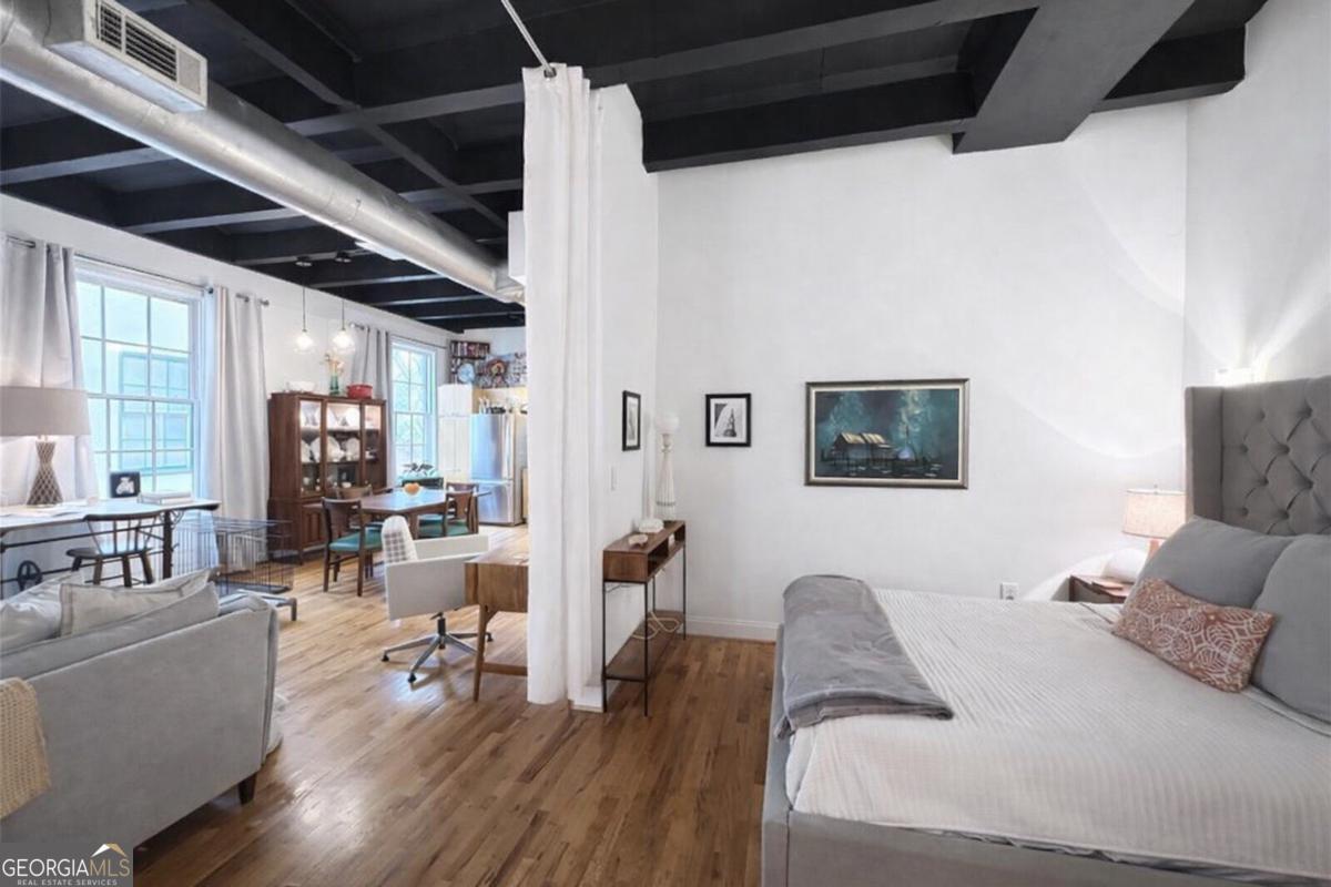 Welcome to urban living at its finest! Nestled in the heart of Historic Roswell, this 1-bedroom, 1-bathroom loft rental offers a unique and vibrant living experience. As you enter, you are greeted by the expansive open-concept design, featuring soaring ceilings and large windows that flood the space with natural light. The living area is a versatile haven, providing ample space for both relaxing and entertaining. Exposed concrete walls and industrial-chic details add character and charm to the loft, creating a trendy and inviting atmosphere. The kitchen is a stylish focal point, boasting modern stainless appliances, sleek cabinetry, silestone counters - perfect for enjoying casual meals or entertaining guests. The loft's thoughtful design seamlessly blends the kitchen into the living space, creating a dynamic and functional environment. The bedroom is a cozy retreat, offering tranquility. With its unique lofted design, this space allows for creativity in furniture arrangement and provides a sense of separation from the main living area. The bathroom is elegantly appointed with contemporary fixtures and finishes. This loft rental comes complete with in-unit laundry facilities, providing convenience and ease. The building itself offers additional amenities, including secure gated entry, an abundance of parking, and swimming pool and tennis court for residents to enjoy. Situated in the heart of Roswell, you'll have easy access to the city's historic district, vibrant dining scene, and charming boutiques. Enjoy the nearby parks and recreational areas, or take a leisurely stroll along the picturesque streets of Roswell. This loft rental offers a perfect blend of modern comfort and historic charm. Embrace the energy of Roswell living - Make this stylish loft your next home!