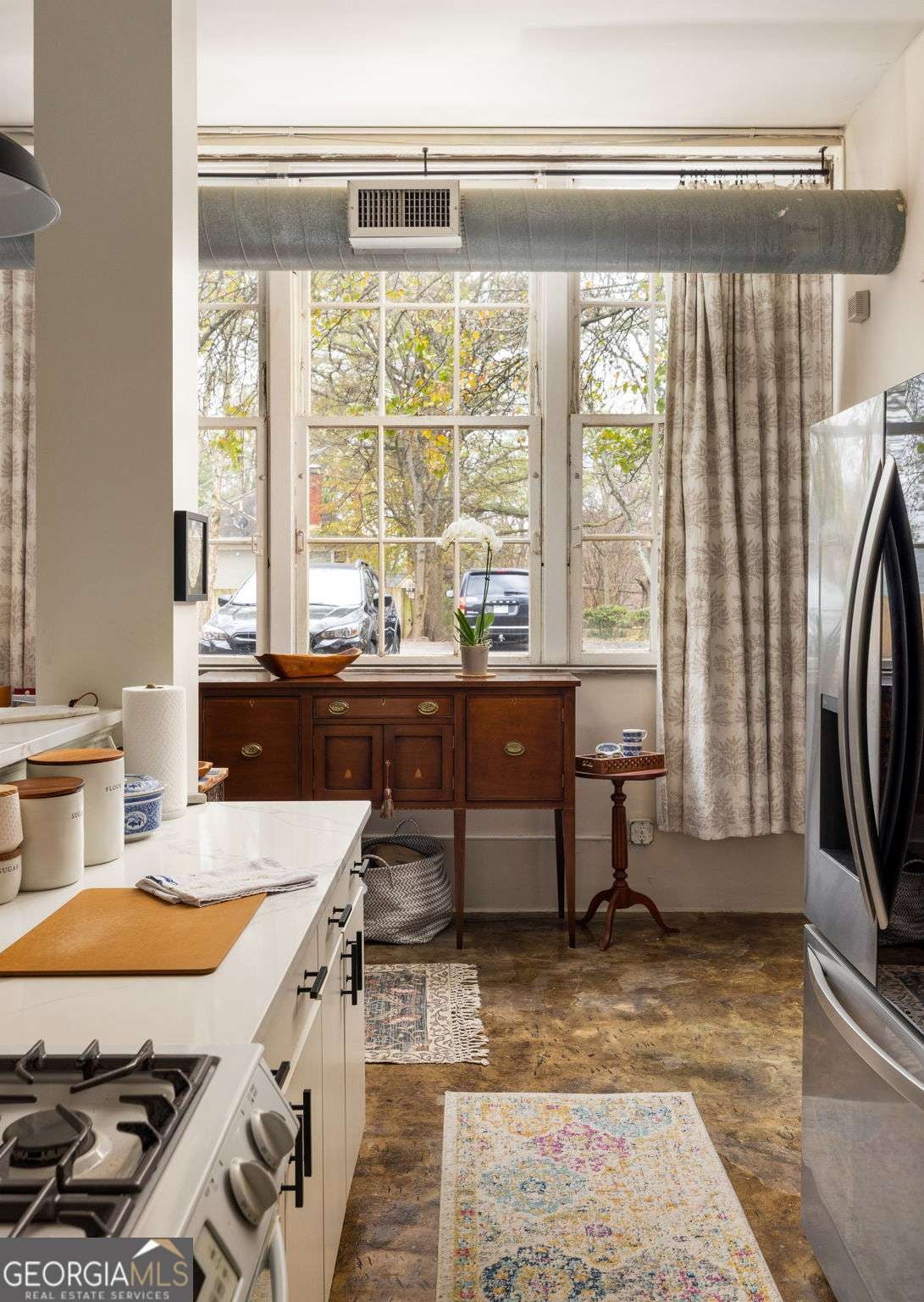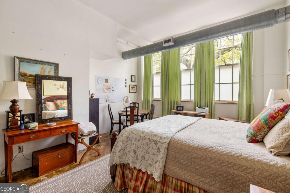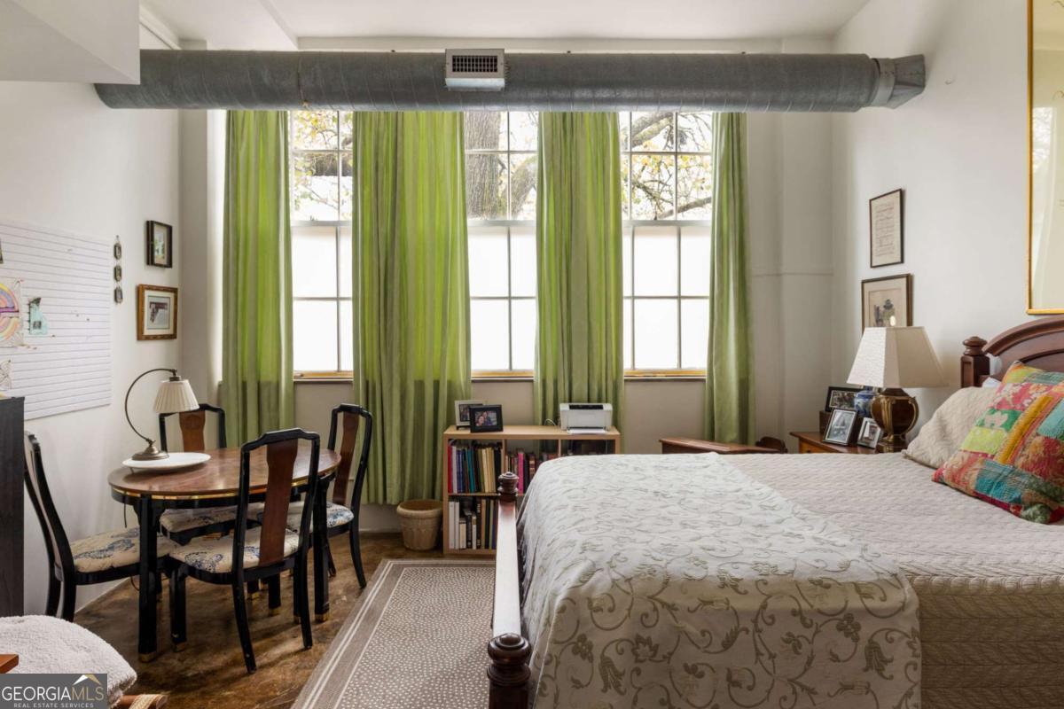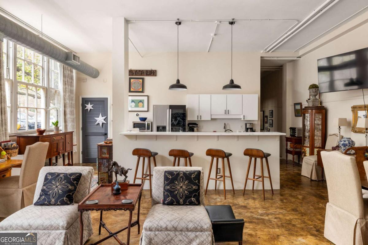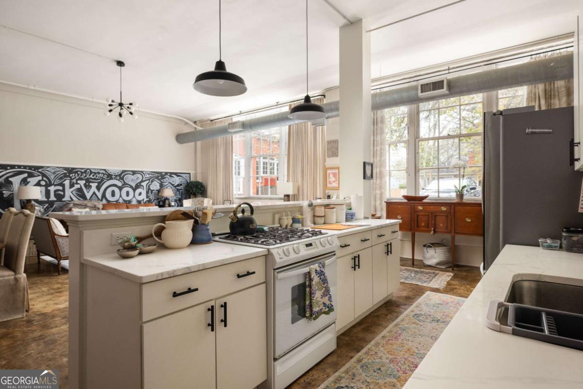Step into a piece of Kirkwood history with this one-of-a-kind loft in a converted school building, now home to just 21 distinctive residences. Originally the music room, this spacious 2-bedroom, 1-bath loft blends industrial character with creative charm. Inside, you'll find soaring ceilings, expansive windows that flood the space with natural light, and concrete floors that anchor the home with authentic loft style. The open, airy layout offers exceptional flexibility for living, dining, working, and entertaining, all within a setting that feels both dramatic and comfortable. What truly sets this property apart are the incredible grounds - a rarity in intown Atlanta. Residents enjoy sprawling green space, community gardens, and multiple sitting areas that create a peaceful, community feel that's hard to find. The unit also includes two assigned parking spaces plus plentiful parking for guests. The location is just as impressive. Situated directly across from Bessie Branham Park and only a few blocks from the restaurants, shops, and beloved bakery in Kirkwood Village, you get the perfect blend of nature, walkability, and vibrant neighborhood energy. Historic soul, artistic character, and outdoor space you simply won't find elsewhere - this Kirkwood loft is anything but ordinary.