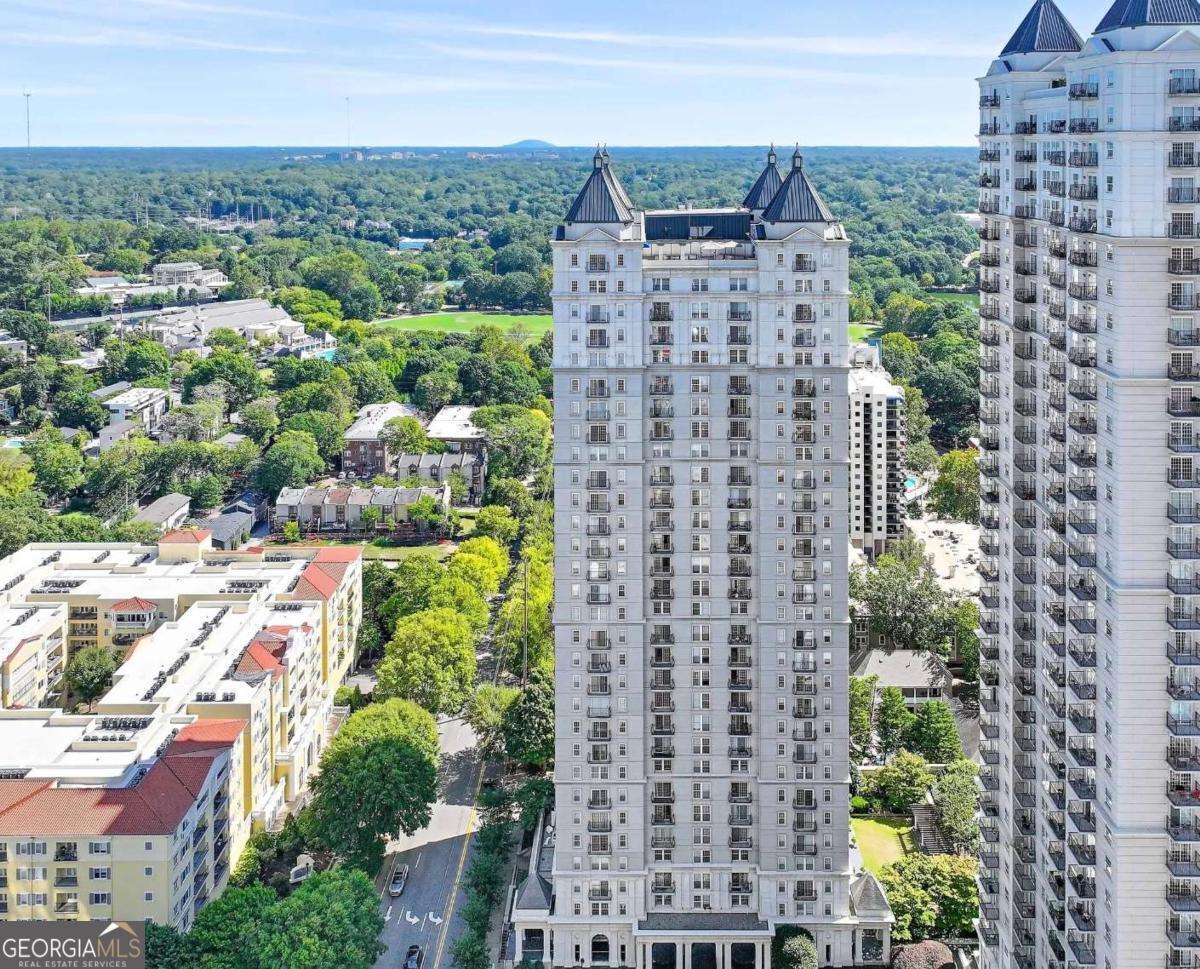 Updated 1 bedroom + den condo in iconic Mayfair Tower, ideally located in the heart of Midtown. This beautiful East-facing home offers serene views overlooking the lush tree canopy of Piedmont Park, creating a peaceful retreat in the middle of the city. The renovated kitchen features gorgeous granite countertops, an integrated breakfast bar, stainless steel appliances, and a sleek glass-tiled backsplash-perfect for both everyday living and entertaining. Rich espresso-colored hardwood floors run throughout the unit, adding warmth and sophistication. The updated bathroom includes double sinks and generous storage, while the spacious walk-in closet is outfitted with custom built-in organizers. A full-sized washer and dryer are included for added convenience. The separate den offers flexible space ideal for a home office, cozy sitting area, or creative studio. Updated mechanicals provide peace of mind. Mayfair Tower offers 24-hour concierge service and an unbeatable location just moments from Piedmont Park, the Woodruff Arts Center, Atlanta Symphony, High Museum, Colony Square, and a wide variety of dining and entertainment options. High-speed internet is included. New resort-style pool is coming soon!