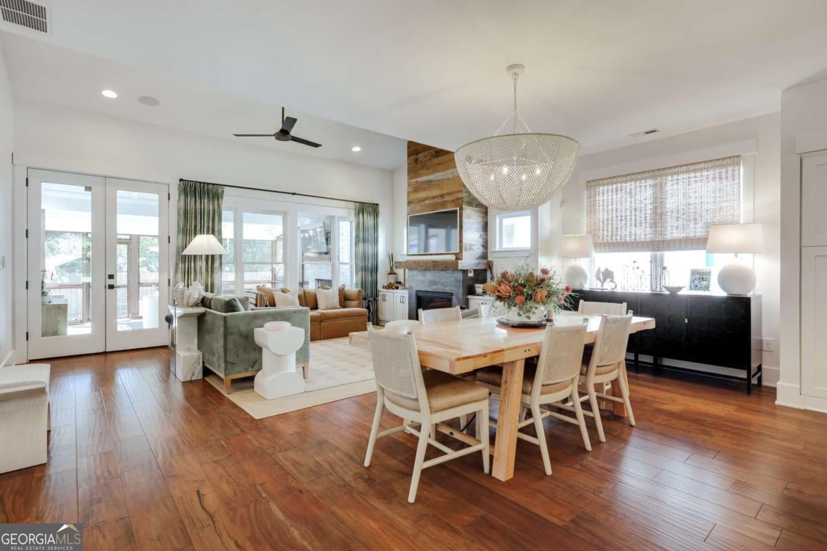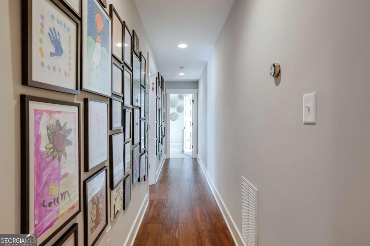 Located in Athens' Cobbham Historic District near Piedmont Athens Regional and Normaltown dining, this 2016-built home offers modern construction, open living spaces, and a private fenced backyard. The layout combines high ceilings, hardwood floors, and abundant storage with a functional floor plan designed for everyday living and entertaining. The kitchen overlooks the family room and features a large center island, custom cabinetry, upgraded lighting, stainless appliances, and ample workspace. Just off the kitchen, a dedicated office with large front-facing windows provides natural light and views of the front yard. The screened porch serves as an extension of the living space and includes a fireplace, ceiling fans, built-in heaters, and room for dining and seating. The primary suite is located on the main level and includes a walk-in closet and spacious bath with double vanities and a large shower. Upstairs, a guest suite features a private bath, while two additional bedrooms share a Jack-and-Jill bath. An additional bedroom or flex space with Murphy bed provides versatility for guests, office, or exercise. The fenced backyard offers privacy and usable green space. A two-car garage includes finished spa space with tiled walls, sauna, and cold plunge. Convenient access to downtown Athens, UGA, Piedmont Hospital, and neighborhood restaurants.