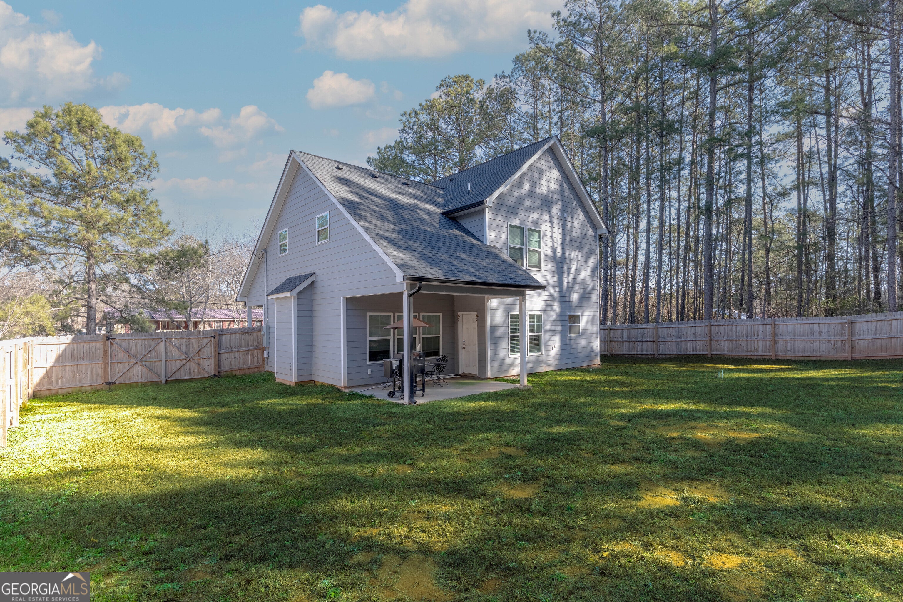 Welcome to 157 Watkins Drive, a modern 3-bedroom, 2.5 bath home built in 2022, featuring 1,967 sq ft of living space in Flovilla, Georgia. Step through the front door into a spacious living room with vaulted ceilings that create an open, airy feel right from the start. The design flows seamlessly into the kitchen and dining area, making this an ideal open-concept layout for everyday living or entertaining. The kitchen offers ample cabinetry and counter space, plus a large island that's great for meal prep or casual dining. Upstairs, the primary bedroom includes an en-suite bath, with two additional bedrooms and a full bath providing comfortable space for family or guests. The backyard is fully fenced with privacy fencing, offering seclusion and plenty of room for outdoor activities, pets, or gardening. Located in Butts County, the home is just minutes from Jackson and about 10 miles from I-75, combining small-town convenience with easy access to bigger-city amenities. Seller is offering a $4,000 flooring allowance. Schedule a showing today to see this home in person!