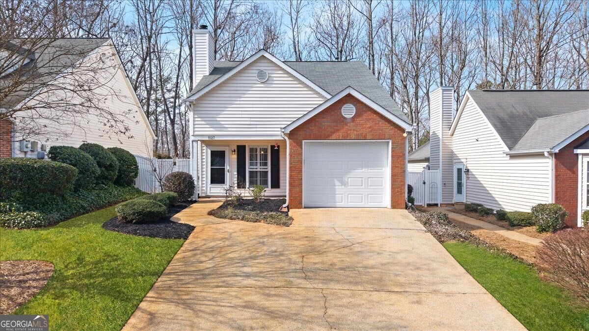 Welcome to 1127 Britley Park Lane in the heart of Woodstock! This charming two-story traditional home offers 3 bedrooms and 2 bathrooms with 912 square feet of thoughtfully designed living space. Step inside to an open-concept main level featuring a spacious family room that flows seamlessly into the kitchen-complete with white cabinetry, breakfast bar, pantry, and stone countertops. The layout is perfect for both everyday living and entertaining. The split-bedroom plan provides privacy, and the versatile loft adds flexible space for a home office, playroom, or additional lounge area. Enjoy durable and stylish finishes throughout, including hardwood and carpet flooring. Additional highlights include central heating and cooling, plantation shutters, and a one-car garage with automatic opener. Relax on the welcoming front porch or unwind on the back patio overlooking the neighborhood setting. Conveniently located near shopping, dining, and everything Woodstock has to offer, this home combines comfort, functionality, and value.