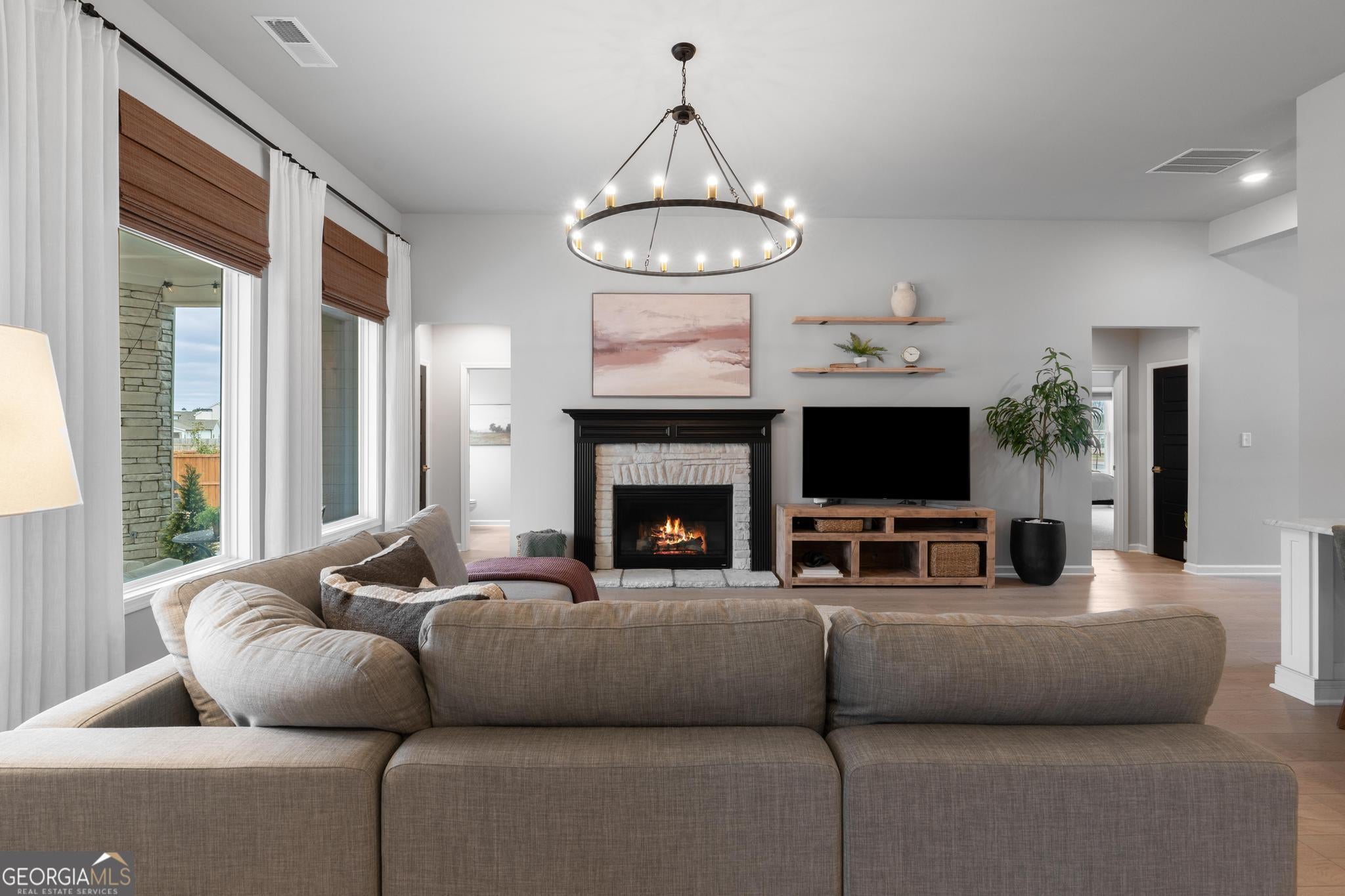 **Be sure to ask about our LENDER-PAID 1-0 BUYDOWN option! Enjoy an INTEREST RATE THAT IS 1% LOWER DURING YOUR FIRST YEAR** Welcome to 115 Putney Way, where life feels just a little sweeter only minutes from the heart of Senoia. Picture slow Saturday mornings at your favorite coffee shop, evenings strolling through downtown, and warm summer nights enjoying Alive After 5 before heading home to your own peaceful retreat. From the moment you step through the front door, the soaring TWO STORY FOYER makes a statement. Natural light pours in as the home opens to a welcoming DINING ROOM ready for holiday gatherings and a private OFFICE OR FLEX SPACE that easily adapts to your lifestyle. As you move further in, the home unfolds into a spacious LIVING ROOM where a beautiful fireplace draws everyone together. It is the kind of space that feels cozy on quiet nights yet perfectly suited for entertaining. The heart of the home is the STUNNING KITCHEN, with QUARTZ COUNTERTOPS, a GAS STOVE, and elevated finishes that go far beyond builder grade. Whether you are hosting friends or simply cooking dinner at home, this space was designed to be enjoyed. Tucked away for privacy, the PRIMARY SUITE feels like its own retreat. Sliding barn doors add character while the spa inspired bath offers a LONG DOUBLE VANITY, SOAKING TUB, STAND UP SHOWER, and a LARGE WALK IN CLOSET WITH CUSTOM CABINETRY that makes everyday living feel organized and effortless. With 4 BEDROOMS, 3.5 BATHS, and 3,711 SQUARE FEET, there is room for everyone. Two additional bedrooms on the main level are set apart by their own hallway, creating an ideal setup for guests or multigenerational living. Out back, the story continues. A NEW PRIVACY FENCE surrounds the yard, creating a peaceful setting to unwind by your OUTDOOR FIREPLACE under the Georgia sky. It is the perfect place to relax at the end of the day or gather with friends on the weekend. This is not just a home that checks the boxes. It is one that feels intentional, upgraded, and ready for the next chapter to begin.
