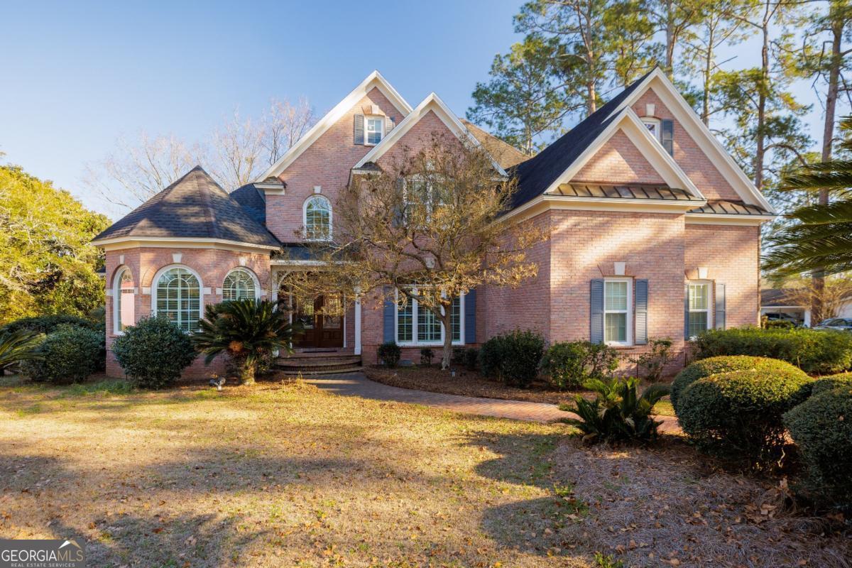 Step into timeless elegance at this brick home located in the desirable Bear Creek neighborhood. Rich hardwood floors set the tone throughout the heart of the home. The living room features a welcoming fireplace creating a warm, inviting atmosphere while the separate family room offers additional space to relax and gather. The well-appointed kitchen features a sit-in bar, two sinks, and beautiful custom cabinetry. Enjoy hosting in the formal dining room or casual meals in the breakfast nook. Two convenient half bathrooms on the main level add ease for both everyday living and entertaining. The luxurious primary suite is true retreat with a spa-like bathroom designed for relaxation. Upstairs you can find three oversized bedrooms, one with a private bathroom and the other two sharing a jack-and-jill bathroom with private vanities. The two dedicated offices provide flexibility for work, guests, or hobbies. The covered back patio is the perfect place to unwind while overlooking the serene pond - an ideal setting for morning coffee or outdoor entertaining. Completing the property is a spacious three-car garage along with a detached garage/workshop. This home offers an exceptional opportunity for upscale living in a peaceful setting.