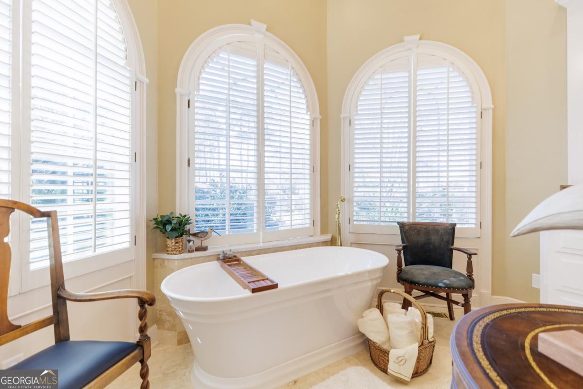 - Interior FeaturesDouble Vanity, High Ceilings, Master On Main Level, Separate Shower, Soaking Tub, Split Bedroom Plan, Split Foyer, Tile Bath, Tray Ceiling(s), Walk-In Closet(s)