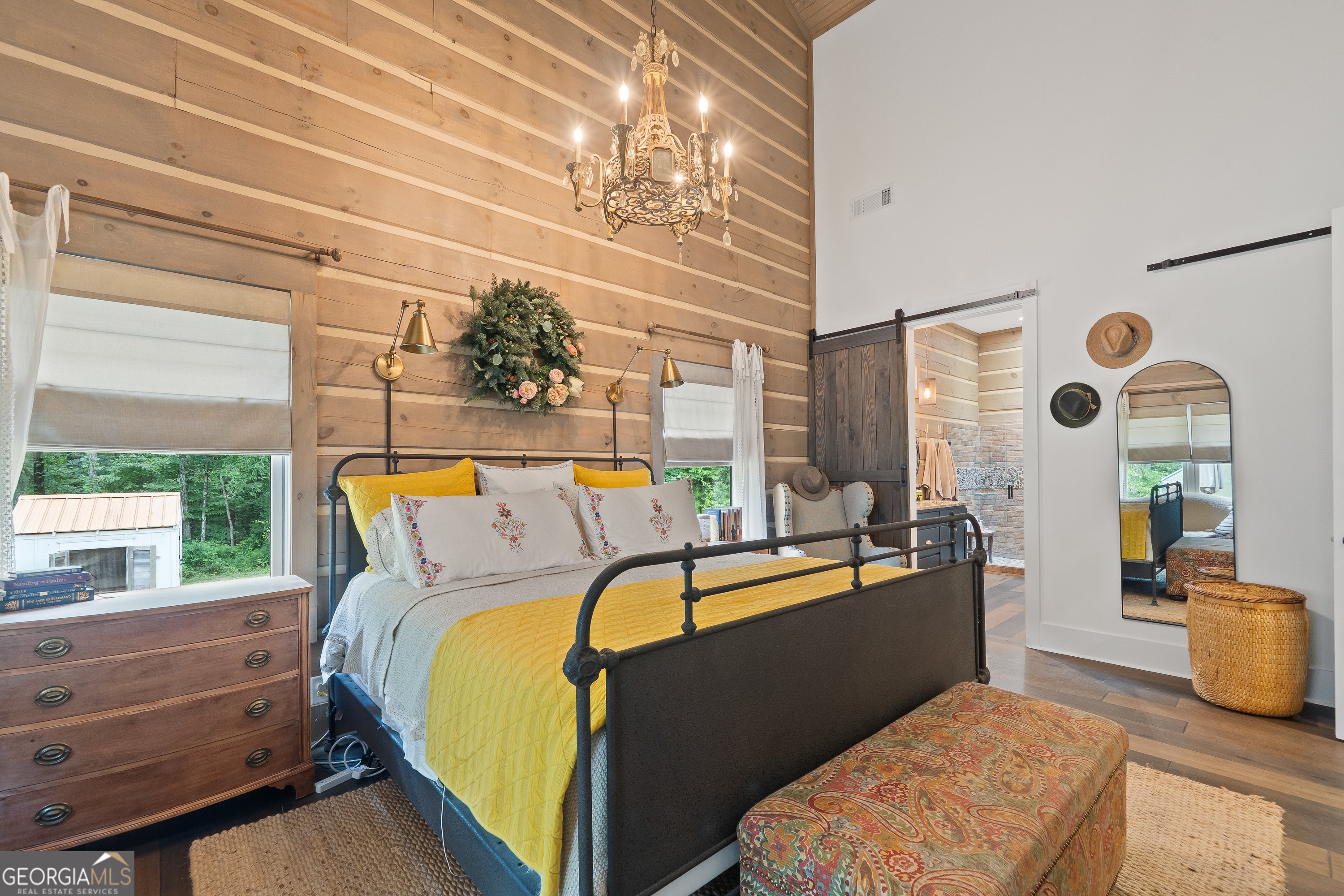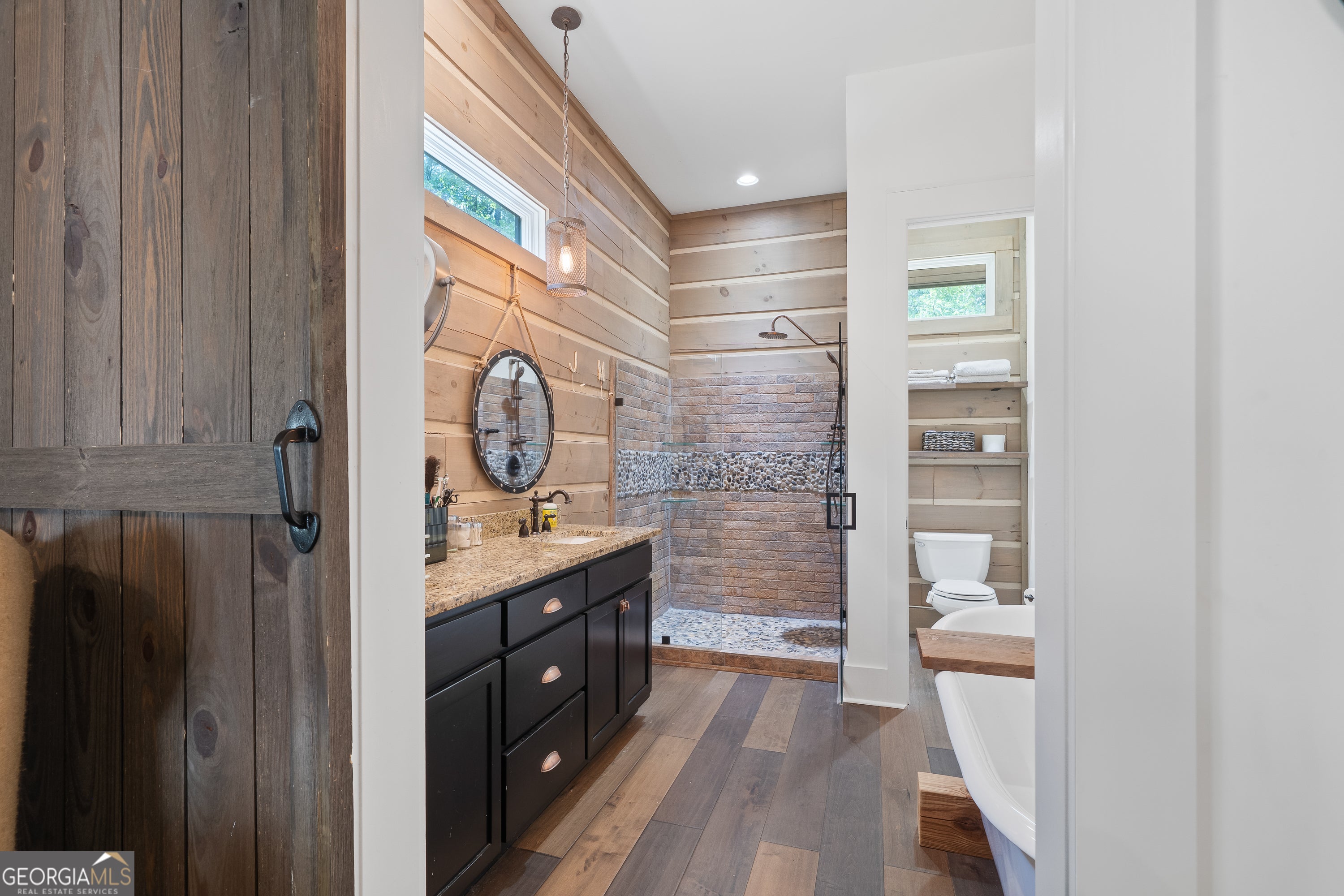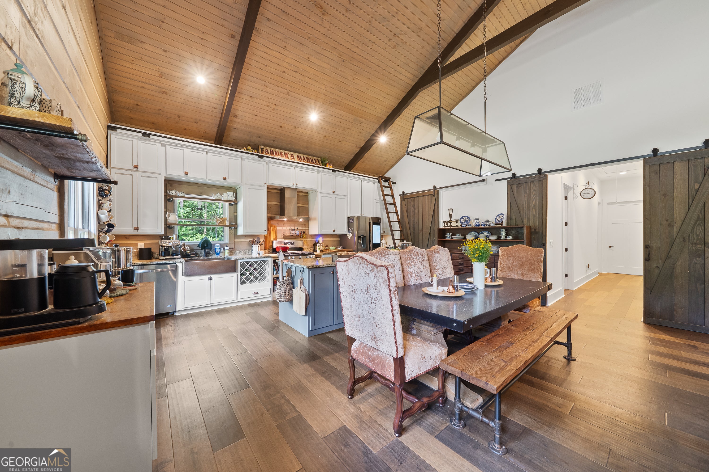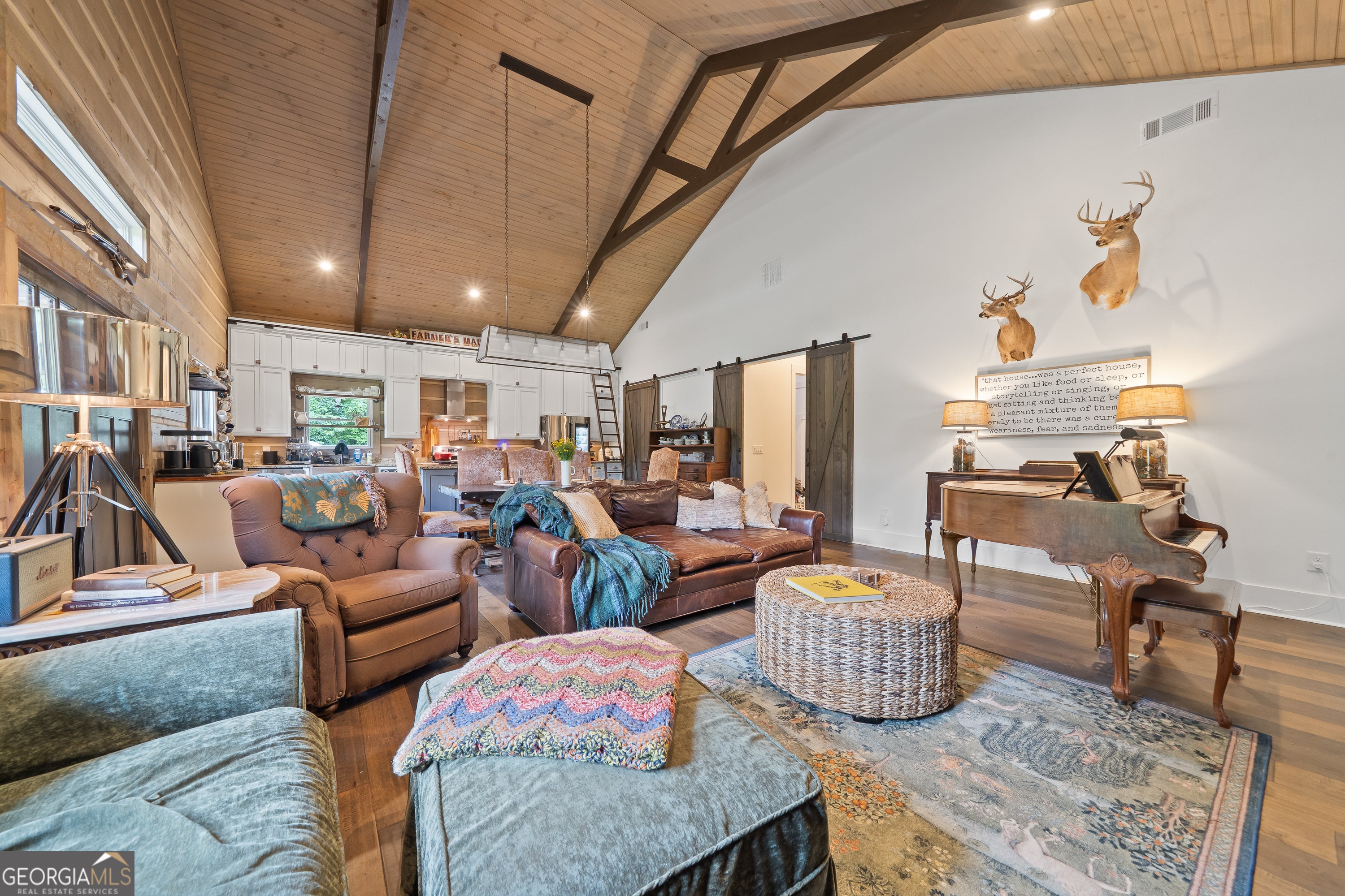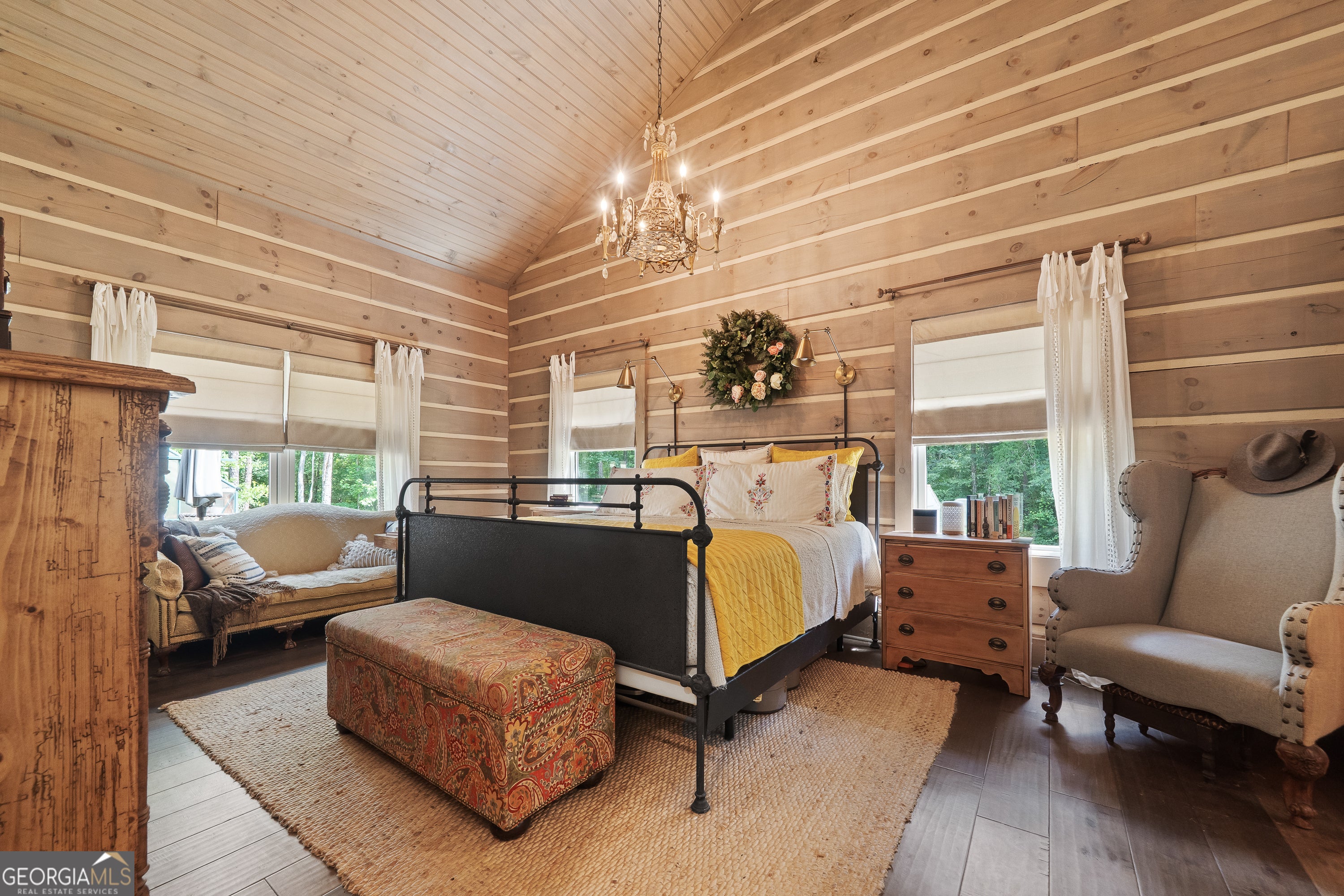 Escape to your dream countryside copper cabin in the woods! Do not miss out on this a meticulously maintained ranch-style log cabin home built in 2018, nestled on a serene 40-acre wooded estate in the upscale River Farm area of Morgan County. Experience country elegance with this beautifully designed 4-bedroom, 3-bath home, ideally set on 40 serene acres. This custom designed home offers over 2,800 square feet of refined comfort, open living, tons of natural light and peaceful outdoor enjoyment. Step inside to an open-concept layout featuring soaring vaulted ceilings, hardwood floors, and a large cozy stone fireplace. The gourmet kitchen is a chef's dream with a large island, granite countertops, stainless appliances, brand new gas stove, under cabinet lighting and generous cabinetry. The spacious primary suite includes vaulted ceilings, walk in closet with custom storage, a spa-like bath with dual vanities, a claw foot tub, and a walk-in shower. Two additional bedrooms offer spacious closets with container storage and plenty of natural light. The 4th bedroom could be a flex space with options for a bonus room, flexibility for guests, a home office, or recreation. This oversized room has endless possibilities! Outside, unwind on the covered patio overlooking your private wooded retreat-perfect for entertaining, relaxing, or watching Georgia sunsets. And lets not forget about the many fruit trees, trails for walking or riding, river fun and more! This home offers RV water and electric hook up, spray foam insulation 2 HVAC units, 8 foot solid doors throughout, wired for whole home generator, 16x40 barn/shop with electricity and stubbed for bath, wood shed and so much more! With mature hardwoods that have never been cruised, trails and over 800 ft of river frontage on the property, its every hunter's dream. Please see additional documents for a list of extras this home has to offer. Do not wait to come see! This is more than a home-it's a lifestyle. Schedule your private tour today and fall in love with the tranquility of Madison living. 1% rate reduction with preferred lender