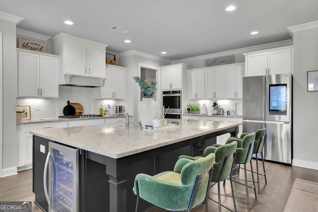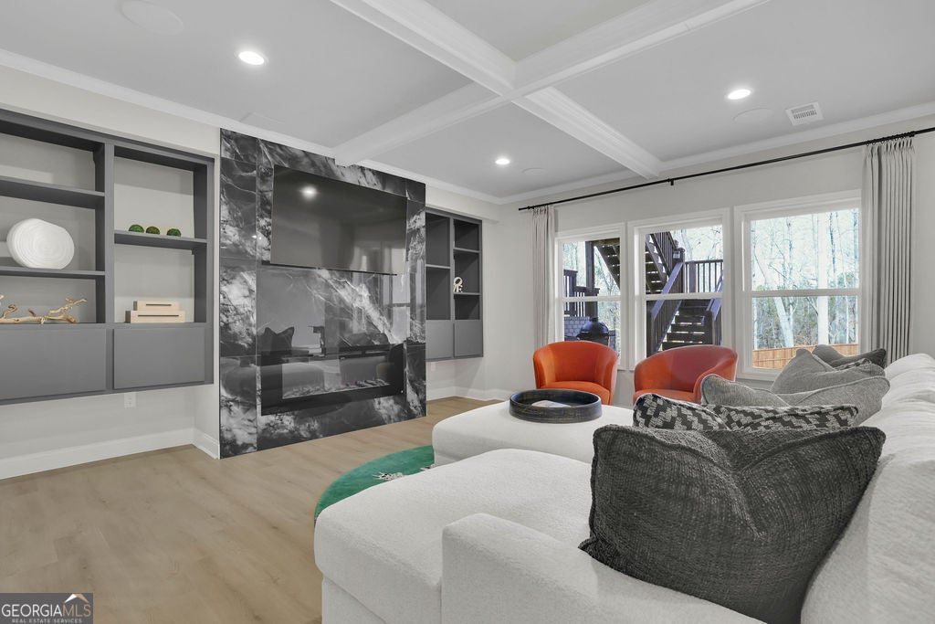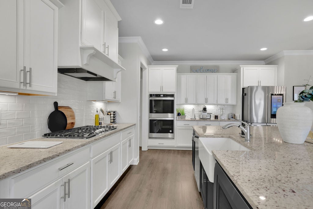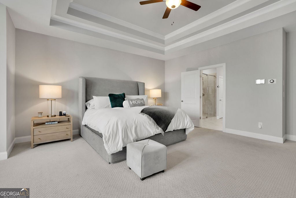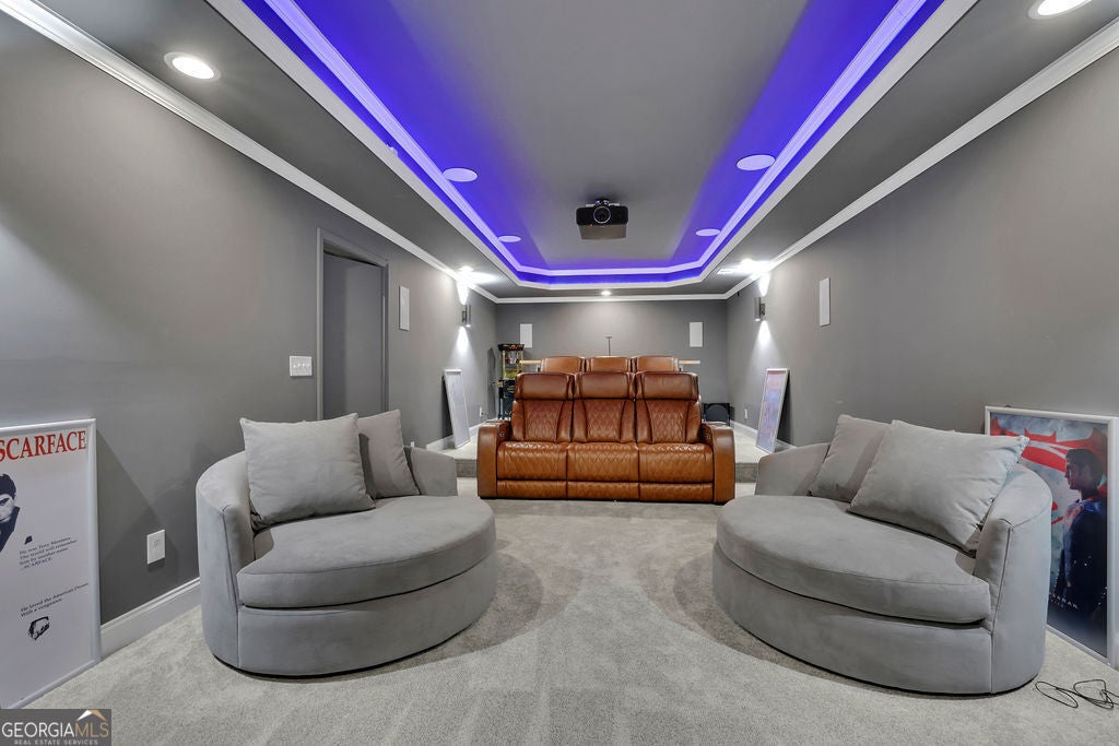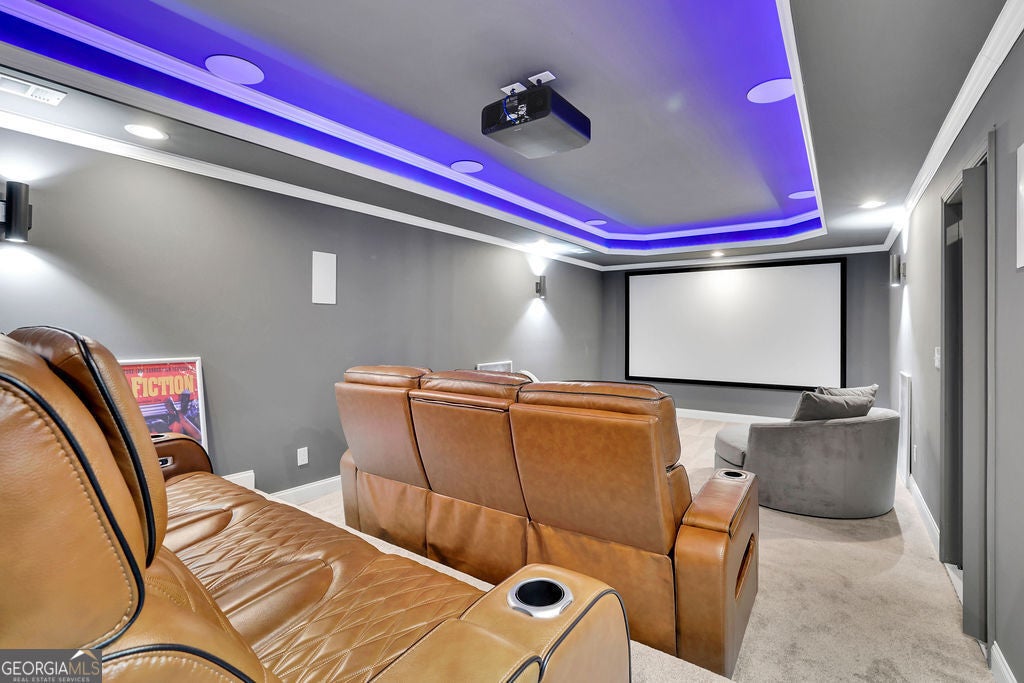 A price improvement and motivated sellers make this stunning custom-built Anderson Walker estate one of the best values in the prestigious Springs of Chateau community. Perfectly positioned on a private 0.68-acre cul-de-sac lot, this impeccably maintained 5-bedroom, 4.5-bath home with a 3-car garage offers an exceptional blend of craftsmanship, scale, and refined luxury, along with a fully finished basement completed in 2025-delivering a level of space and finish rarely found at this price point. A grand entry foyer is flanked by a formal dining room with butler's pantry and a private office or sitting room behind French doors. The main living area is designed for both everyday living and entertaining, featuring a spacious family room, chef's kitchen with oversized island and beverage chiller, and a keeping room highlighted by exposed wood beams. The layout flows seamlessly to a screened-in deck, creating ideal indoor-outdoor living. A main-level guest suite with full bath adds flexibility. Upstairs, the oversized primary suite offers a true retreat with a sitting area, spa-inspired bath with oversized double shower, and custom his-and-her closets. Three additional bedrooms and well-appointed baths complete the upper level. The terrace level rivals the main living space, featuring a full kitchen with island, expansive living area with fireplace, and exterior access. Additional highlights include a private home theater hidden behind a custom door, wine room, multiple flex spaces, and a full bath with high-end steam shower-ideal for entertaining, extended stays, or multigenerational living. Additional features include a fully fenced backyard and Tesla charging station. Conveniently located near schools, shopping, medical facilities, a sports park and with easy access to I-85. Exceptional opportunity to own a move-in ready custom home with extensive upgrades in a highly sought-after location.