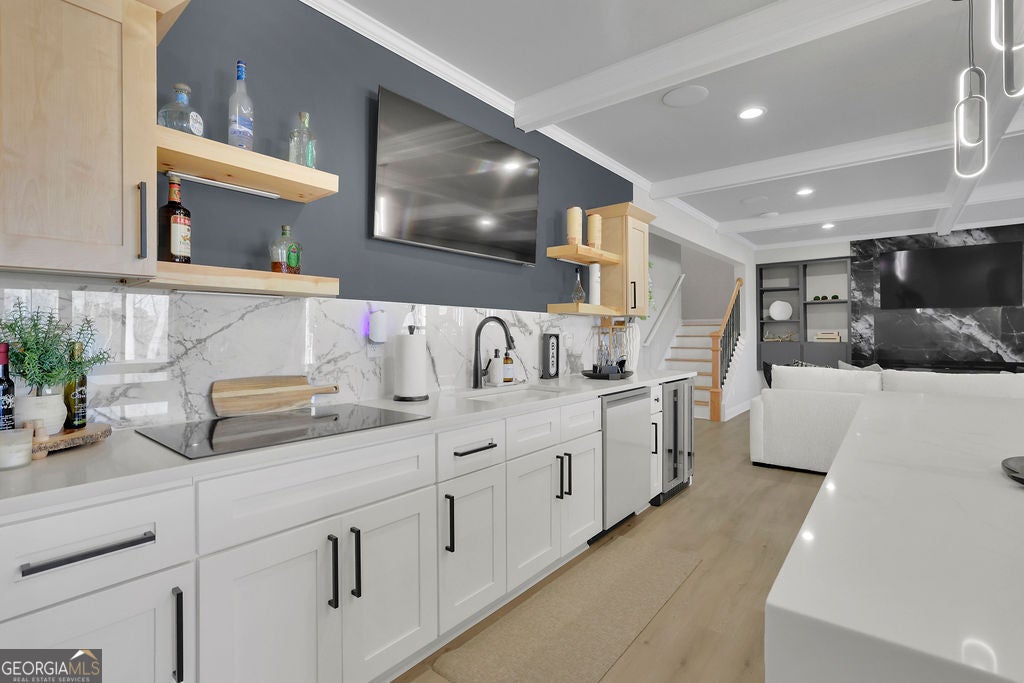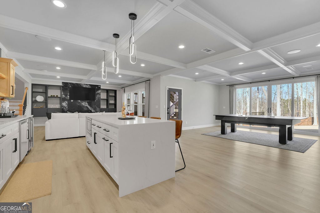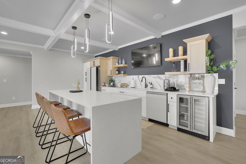 - Interior FeaturesBeamed Ceilings, In-Law Floorplan, Rear Stairs, Tray Ceiling(s), Vaulted Ceiling(s), Wet Bar