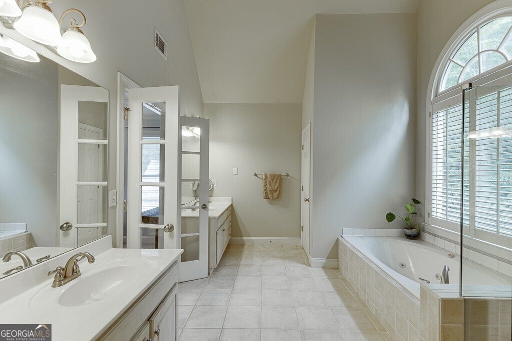 - Interior FeaturesDouble Vanity, High Ceilings, Pulldown Attic Stairs, Separate Shower, Tile Bath, Tray Ceiling(s), Two Story Foyer, Vaulted Ceiling(s), Walk-In Closet(s), Wet Bar, Whirlpool Bath, Beamed Ceilings, Rear Stairs