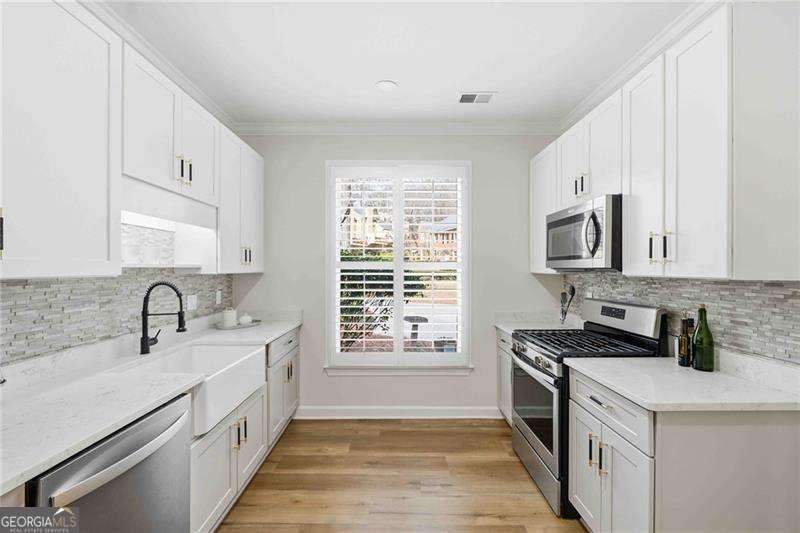 Ideally located in the heart of Roswell, this 2-bedroom, 2.5-bath brick townhome offers easy access to GA-400, local shops and restaurants, the Big Creek Greenway, and scenic trails along the Chattahoochee River. The main level features durable LVP flooring and neutral paint throughout. The updated kitchen with stainless steel appliances connects to a dedicated dining room, and the fireside living room opens to a private, fenced patio surrounded by mature trees. Upstairs, two spacious primary suites each include generous closets and private baths, including a main suite with vaulted ceiling, soaking tub, and separate shower. Located in a highly rated school district and designed for easy living, this home offers comfort, convenience, and a sought-after Roswell address.