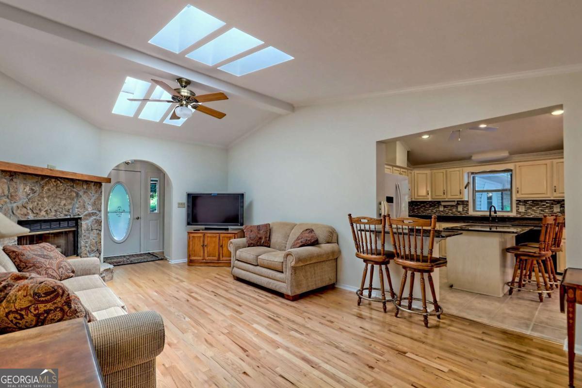 PRICED WAY BELOW RECENT APPRAISAL!! Rare Lakefront Opportunity in Lakeside Village - 55+ Community Discover the only lakefront home to come on the market in Lakeside Village in years! This inviting 3-bedroom, 2.5-bath residence offers a perfect blend of comfort, convenience, and serene waterfront living. Inside, you'll find a light-filled layout with skylights, a cozy den, and a welcoming family room with picture windows framing beautiful lake views. The eat-in kitchen is perfect for casual meals, while the formal spaces provide plenty of room for entertaining. Enjoy cool evenings by the fireplace or step out onto the back deck to take in the peaceful scenery. A private path from the backyard leads straight to the lake, offering easy access for fishing, kayaking, or simply enjoying the view. The community's marina, pavilion, and clubhouse are just a short walk or drive away, providing additional spaces for recreation and socializing. This home also features a 2-car garage, generous storage, and a prime spot in one of the area's most desirable active 55+ neighborhoods. Whether you're seeking a full-time residence or a low-maintenance lakefront retreat, this is a rare chance to own a piece of Lakeside Village's waterfront.