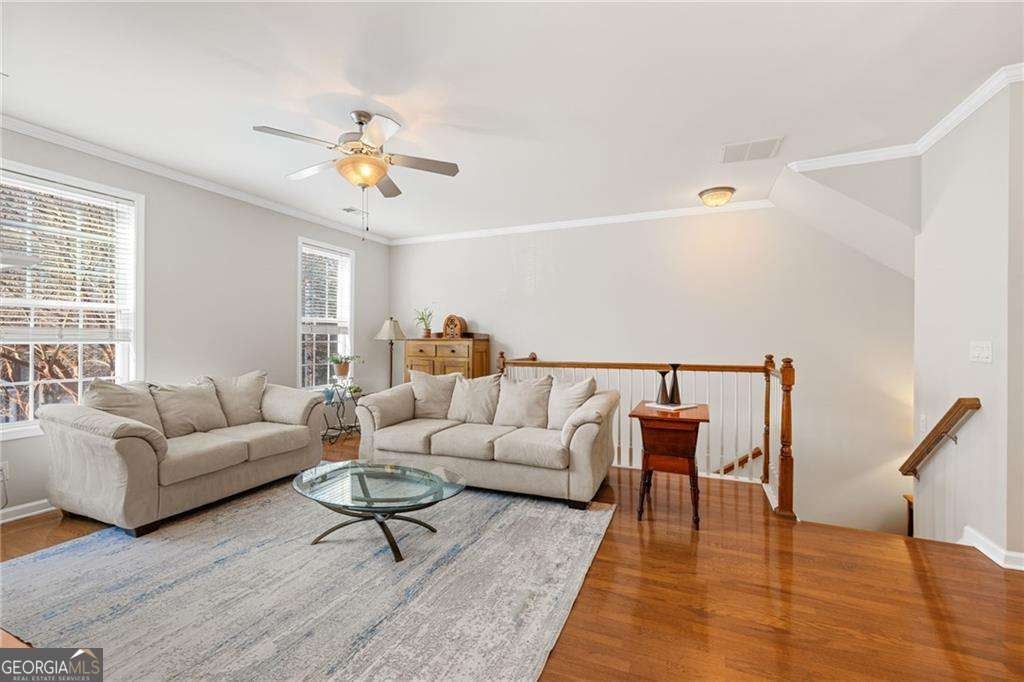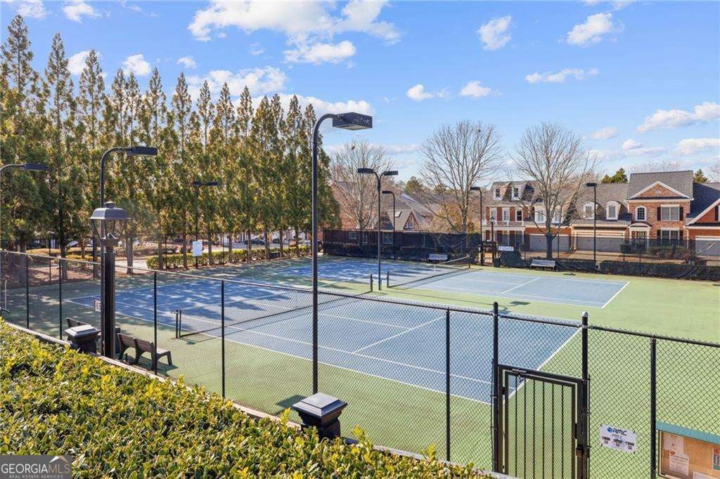 Welcome to The Heritage at Roswell, where comfort, convenience, and community come together in one of the area's most desirable neighborhoods. This move-in ready three-story townhome has been meticulously maintained, with no detail overlooked. Fresh interior paint, new stone counters, and an updated backsplash set the tone for a home that is polished and ready for its next chapter. Step inside from the charming front entry or directly from the garage into the spacious terrace level, featuring an oversized third bedroom suite. Whether you need guest space, a home office, man cave, teen retreat, or something uniquely yours, this level adapts to your lifestyle. The main level welcomes you with a warm and inviting family room, where a gas fireplace anchors the elegant great room. Custom built-ins provide the perfect place to showcase your treasures or keep everything neatly tucked away. A stylish powder room sits nearby and flows seamlessly into the dining area, creating a layout designed for everyday living and easy entertaining. At the heart of the home is the expansive kitchen, thoughtfully designed with espresso cabinetry, stone counters, and a sunny eat-in area. Just off the kitchen, enjoy morning coffee or evening unwinding on the private deck, ideal for relaxing or hosting friends. Upstairs, the upper level is your private retreat. The primary suite offers an oversized walk-in closet and a spa-inspired ensuite complete with double vanities, soaking tub, glass-enclosed shower, and private water closet. The secondary bedroom features its own ensuite and closet, ensuring comfort and privacy for everyone. The conveniently located laundry room completes the home's practical and functional layout. All of this is nestled within a beautifully maintained gated community in a coveted Roswell location offering exceptional amenities including a clubhouse, fitness center, swimming pool, lap pool, tennis courts, walking trails, and a serene pond. Ideally situated near downtown Roswell and the vibrant energy of Canton Street, you will enjoy easy access to parks, live music, shopping, and local favorites like Table & Main, 1920 Tavern, and Silla del Toro, just to name a few. You are also minutes from the Chattahoochee River National Recreation Area and only eight minutes from GA-400. This home truly delivers the lifestyle buyers are looking for. Do not miss your opportunity to experience the best of Roswell living.