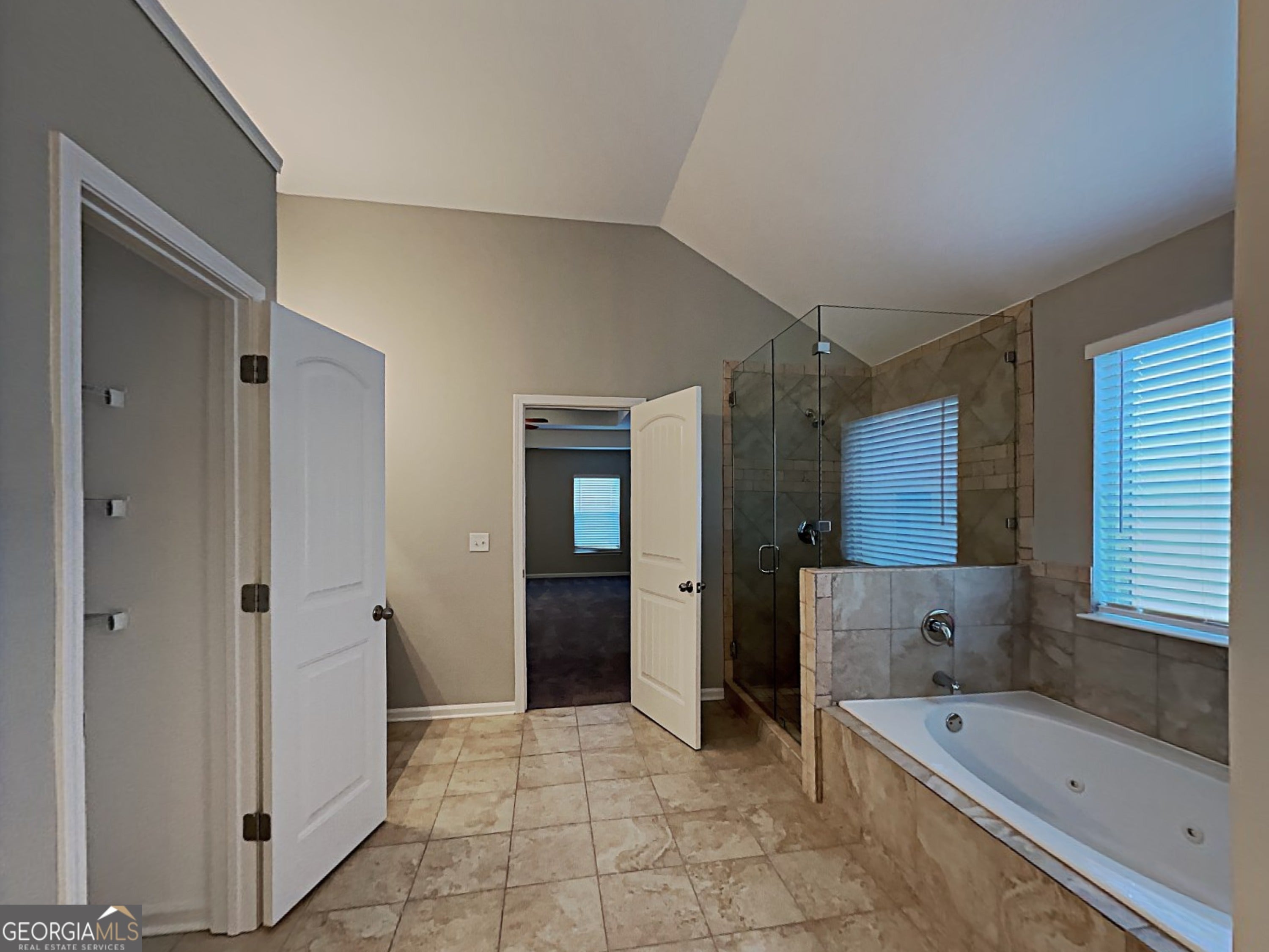 - Interior FeaturesTray Ceiling(s), Vaulted Ceiling(s), Double Vanity, Two Story Foyer, Soaking Tub, Separate Shower