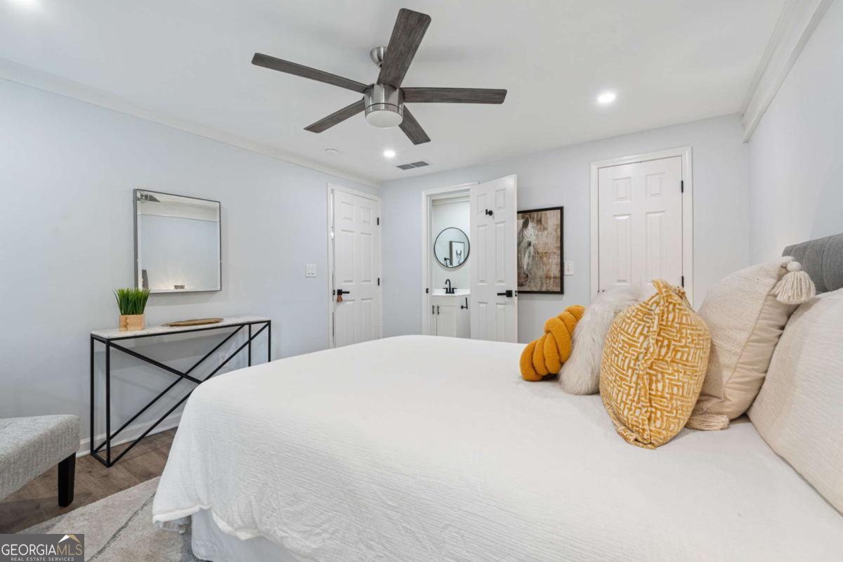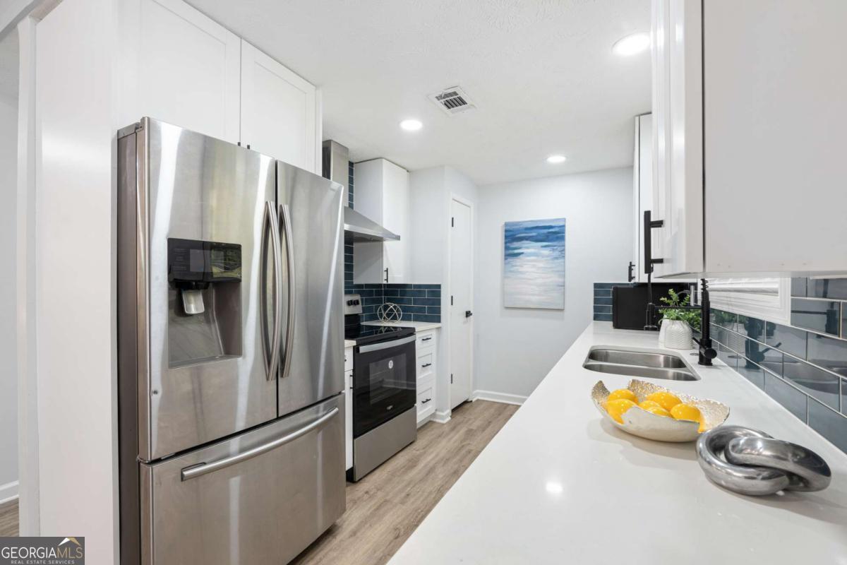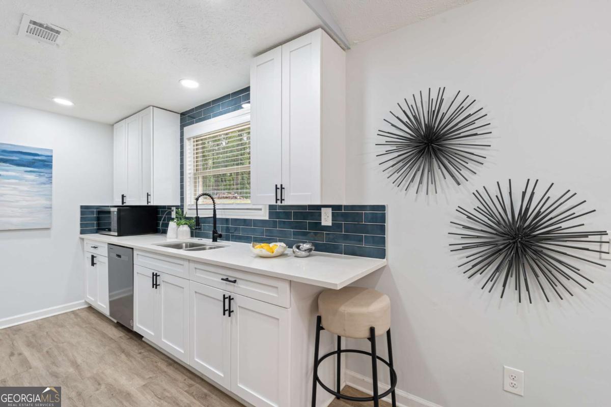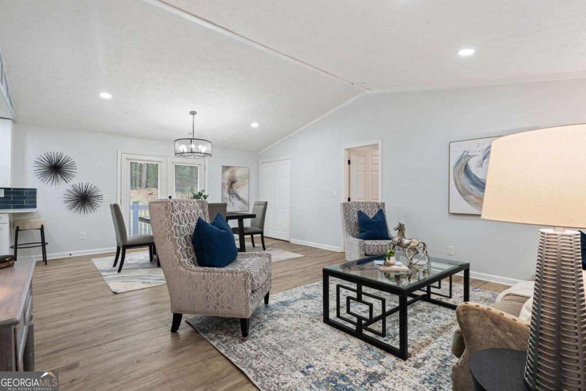 Feel right at home in this renovated modern ranch! This cozy move-in ready 4-bedroom, 2-bath home has been thoughtfully restored. You'll find luxury vinyl plank flooring throughout, fresh interior paint, and an open-concept family room with a stylish accent wall and adjoining dining area-designed perfectly for both family time and relaxing. The new kitchen features stainless steel appliances, quartz countertops, white cabinetry, and a large pantry. Retreat to the primary suite with its beautifully renovated en-suite bath, while the additional bathroom shines with modern tile finishes. Additional notable upgrades are a brand-new water heater, newer roof and AC unit, updated plumbing, HardiePlank siding, new windows, exterior paint and upgraded electrical panels, all within a home that has been lovingly maintained. A separate laundry room adds practicality. Tucked away at the end of a quiet street, this home offers privacy. Set on nearly half an acre, you'll enjoy the spacious front and backyard, a newly renovated deck, and a covered front porch. No HOA. Prime location and only a few miles to historic downtown Douglasville's Main Street with restaurants and shopping, Sweetwater Creek State Park, GreyStone Amphitheater and Douglasville Town Green.