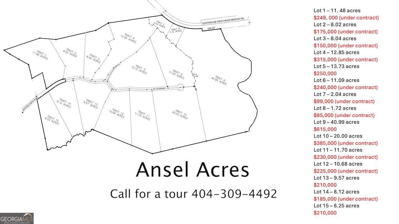 Introducing Lot 14 of Ansel Acres, an 8.12-acre tract set in the peaceful countryside of Jackson County offering a beautiful mix of open land and natural wooded surroundings. The property features a combination of pasture and mature hardwoods, providing both usable homesite space and a scenic, private backdrop. Toward the rear of the tract, the land transitions into hardwoods that border a picturesque creek bed - adding character, wildlife appeal, and a tranquil setting for your future build. This homesite offers the perfect balance of rural seclusion and everyday convenience. Located just a short drive from the University of Georgia and Downtown Athens, the property also provides quick access to Highways 129 and 441 and is less than 20 minutes from Interstate 85, making commuting and travel easy. A newly recorded survey is in place with clearly marked property lines and corners, and the tract has completed perc testing suitable for a conventional septic system - giving buyers confidence and readiness to build. As part of the newly released Ansel Acres development, Lot 14 is one of 15 available parcels, with adjoining acreage available for those seeking additional space, expanded privacy, or the opportunity to establish a family compound. Future growth in the area adds further appeal, with a new county park planned just minutes away at the corner of Highway 129 and New Kings Bridge Road, set to feature walking trails, a splash pad, soccer fields, pickleball courts, and other recreational amenities. Come experience the setting and potential of Lot 14 at Ansel Acres - schedule your tour today!