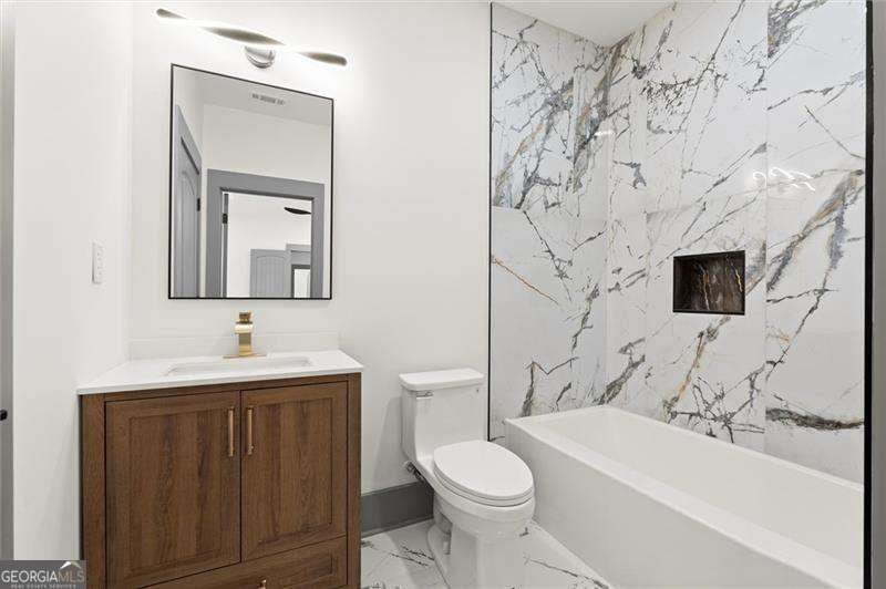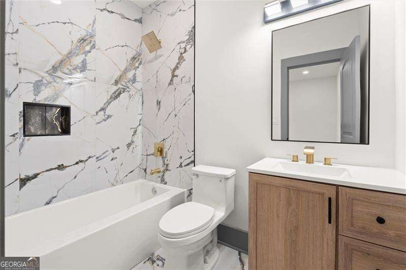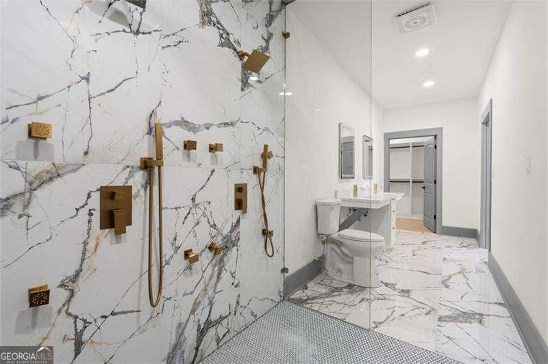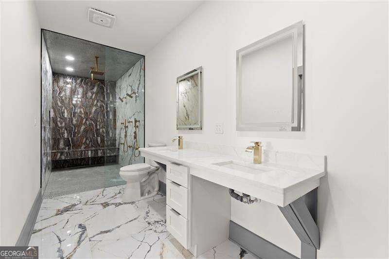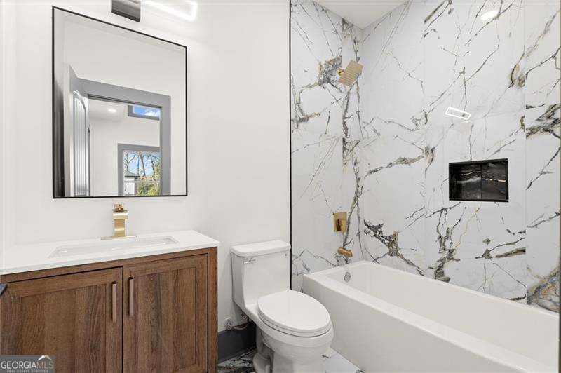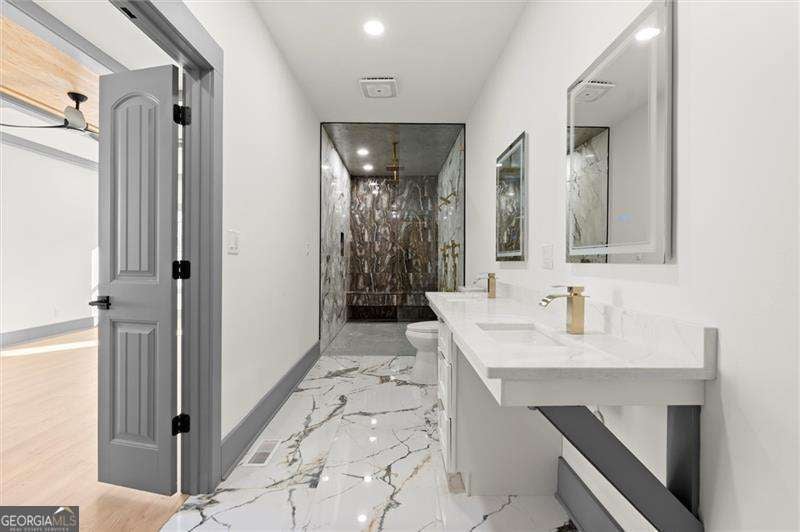 Introducing a remarkable modern farmhouse estate where timeless architecture meets elevated contemporary design in the heart of East Lake Terrace. Privately set on over an acre within one of East Lake's most established and sought-after neighborhoods, this newly constructed residence offers an exceptional blend of refined craftsmanship, intentional design, and effortless luxury living. Spanning more than 4,000 square feet, this five-bedroom, five-and-a-half-bath home was thoughtfully created for both grand entertaining and intimate everyday living. A dramatic entry welcomes you with soaring ceilings, expansive sightlines, and walls of natural light that define the home's sophisticated yet inviting atmosphere. The open-concept main living area flows seamlessly from an elegant fireside living room into a sunlit dining space and onto a beautifully designed outdoor deck - creating a true indoor-outdoor lifestyle experience. Just beyond, a private outdoor fireplace establishes a serene retreat ideal for year-round gatherings. At the heart of the home, the chef-inspired kitchen is both functional and visually striking, featuring custom shaker cabinetry, sleek quartz surfaces, premium stainless steel appliances, and a spacious walk-in pantry enhanced by a custom wine bar - perfectly suited for curated entertaining or elevated daily living. A versatile main-level suite offers exceptional flexibility, ideal for multi-generational living, visiting guests, or a private executive office. Upstairs, the primary owner's retreat serves as a luxurious sanctuary, showcasing tray ceilings, a statement fireplace, and a spa-caliber bath complete with soaking tub, oversized walk-in shower, dual vanities, and bespoke closet organization. An additional private suite provides enhanced privacy and adaptability, while three additional bedrooms with en-suite baths ensure comfort and space for family and guests alike.The expansive grounds present a rare opportunity to customize your outdoor lifestyle - envision a resort-style pool, pickleball or sport court, or a private garden oasis. A spacious three-car garage includes EV charging readiness, blending modern convenience with forward-thinking design.Ideally positioned minutes from the renowned East Lake Golf Club, Barker Bryant Memorial Park, Oakhurst Village, and the cultural energy of downtown Atlanta, this residence offers both privacy and connectivity in one of the city's most desirable locations. A rare offering where architectural elegance, modern luxury, and lifestyle-driven design converge.