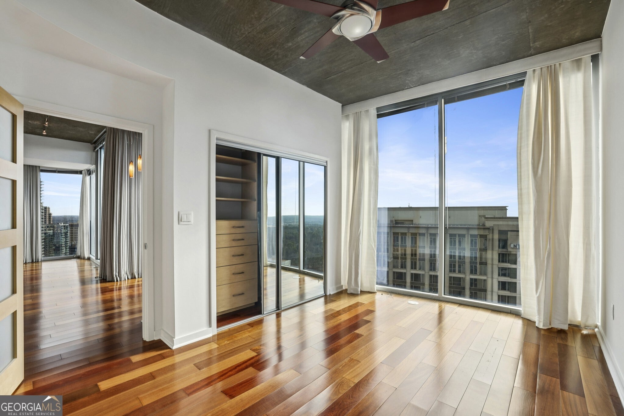 Perched on the 23rd floor, Unit #2301 is a highly desirable CORNER UNIT showcasing unobstructed, south-facing views and sun-filled interiors that set this home apart from the moment you arrive. Elevated Living in the HEART of Buckhead! Ideally situated in one of Atlanta's most vibrant neighborhoods, this beautiful condo offers unbeatable convenience paired with sweeping skyline views that instantly impress. From the moment you enter, expansive Floor-to-Ceiling Windows draw your eye outward, filling the home with natural light and setting the tone for the open, contemporary layout. The spacious Living and Dining Areas flow seamlessly together, creating a versatile space perfect for entertaining or relaxing at home while enjoying the incredible city backdrop. The Kitchen is both stylish and functional, featuring Stainless Steel Appliances, Granite Countertops, and a Breakfast Bar that makes casual dining and hosting effortless. Both Bedrooms enjoy impressive views, creating peaceful retreats above the city, each paired with access to a Full Bathroom for maximum comfort and flexibility. The Primary Suite stands out with an Oversized Closet, providing exceptional storage rarely found in condo living. Step onto the Private Balcony to take in the energy of Buckhead from above the perfect setting for morning coffee or unwinding after a long day while watching the skyline glow at sunset. Residents of Realm enjoy an outstanding collection of Resort-Style Amenities, including 24-Hour Concierge Service, a Saltwater Pool, Rooftop Lounge Spaces, Outdoor Grilling Areas, Two-Story Fitness Center, Firepit Gathering Area, Dog Run, Conference Room, Indoor Lounge & Bar, and generous Guest Parking. The home also includes Two Assigned Parking Spaces. HOA dues also include High-Speed Internet, and community events throughout the year make it easy to connect with neighbors. With Two Marta Stations nearby and Lenox Mall, Phipps Plaza, Trader Joe's, and Buckhead's top dining and nightlife just outside your door, this home delivers the ultimate blend of convenience and lifestyle. Experience city living at its finest in one of Buckhead's premier high-rise communities.