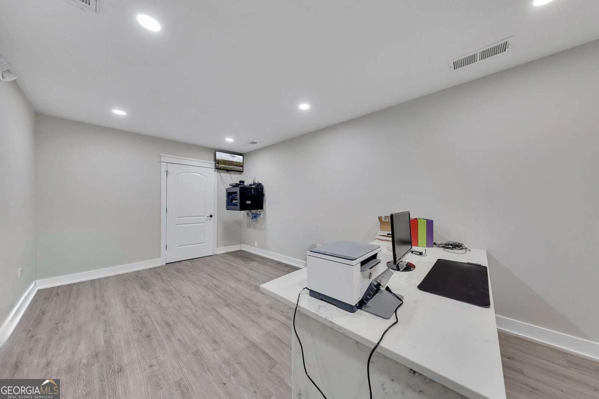Ample space and a superb location! This is an exclusive opportunity to lease a high-end, second-floor office suite only (warehouse space is not included in the rental; the structure provides access only). The suite is designed to be warm and inviting, with sophisticated upgrades perfect for entertaining clients, including built-in granite desks in the offices. Located immediately off the Highway 515, the property offers excellent visibility and easy access, just miles from Canton and Jasper. This move-in-ready unit features five spacious private offices, two modern, upgraded bathrooms, and a large lobby/gathering room complete with a convenient wet bar. Tenants also benefit from access to a shared conference room for meetings and presentations. This fully finished unit offers a range of ideas to fit your business in a premium, professional environment.