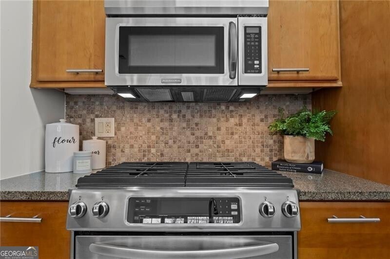 Welcome home to an elevated, turnkey condo experience in the heart of Brookhaven, where style, comfort, and convenience come together effortlessly. Located within Village Place Brookhaven, this second-floor residence offers privacy, natural light, and a true lock-and-leave lifestyle above a vibrant mix of shops, dining, fitness studios, and everyday essentials. Inside, soaring 10-foot ceilings, expansive windows, and updated lighting create a bright, airy atmosphere throughout the open-concept living space. Freshly painted walls, ceilings, and trim provide a clean, modern backdrop, while hardwood floors extend through the main living areas and secondary bedroom, offering both warmth and durability. The layout is ideal for everyday living and entertaining, with seamless flow from the kitchen to the living and dining areas. The kitchen is thoughtfully designed with KitchenAid stainless steel appliances, including a gas range, refrigerator, microwave, and dishwasher, complemented by granite countertops, a mosaic backsplash, and an undermount stainless steel sink. A spacious coat closet has been converted into a pantry, delivering exceptional storage rarely found in condo living. Washer and dryer remain, adding to the home's move-in-ready appeal. Both bedrooms are well-appointed with casement windows and a custom Elfa closet system in the primary bedroom, providing smart, organized storage. The primary suite features a spa-inspired bath with an oversized frameless glass shower, double vanity, and a private toilet room, while the secondary bathroom offers a soaking tub and shower combination-ideal for guests or everyday use. Step outside to the private balcony, a perfect spot to unwind with morning coffee or evening wine while overlooking the energy of Brookhaven below. Additional highlights include secure building access, elevator access, two covered parking spaces, ample guest parking, and a new HVAC system installed in September 2025 with a 10-year parts and labor warranty and a 5-year performance guarantee. The true luxury of this home is the lifestyle it offers. From curated dining and boutique shopping to fitness studios, green spaces, and everyday conveniences, Brookhaven Village surrounds you with it all. Access to MARTA, Towne Brookhaven, Lenox Square, Phipps Plaza, Buckhead, Midtown, and major highways makes getting anywhere in Atlanta seamless. Park your car at the end of the day-or week-and enjoy the ease of having everything you need right outside your door. If you're looking for a refined condo that delivers comfort, thoughtful updates, and one of Brookhaven's most connected lifestyles, this is it.