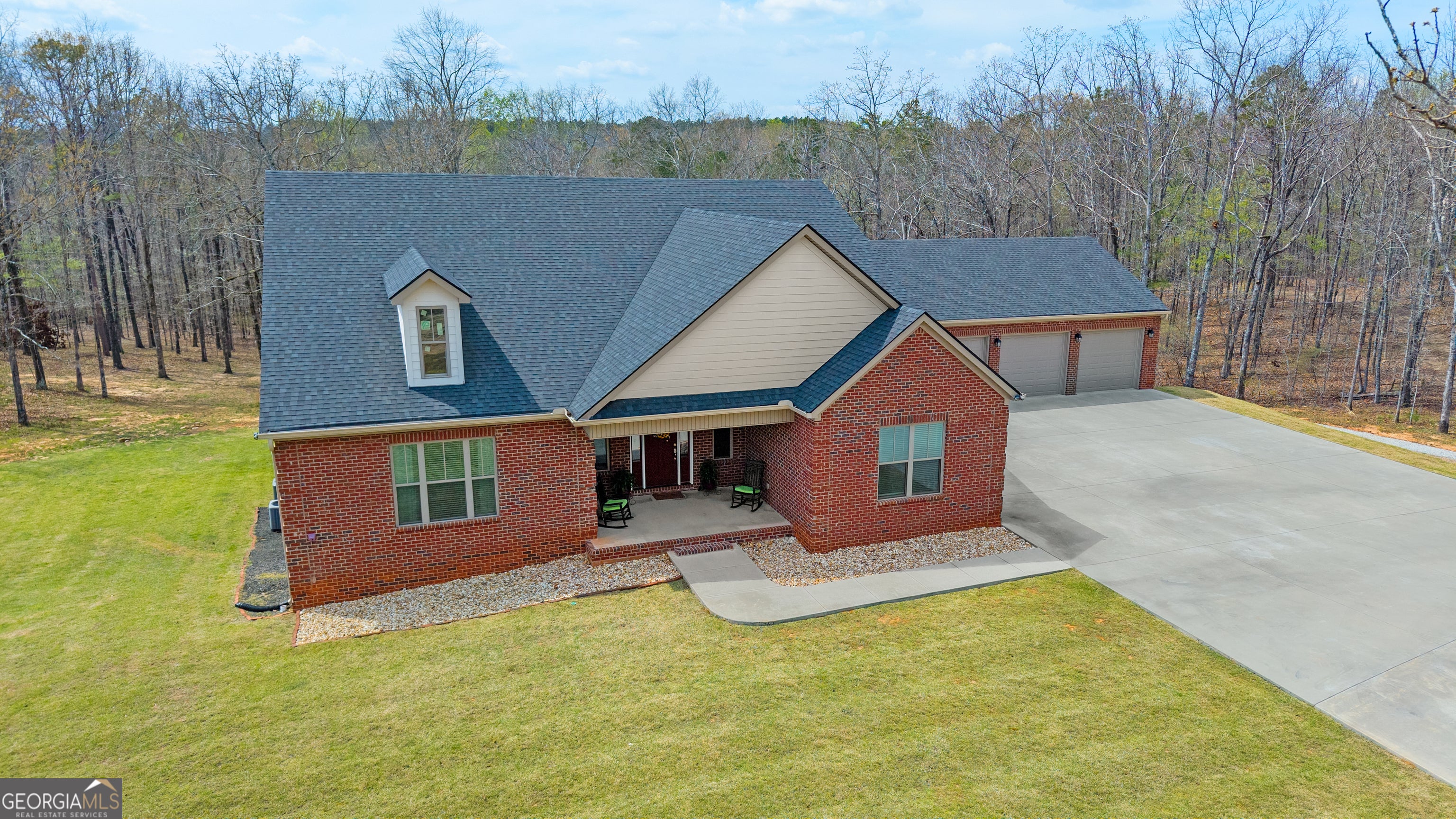 Enjoy tranquility and peace in this all brick custom built home on 12 private acres located in Heard County. The thoughtfully designed floor plan includes six bedrooms and five bathrooms including three ensuites. Each finished level has a full kitchen, living room, dining, and laundry room. This home is a great fit for families searching for a multi generational home privately located in the country with room to explore outdoors. The expansive back porch overlooks a wooded setting and is perfect for quiet mornings and restful evenings. Parking and storage are ample in a 4 car attached garage.