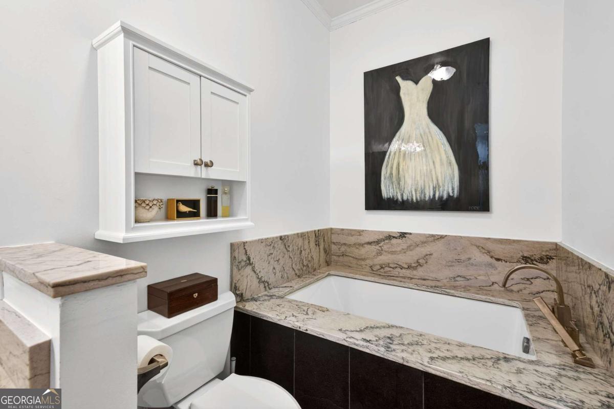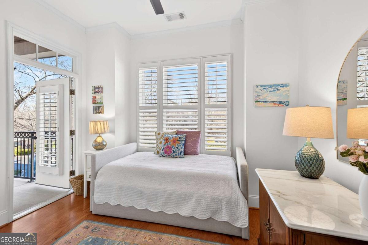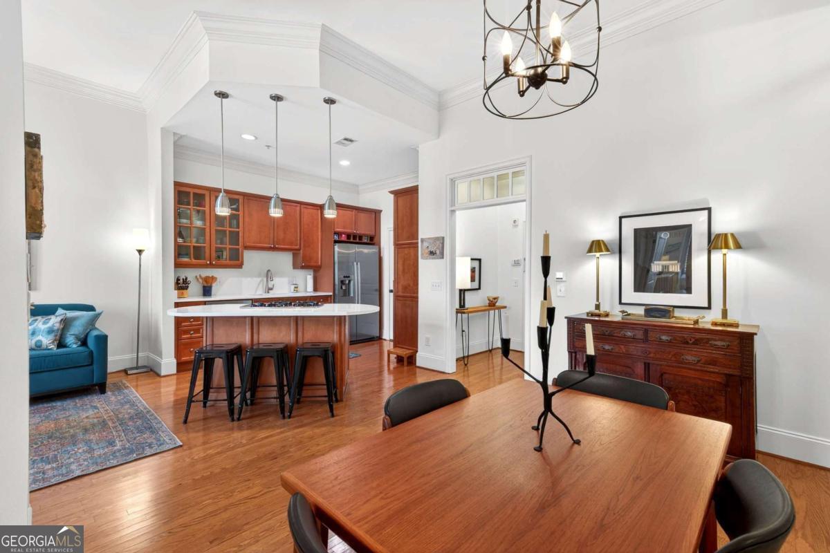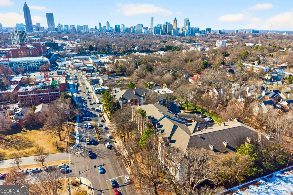 Claim your place at The Carlton and live at the heart of Intown Atlanta. Here, the BeltLine, Ponce City Market, parks, indie retailers, boutiques, and nightlife intersect-becoming effortless extensions of your living room. Just steps from the vibrant, tree-lined streets of Virginia-Highland, with Historic Inman Park and Poncey-Highland around the corner, your days unfold with true walkability-morning bakery runs, chef-driven restaurants, live theater and music, and iconic destinations like the Plaza Theatre moments away. Come home to an immaculate, move-in ready 2BR/1BA flat. A spacious, quiet rear-facing, top-floor residence offers rare privacy and soaring 10-foot ceilings & oversized transom windows that expand the light throughout the open floorplan. Fireside living and dining areas flow seamlessly into a generous gathering kitchen featuring a center island, richly stained wood cabinetry, abundant storage, and a walk-in pantry/laundry room.The renovated spa-inspired bath with limestone finishes includes double vanity, soaking tub, & separate frameless shower. A covered balcony-accessible from both the primary and secondary bedrooms-overlooks the manicured rear gardens and pool, creating a serene backdrop for morning coffee or evening unwinding. Residents enjoy secured building access, gated owner garage parking, a storage unit, electric vehicle charging station, two enclosed community dog parks, a pool, and ample guest parking-all within a well-appointed community in the heart of the BeltLine corridor. Easy access to I-85 and Midtown. Intown energy. Exceptional value. Finally, both in one address!