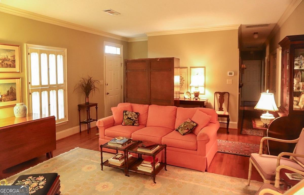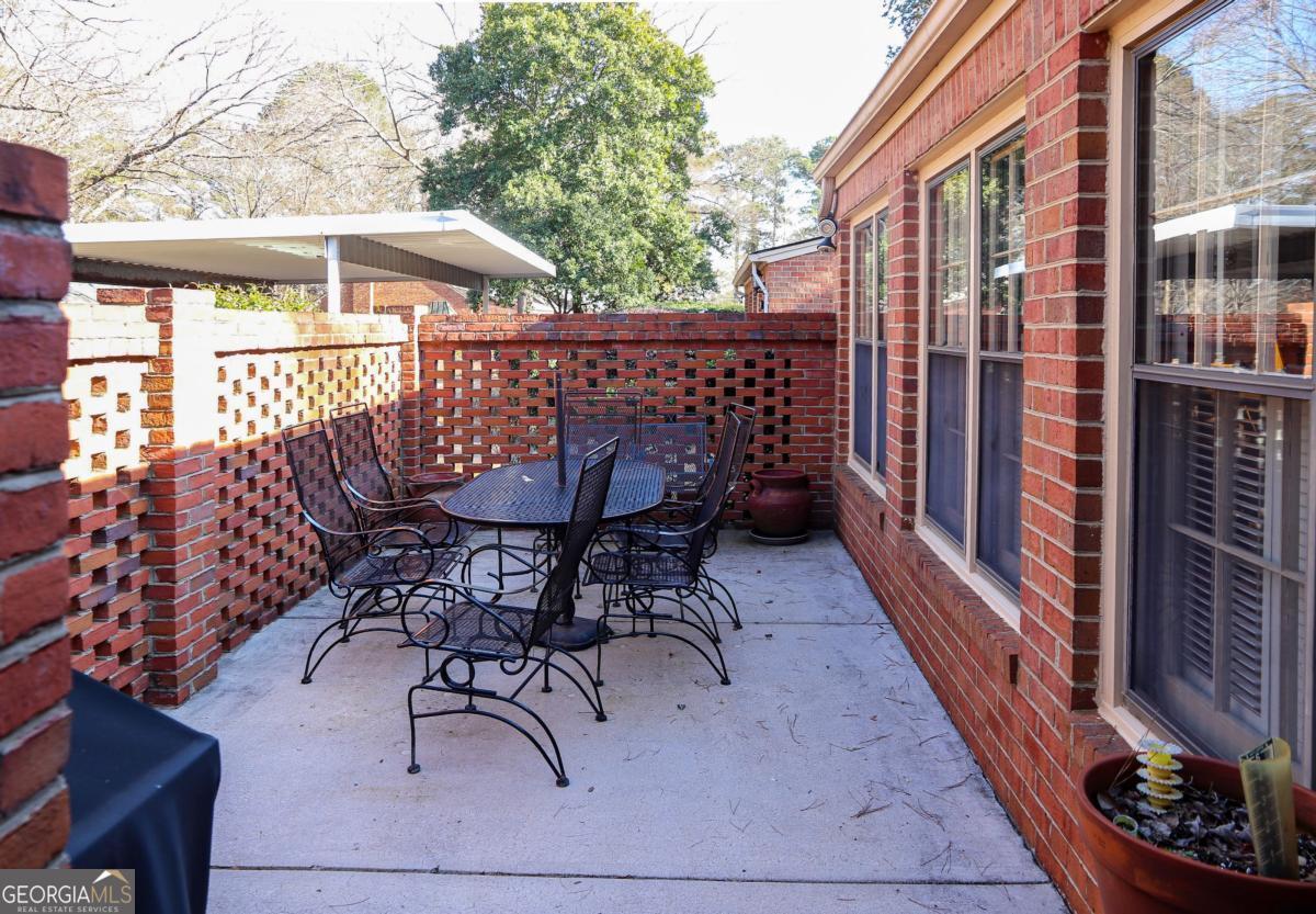 Tucked within Athens' highly desirable, all-owner-occupied Drayton Square community, this rare single-level patio condo offers a blend of space, quality, and timeless design that's increasingly hard to find. Larger than most of its floor plan counterparts, the home features quality craftsmanship, hardwood floors throughout-a true rarity-and a flowing layout ideal for both everyday living and entertaining. A formal foyer opens to the spacious living room, where a gas-log fireplace creates a warm focal point flanked by built-ins and allows flexibility for multiple furniture arrangements. The adjoining dining room comfortably seats six or more and opens to the expansive sunroom that spans the rear of the home, flooding the space with natural light and offering the perfect retreat for relaxing or casual dining. The centrally located kitchen is notably spacious and well-equipped with floor-to-ceiling custom cabinets, generous pantry storage, and easy access to both the dining room and sunroom for seamless hosting. Three nicely sized bedrooms are privately grouped down the hall, including an oversized owner's suite with multiple closets and a private full bath. Thoughtful upgrades such as a tankless water heater and a floored attic storage with new metal stairs add modern efficiency, while the private brick-enclosed courtyard and covered carport add to its desirability. With neighborhood amenities including a swimming pool, tennis court, onsite trash, and tree-lined streets, all just minutes from UGA and East Athens conveniences, this Drayton Square home delivers comfort, functionality, and lasting appeal.