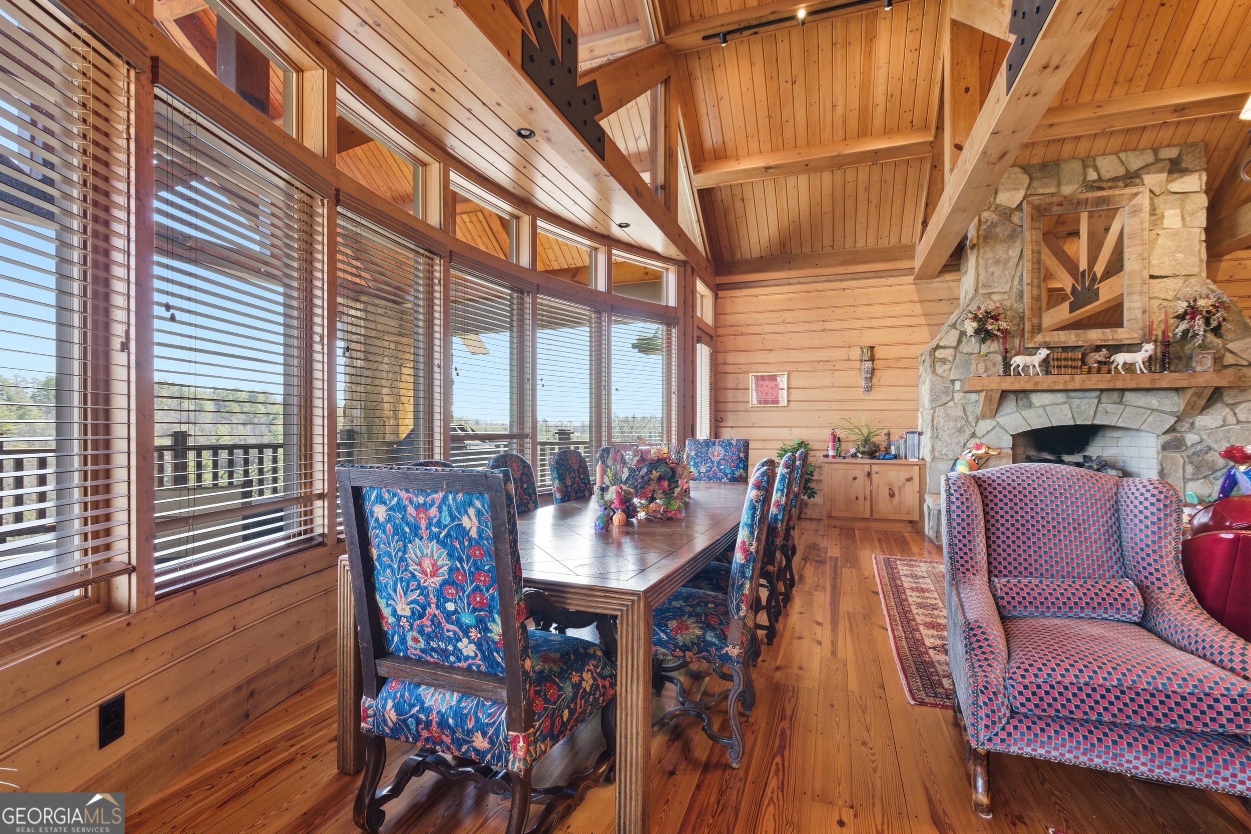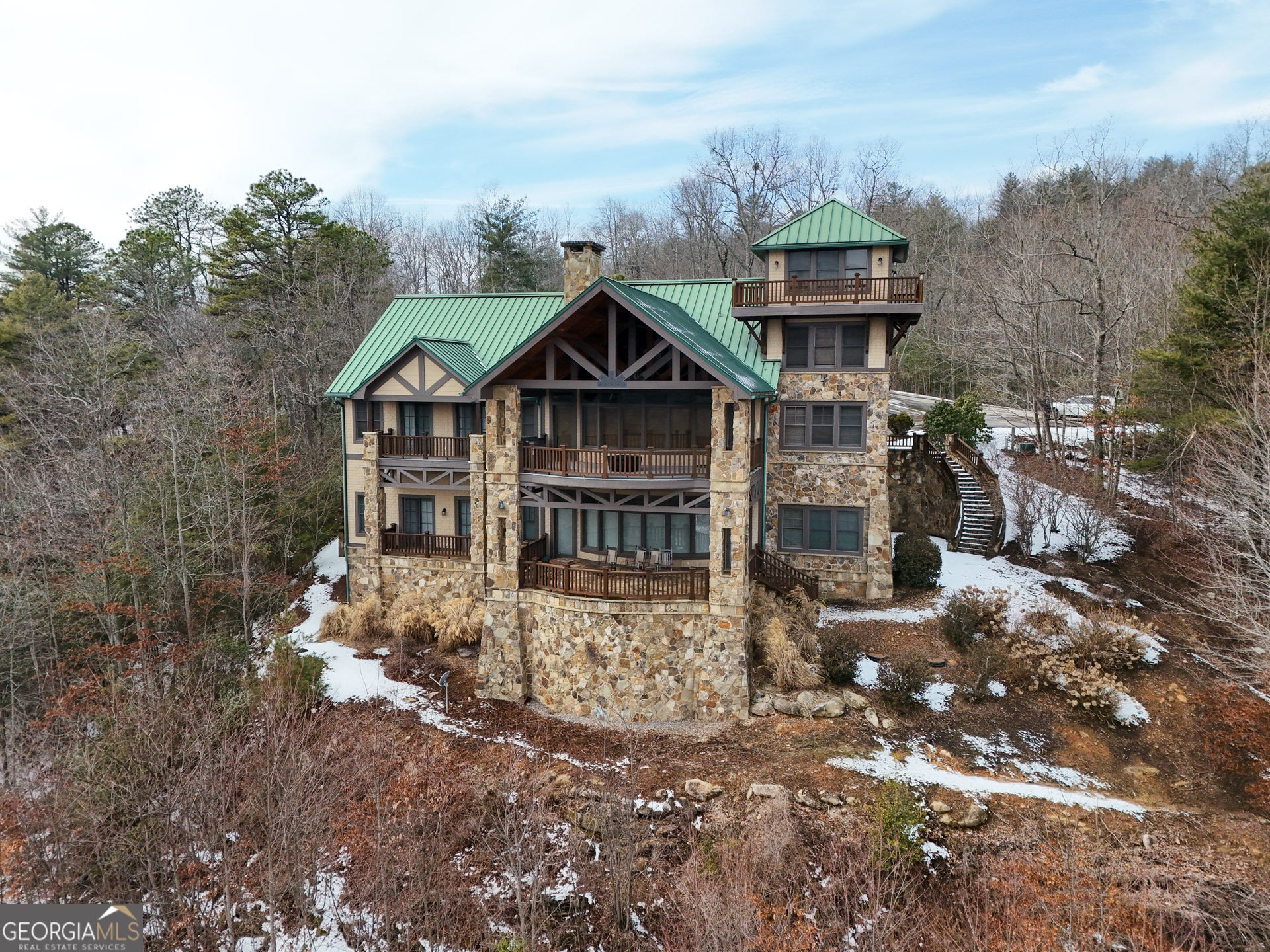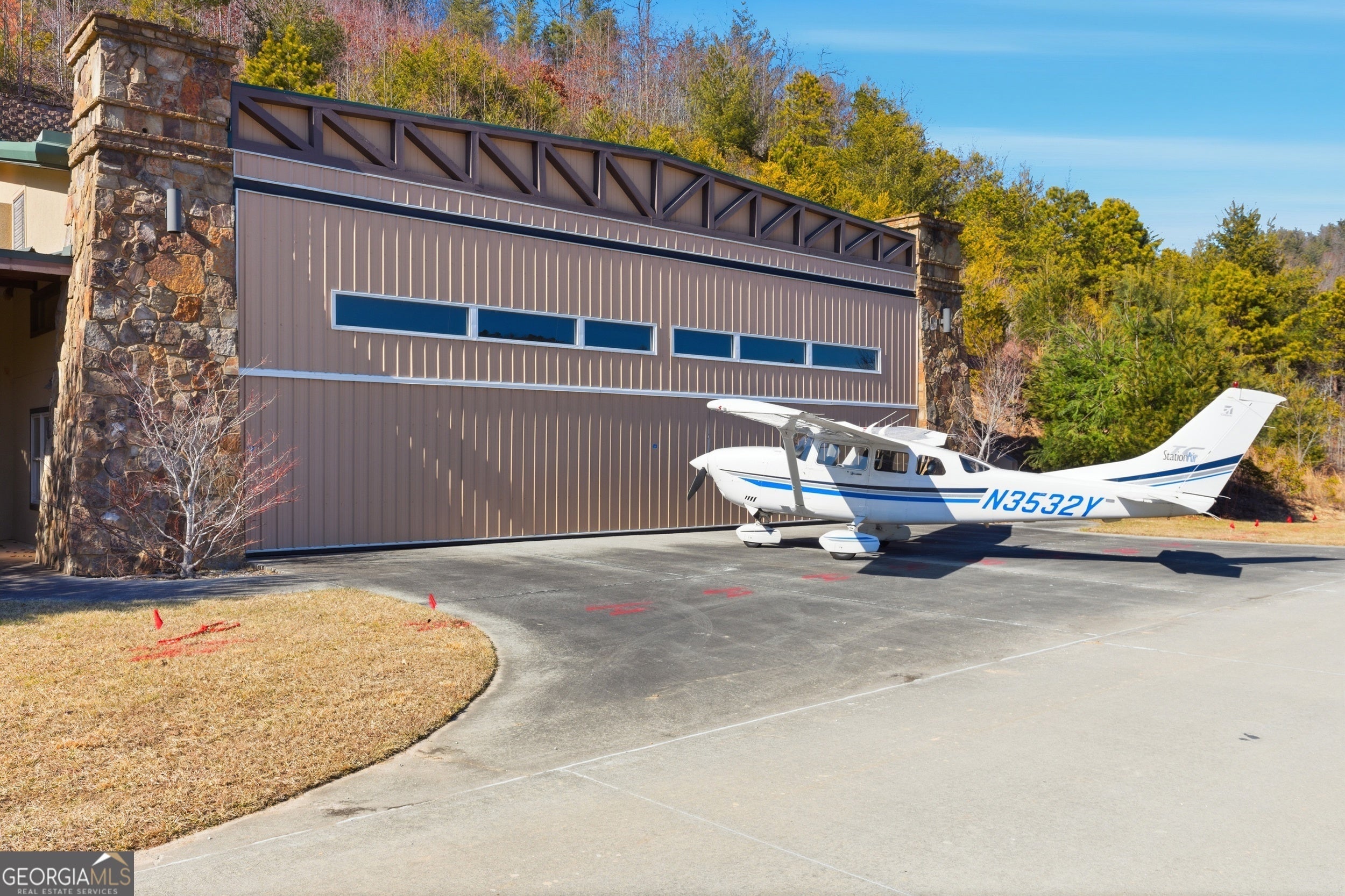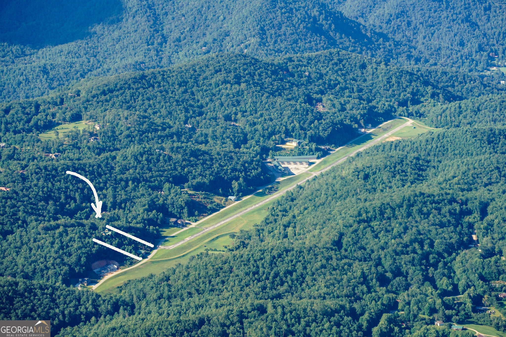 Sky-High Luxury at Heaven's Landing | Premier Fly-In Estate Experience the pinnacle of aviation living in the North Georgia Mountains. Situated in the prestigious Heaven's Landing community, this estate offers a rare combination of direct taxiway access and breathtaking panoramic mountain views. The Ultimate Pilot's Setup - For the aviation enthusiast, the property features a separate 50x60 custom hangar fronting the taxiway. More than just storage, it includes a dedicated pilot's retreat complete with a kitchen and bath-perfect for post-flight relaxation or hosting fellow aviators. Architectural Masterpiece -Accessed via a private cul-de-sac, this 5,700 sq. ft. residence is a study in rustic elegance. The interior is defined by massive beams and exquisite heart pine finishes. A three-stop elevator ensures effortless access across all levels. - Main Level: A soaring vaulted great room anchored by a massive stone fireplace and a rounded window bay. The chef's kitchen with a center island flows into a formal dining room and a dedicated office/flex space. The primary suite features a private balcony and a spa-like bath. - Terrace Level: Designed for entertaining, this floor boasts a large family room with its own fireplace and wet bar, opening to a stone-floored porch. Includes three bedrooms, 2.5 baths, and a second laundry facility. - The Upper Tiers: The third level offers a versatile bedroom with a half bath, while the crowning jewel is the enclosed "crow's nest" with a three-sided deck, offering unrivaled views of the runway and the Blue Ridge Mountains. Property Highlights - Exterior: Standing seam metal roof and expansive covered porches. - Upgrades: New HVAC systems have been ordered for the home. - Outdoor Living: Large elevated porches designed to capture the mountain breeze and runway activity. Location & Lifestyle Located in Rabun County, you are surrounded by over 60% National Forest land, four pristine lakes, and the Wild and Scenic Chattooga River. Enjoy the peace of the mountains with the convenience of Clayton just 4 miles away, famous for its award-winning dining and boutique shopping. The concrete airstrip is 5068 feet long. FAA Identifier is GE99.