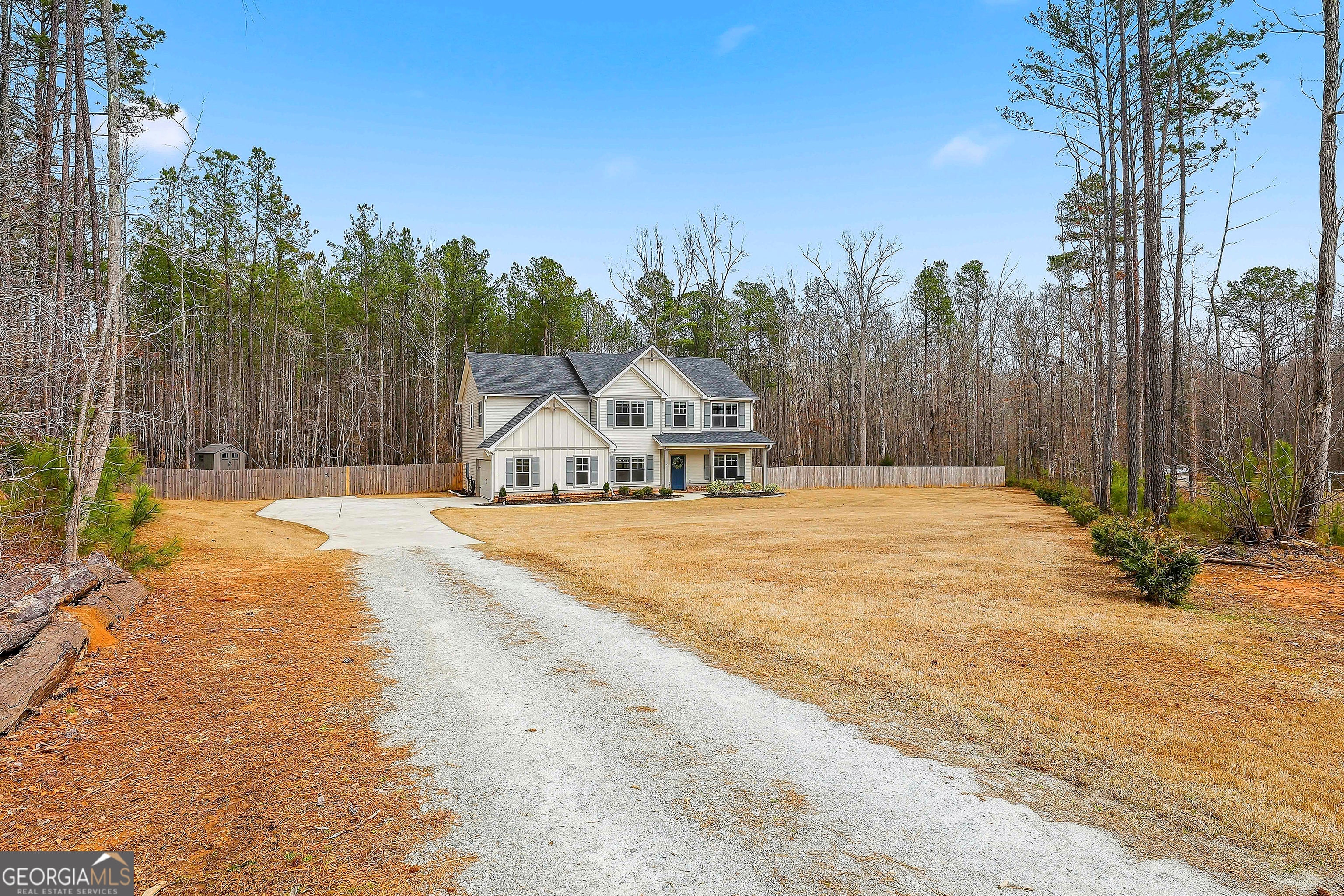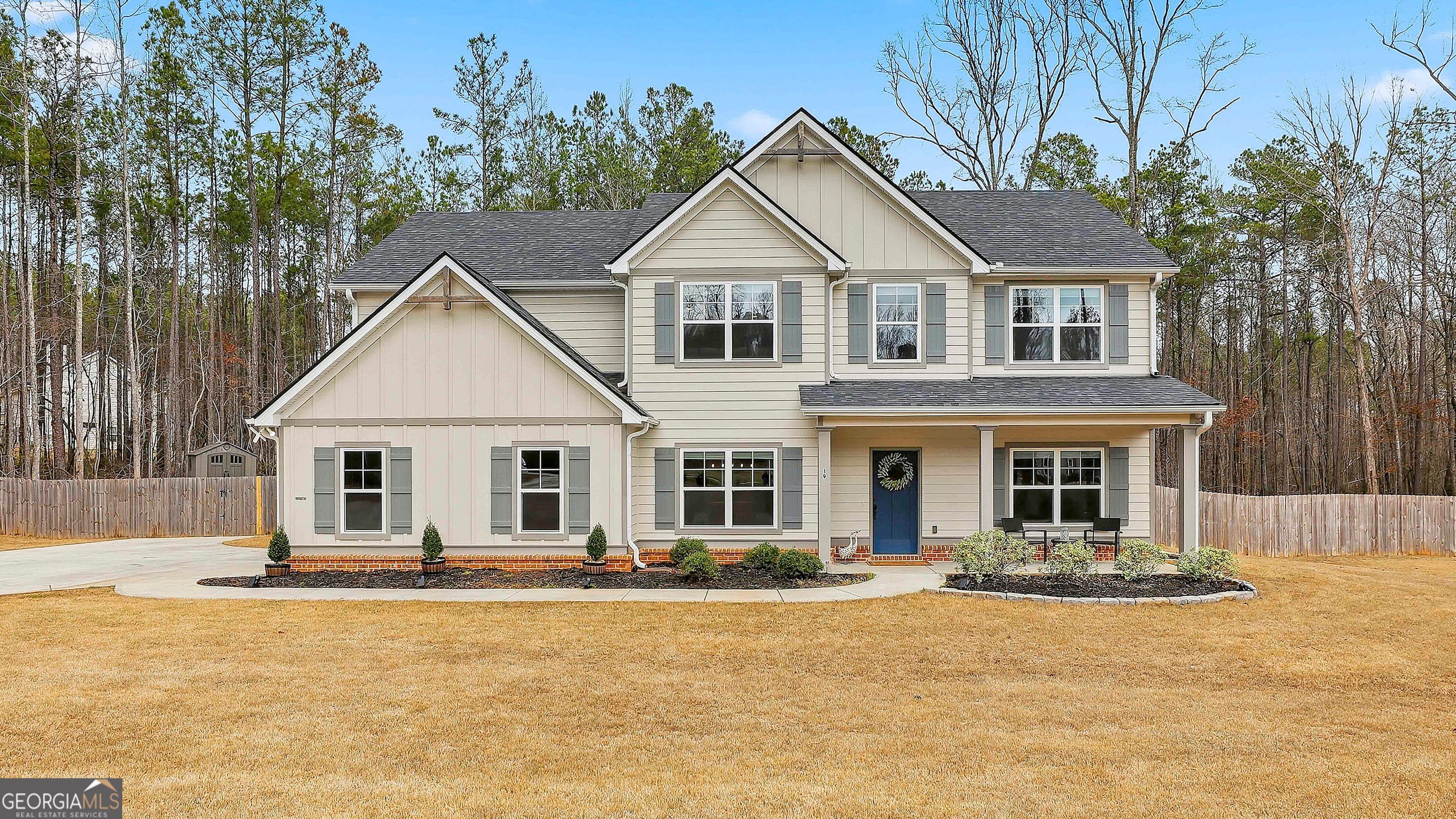 *** WOW! 4 Bedroom/3 Bath with HUGE MEDIA/FLEX ROOM and OVER 3100 SF with SALT WATER POOL and so much more!! EXPLORE THE TRAILS THROUGH THE WOODS in the back of this beautiful CUL DE SAC HOME! The Timberland Floor Plan is THE LARGEST FLOOR PLAN in Cornerstone subdivision so "Plenty of Room for Activities". *** MAIN LEVEL *** Plenty of Parking and covered front porch leads you into a welcoming foyer with detailed trim opening to living room/office and formal dining room with coffered ceiling. The Family Room offers designer fireplace and an open flow to a luxurious kitchen with quartz counters, decorative tile backsplash, stainless steel appliances, and an abundance of storage including large walk in pantry. Guest suite including full bath is also located on the main level. *** SECOND FLOOR *** Decorative iron spindles lead the stairway to the second level. An OVERSIZED PRIMARY SUITE with tiled bath and gorgeous styled tiled shower. Three more additional bedrooms, full bath, AND HUGE FLEX/BONUS ROOM AREA. Covered back patio overlooking private back yard! 16X32 SALT WATER POOL WITH LARGE SUNNING SHELF! Also a spacious STORAGE SHED and nearby fire pit. This beautiful home is nestled in nature's peace and quiet! With over 2 ACRES of Peaceful Tranquility, Privacy, and Space to Enjoy and Explore with both OPEN LAND and WOODED ADVENTURES, this home offers it all. Eligible for Agricultural Tax Reductions as well! Convenient access to I-85 and Newnan and convenient to AMAZON and KIA and so much more! TERRIFIC HOME! INCREDIBLE LOT! RELAXING POOL! FUN-FILLED WOODS! LOW $/SF MAKING IT PRICED TO SELL! MAKES THIS A FANTASTIC CHOICE FOR YOUR FUTURE HOME!