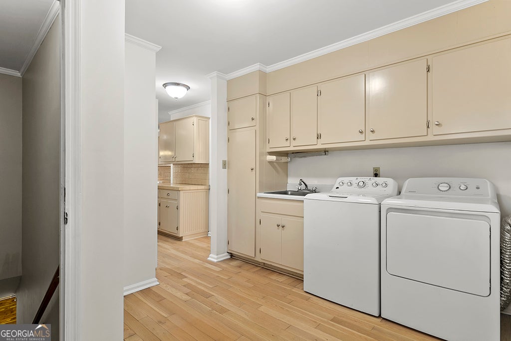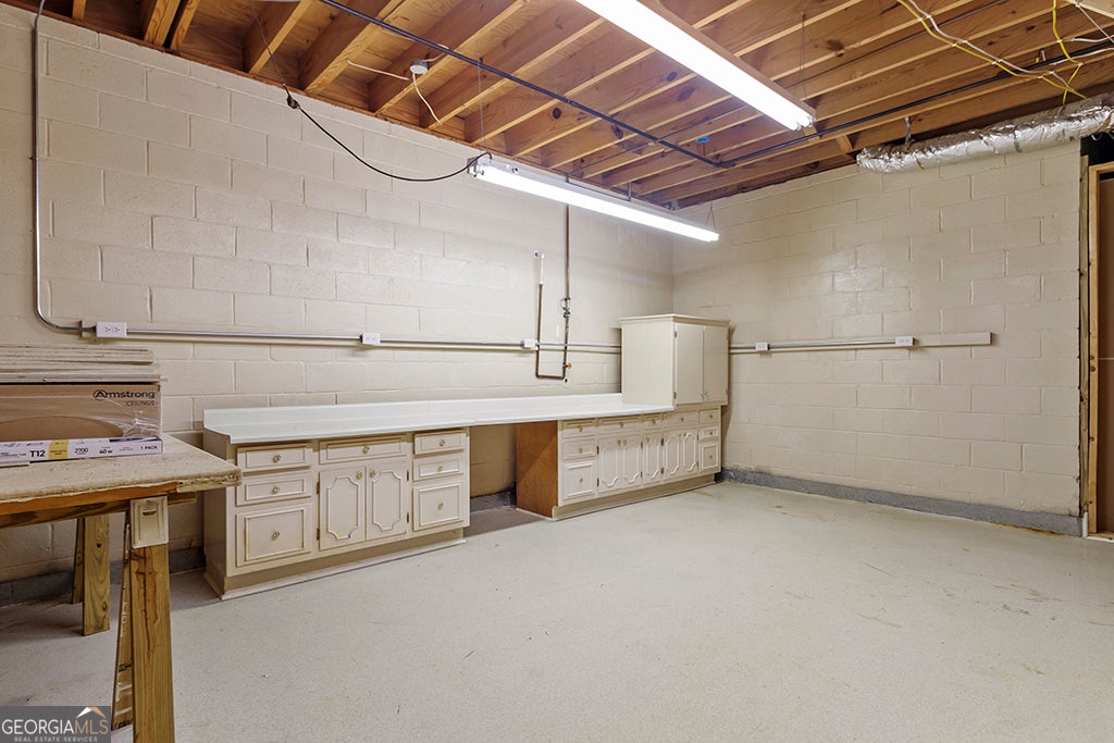PRICE REDUCED BELOW APPRAISED VALUE! This beautifully maintained mid modern, custom four sided brick ranch with a finished basement offers exceptional space, versatility, and standout features throughout. The main level includes fresh interior paint, new carpet in all bedrooms, a formal dining room, a separate family room with built in cabinets surrounding a ceramic tile fireplace. The custom kitchen is designed for function and flow with a dedicated prep area, large pantry, bar sink, granite and tile countertops, distinctive cabinetry, and two stainless steel sinks. The spacious Owner's Suite features two oversized walk in closets and a spa inspired private bath. The finished basement expands the possibilities with a second full kitchen, full bath, two rooms with closets, a cedar closet, workout/hobby area, and office space ideal for flexible living, multigenerational needs, or work from home options. Exterior highlights include a circular drive under a two car covered carport, three additional parking pads, and a drive through double gate for added backyard access. A Generac natural gas generator is included for peace of mind. Conveniently located near downtown Griffin, shopping, dining, schools, and parks. No HOA. Home is being sold as is. Seller will include a one year home warranty. Agent is related to seller.