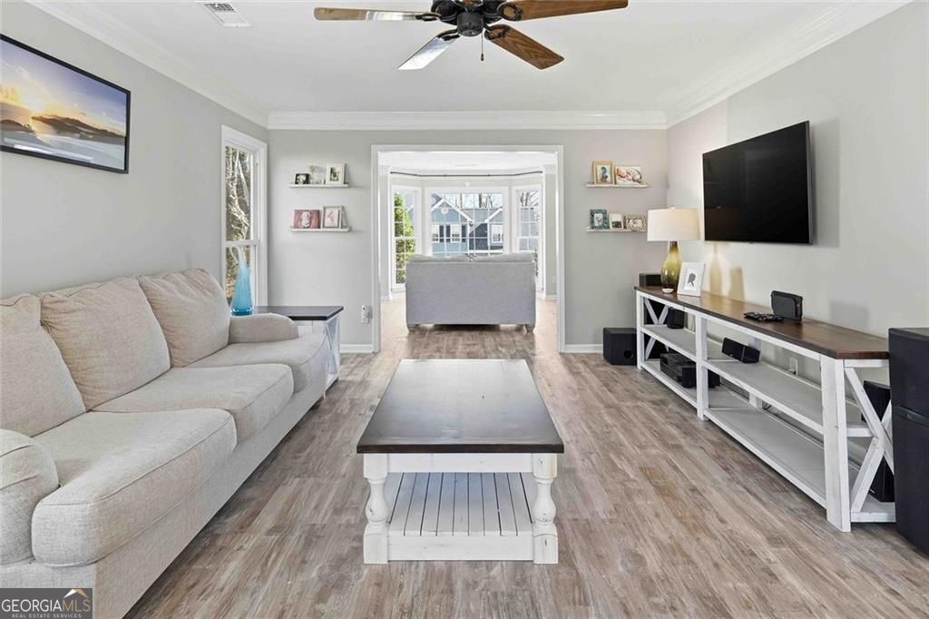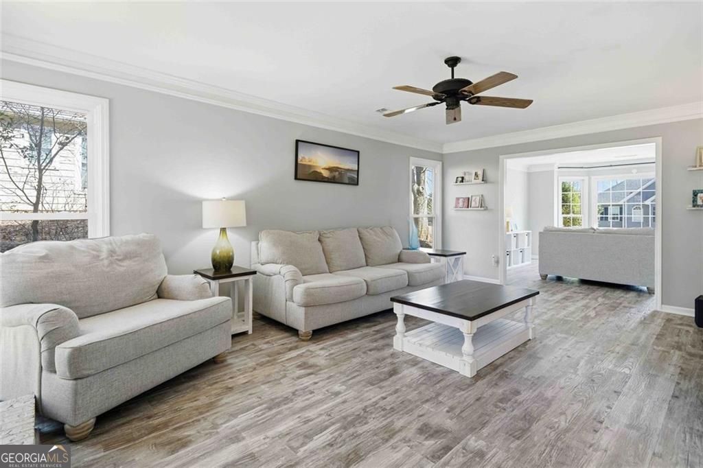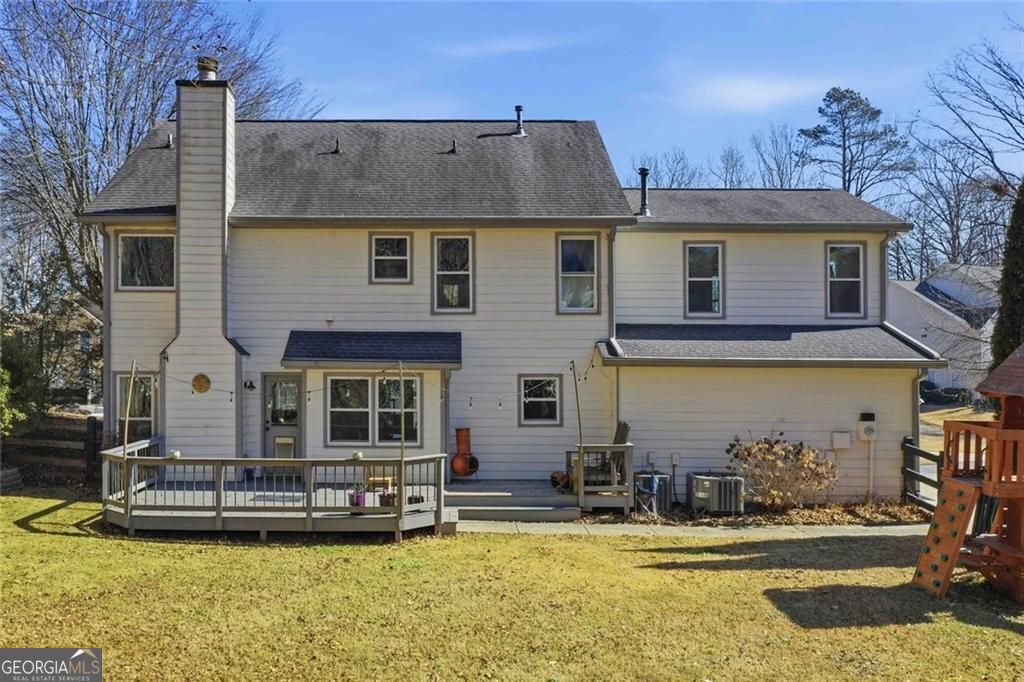Located in the highly sought-after Southlands swim/tennis community, this home offers space, flexibility, and an unbeatable location just minutes from downtown Woodstock, with easy access to Roswell and Alpharetta. The main level features a functional layout with a separate dining room, a bright eat-in kitchen with walk-in pantry, and a large family room anchored by an updated fireplace-all flowing seamlessly for everyday living and entertaining. A flexible front room provides the perfect option for a home office, playroom, or second living space. Upstairs, the oversized primary suite offers a true retreat with double vanities, a separate shower and soaking tub, and generous closet space. Three additional bedrooms, one oversized, provide room to grow, while the walk-in laundry room with extra storage closet adds everyday convenience buyers appreciate. Outside, enjoy a large, level, fenced backyard with a spacious deck-ideal for entertaining, play, or relaxing in a semi-private setting. The side-entry garage enhances curb appeal and functionality, and the home features double-pane, energy-efficient windows throughout. River Ridge High School district and surrounded by mature landscaping, this home combines neighborhood amenities, updates, and a prime location, making it a standout opportunity in one of Woodstock's established communities.