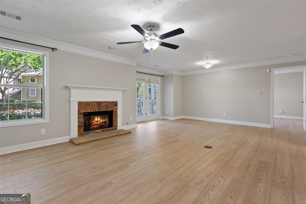 Move-in ready 2 bed, 2 bath home filled with natural light and featuring brand new LVP flooring, fresh paint, granite countertops, and new stainless steel appliances. Open layout with cozy fireplace, private balcony, and spacious primary suite with walk in closet and double vanity bath. Ground floor location means no stairs and easy access. Enjoy low maintenance living in Keys Crossing with quick access to Briarwood Park, shopping, dining, MARTA, and I-85.