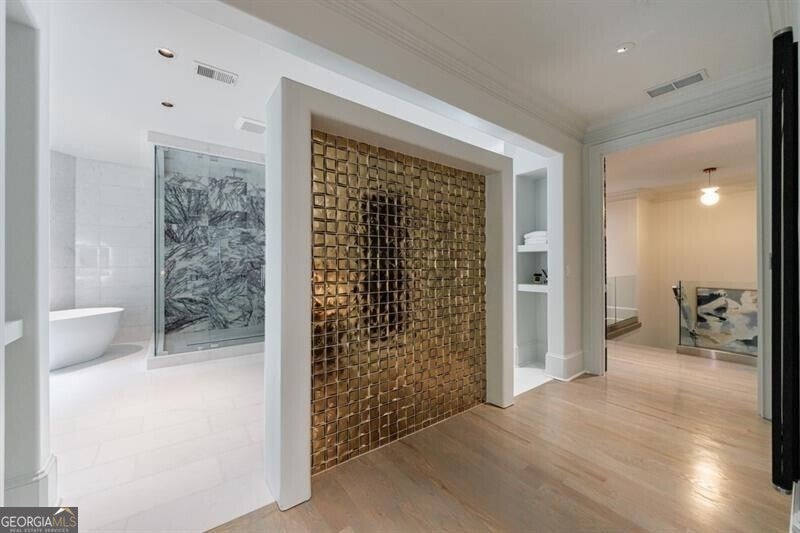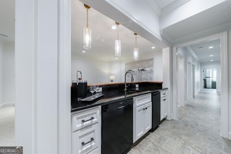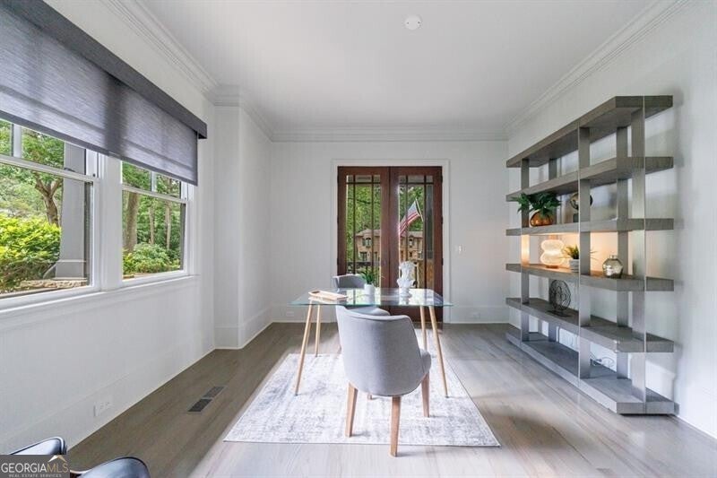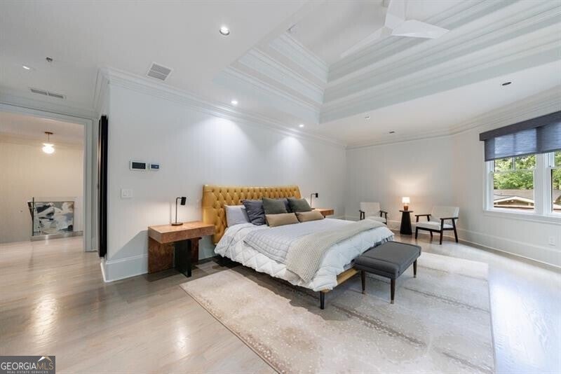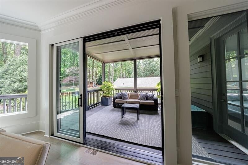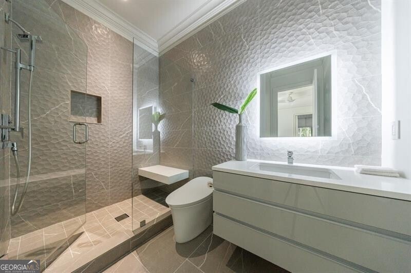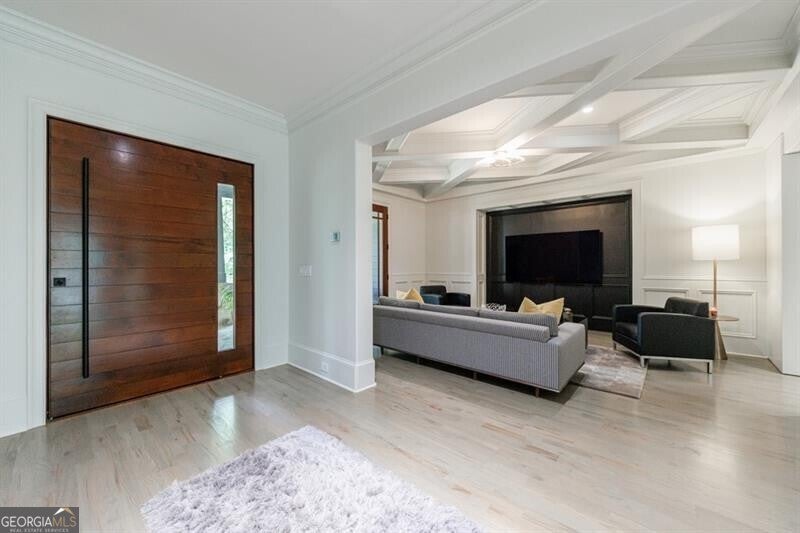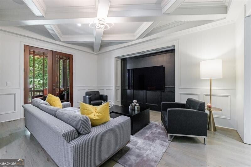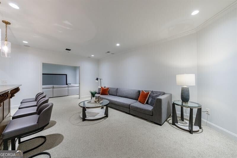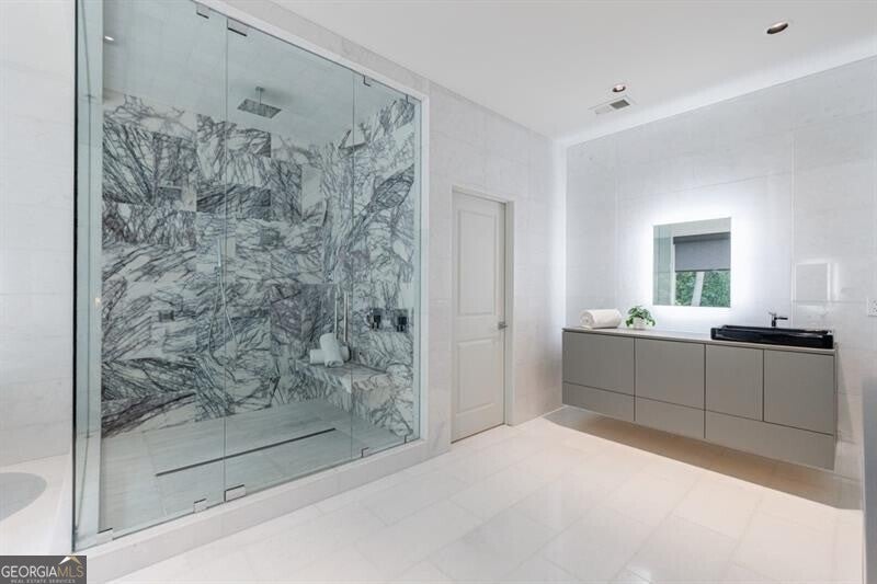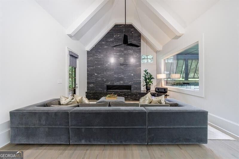 This incredible jewel box in Pine Hills was thoughtfully redesigned by renowned architect Jeffrey Bruce Baker. The extraordinary interior modern renovation has left no detail untouched. Large front porch leads to a custom wood pivot door. Light filled entry leads to living room with fireplace, private study and guest bedroom with full bath. The back of the house is breathtaking and unmatched with sunny dining room, two wine cellars with climate control, perfectly situated between the dining room and kitchen for entertaining. The kitchen is truly one-of-a-kind with a sleek waterfall island of Antolini's Bianco Lasa Fantastico marble, custom zebra wood cabinetry, oversized refrigerator, 3 dishwashers and Gaggenau appliances. There is a separate prep kitchen with plenty of storage as well as a breakfast area in the kitchen that overlooks the backyard. Kitchen opens to the keeping room with dramatic stone fireplace. The transition between indoor and outdoor is seamless with sliding doors from the kitchen transitioning to the covered porch with grilling area, stone fireplace and plenty of room for seating. Stunning custom staircase leads to 4 bedrooms and 3 full baths including oversized primary suite with gold leaf accent wall. Luxurious spa-like bathroom with dual vanities, separate tub and shower. The closet is state-of-the-art with glass cabinetry and large island fitted with a backlit onyx top. The terrace level is finished and has all the amenities including built in bar, media room, living room, bedroom, full bath, bonus room and separate pool shower. The backyard is truly special with manicured grounds, pool, level yard with mature landscaping. Truly a special home is a quiet neighborhood minutes away from all that Buckhead has to offer.