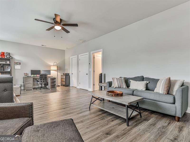 Welcome to 117 Ivey Way, an exceptional nearly new luxury Craftsman-style residence in The Enclave at Wiley Bridge, ideally located just minutes from the charm and vibrancy of downtown Woodstock and downtown Roswell. From the moment you enter, you're greeted by thoughtful design, upscale finishes, and a bright, inviting open layout. The main level showcases seamless open-concept living with rich hardwood floors, soaring ceilings, abundant natural light, and a cozy gas fireplace that serves as the focal point of the family room. At the heart of the home, the gourmet kitchen is both stunning and functional - designed to impress while accommodating everyday living. It features quartz countertops, an expansive center island with bar seating, stainless steel appliances, double ovens, gas cooktop, designer tile backsplash with vent hood, crisp white cabinetry, and a generous walk-in pantry. Whether entertaining guests or enjoying a quiet evening at home, this space offers effortless elegance. The main-level primary suite is a serene retreat, complete with a spa-inspired bath featuring dual vanities, an oversized shower, and an impressive walk-in closet. A secondary bedroom on the main level with its own private ensuite bath provides ideal accommodations for guests or multi-generational living. Upstairs, a spacious bedroom with a full ensuite bath offers exceptional versatility - perfect as a guest suite, home office, media room, or flex space to suit your needs. Step outside to the covered patio overlooking the backyard, an inviting setting for year-round relaxation and entertaining. The yard is completely fenced for your pets and littles! With convenient access to premier shopping, dining, and entertainment in Woodstock, Roswell, and nearby East Cobb, this home perfectly balances luxury, location, and lifestyle. 117 Ivey Way is truly move-in ready and ready to welcome you home.