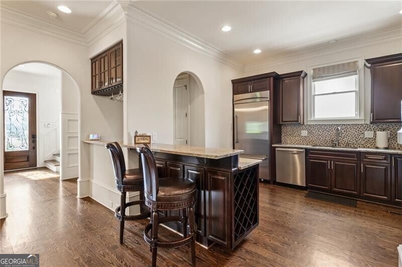 Turnkey, incoming producing Airbnb opportunity in the heart of the Old Fourth Ward! This stunning four-story townhome offers luxury living and incredible flexibility-with no rental restrictions or HOA, it's ready to be your next home or high-performing investment. Every level is effortlessly accessible via a 4-stop elevator, and the rooftop terrace takes center stage with skyline views, built-in appliances, and space to gather, grill, and unwind. The main level features a spacious great room with a private balcony, a gourmet kitchen with granite countertops, premium appliances, and a built-in bar, plus a generous dining area, dedicated office or sitting room, and powder room. The primary suite is a true retreat, complete with its own balcony, cozy fireplace, oversized walk-in closet, and a spa-like bath with double vanity, large bathtub, and walk-in shower. Upstairs, you'll find two additional bedrooms with individual en-suites and a laundry room with a sink and storage for added convenience. Just steps from the Beltline and minutes from Ponce City Market, Mercedes-Benz Stadium, Midtown, and some of Atlanta's best restaurants, shops, and nightlife. Whether you're an investor or just looking to live in one of Atlanta's most walkable neighborhoods-this home has it all. Schedule your tour today! Can be sold in conjunction with 631 Boulevard.