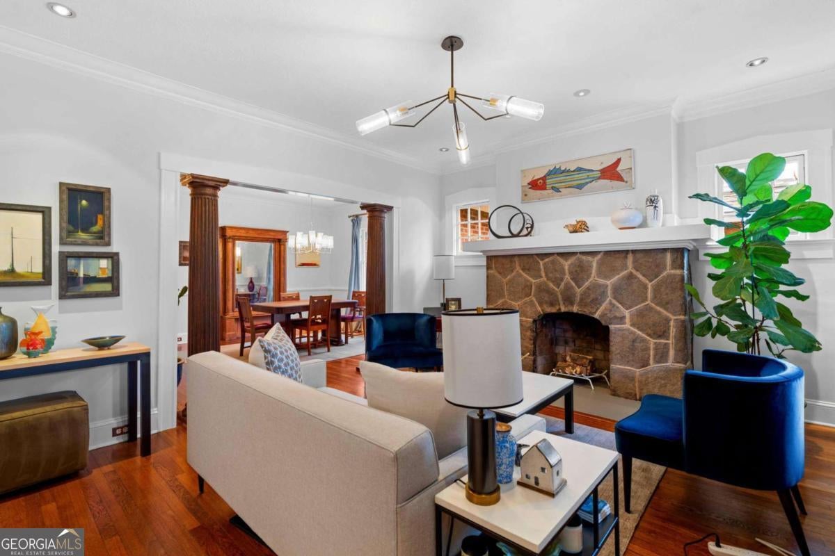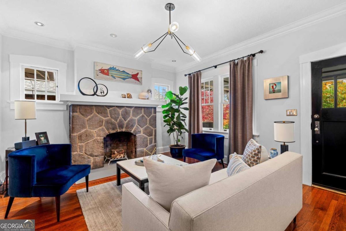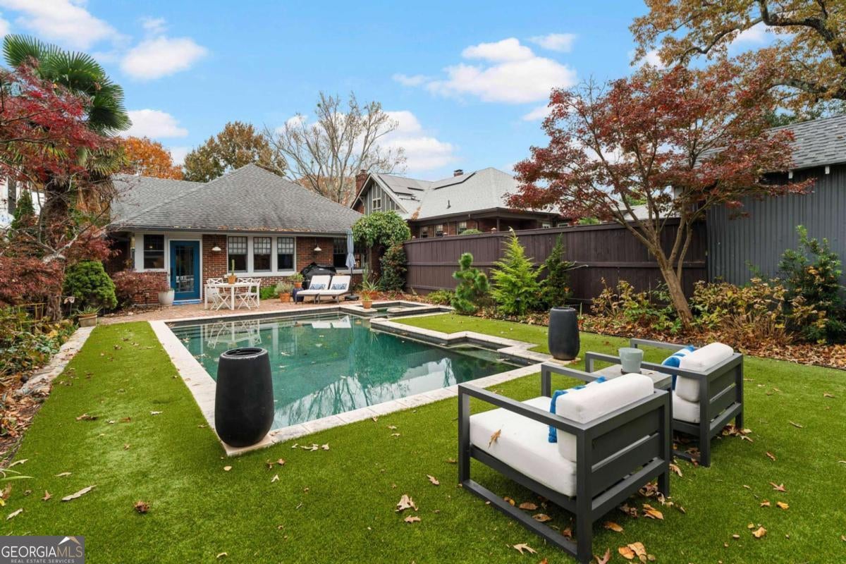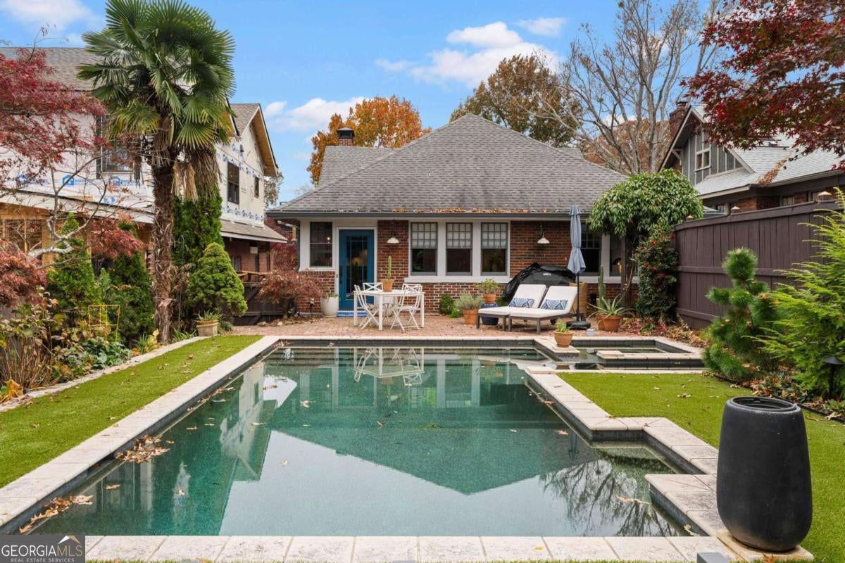 Classic American Bungalow located on prestigious Park Drive. Current owners have meticulously renovated/restored every square inch of this historic home, maintaining its rich architecture while adding modern amenities to provide comfort and style. Multiple entertaining and leisure areas begin on the inviting front porch. Framed with bold granite columns, this 'outdoor room' has been a favored spot for pre-dinner drinks as well as large porch parties during festivals at neighboring Piedmont Park. Easy flow continues through the front rooms. The living room/dining room and front parlor are graced with abundant natural light, french doors, fluted Doric columns and a stunning granite fireplace chimney. Original, pristine hardwood floors throughout. A true cooks' kitchen features Stone countertops crowning rich, wood cabinetry, stainless steel appliances and window-wrapped breakfast nook. Three bedrooms include the generous primary suite with LUX bathroom, additional renovated hall bath and 2 sundrenched secondary bedrooms. The Showstopper backyard is centered on gorgeous POOL/SPA surrounded by lush plantings and attractive user-friendly turf, anchored by the vintage brick patio ready for dining, grilling and socializing. Additional features...Roomy 1-car garage plus tandem parking spot, privacy fence and seasonal skyline views! Outstanding location with The Beltline, Piedmont Park, hidden jewel Orme Park, Botanical Gardens, Midtown Promenade(Trader Joe's, etc) and VIRGINIA HIGHLAND ELEMENTARY, all within a quick stroll as are the dynamic shops, restaurants and bars of North Highland Ave. Goodness in every direction!