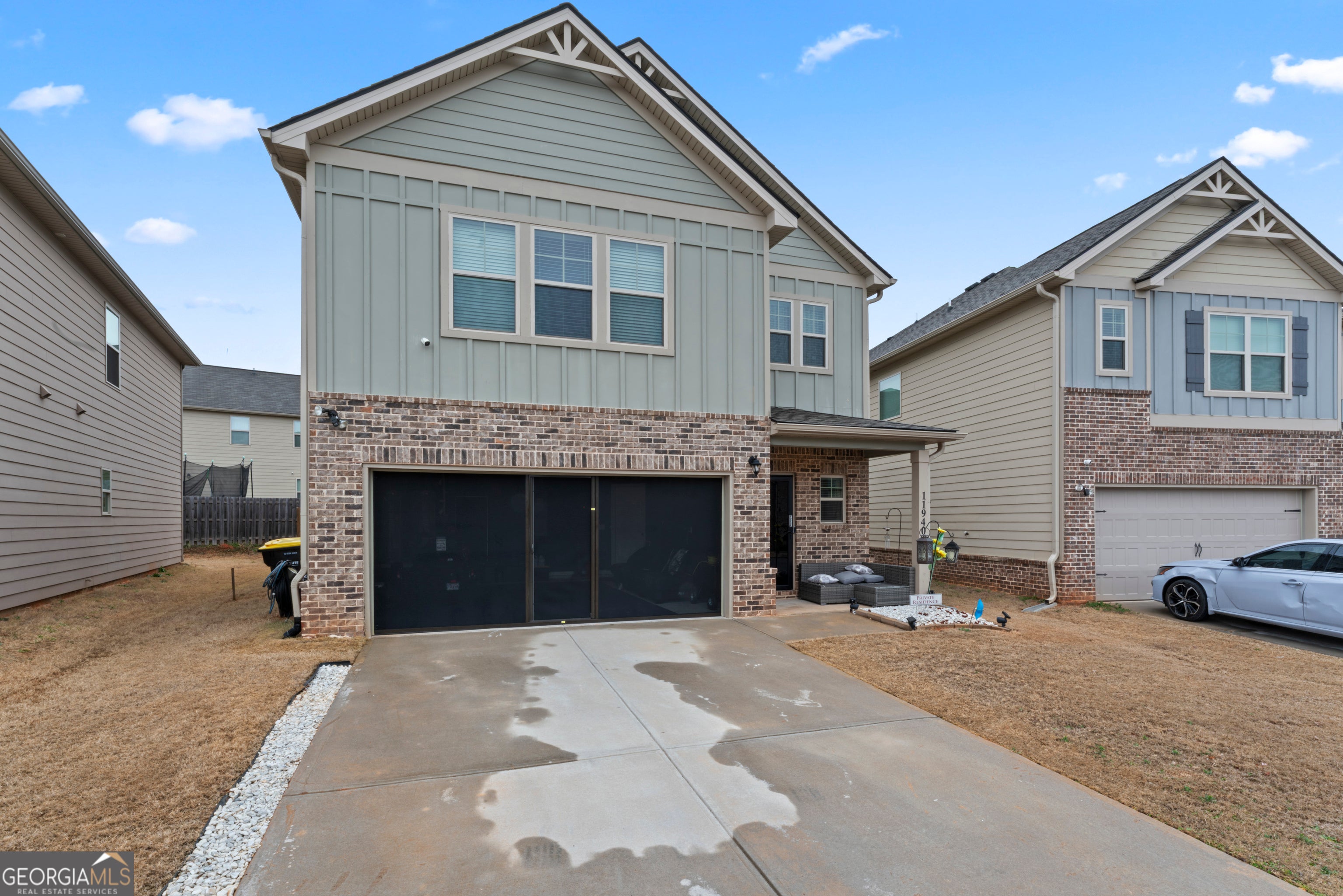 Welcome to 11940 Brightside Parkway. This inviting 4-bedroom, 2.5-bath home sits inside a secure gated community. The main level has a bright, open flow with a comfortable family room, a well-equipped kitchen, and a dining area that makes both everyday meals and weekend gatherings easy. A main-level bedroom sits near a convenient half bath, giving you a great option for guests or a quiet home office. Upstairs, you will find two secondary bedrooms and a nicely finished hall bath. The primary suite feels like a retreat, with a sitting area, two closets, including a large walk-in, and a bath with dual vanities, a soaking tub, and a separate shower. Enjoy life on the front porch or spend the afternoon in the private, fenced backyard. The fully screened garage provides flexible bonus space for workouts, hobbies, or gatherings, and can still be used for parking if you prefer. All of this is close to schools, shopping, dining, and major highways. Come see it and picture your life here!