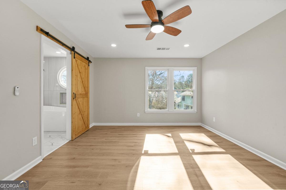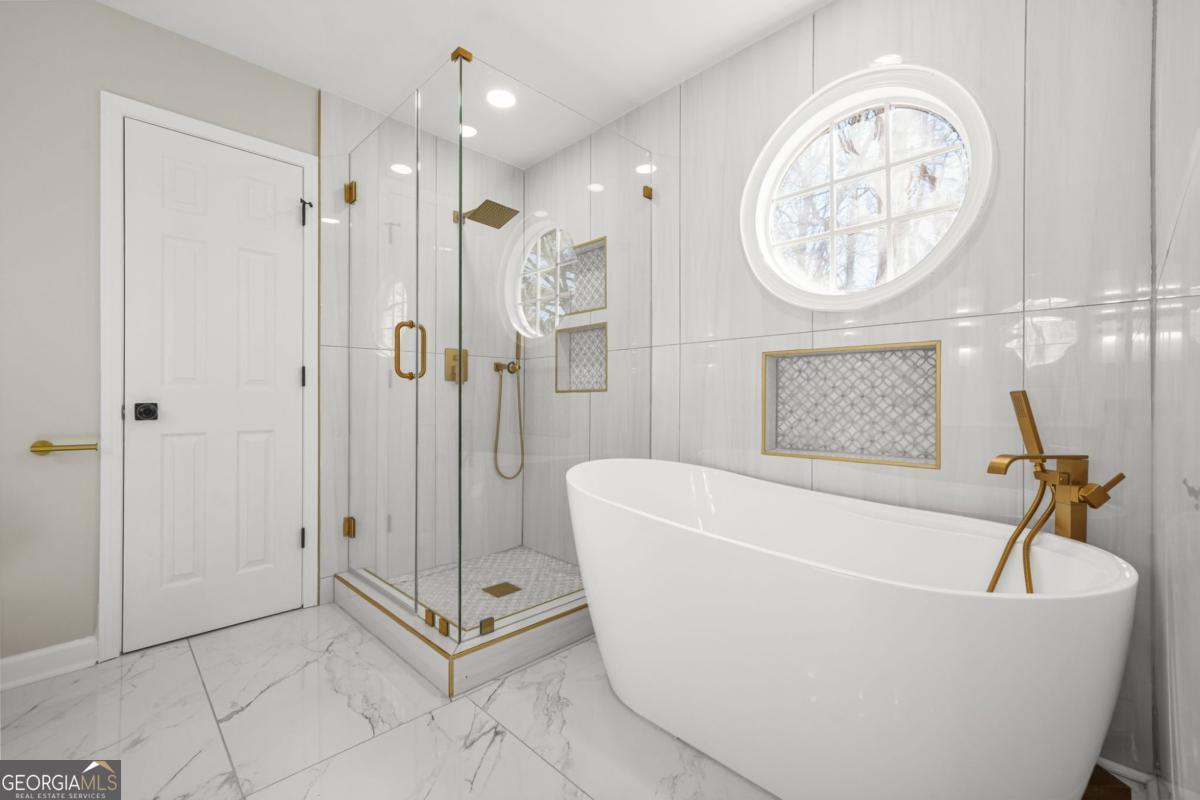 Limited-time incentive: Up to 1% lender-paid rate buy down available with preferred lender - a great opportunity to secure a lower payment in today's market. Welcome to 4945 Penscot Way in the highly sought-after, well-established Hidden Hills community in Stone Mountain, where timeless charm meets modern luxury. This completely renovated home offers the feel of new construction with brand-new garage doors, roof, gutters, windows, and exterior doors, along with fresh interior and exterior paint, all-new electrical and plumbing, new LVP flooring, recessed lighting, ceiling fans, and beautifully redesigned stairs with decorative rails. The stunning kitchen features new custom cabinetry, quartz countertops, and all-new stainless steel appliances, seamlessly opening to the formal dining area for an ideal entertaining layout. The living room is anchored by a newly built-in fireplace with a stylish shiplap accent wall, while the luxurious owner's suite delivers a true retreat with a freestanding soaking tub, double vanity with sconce lighting, custom glass shower with designer tile, and a charming barn door-making this move-in-ready gem the perfect blend of modern upgrades and established neighborhood appeal.