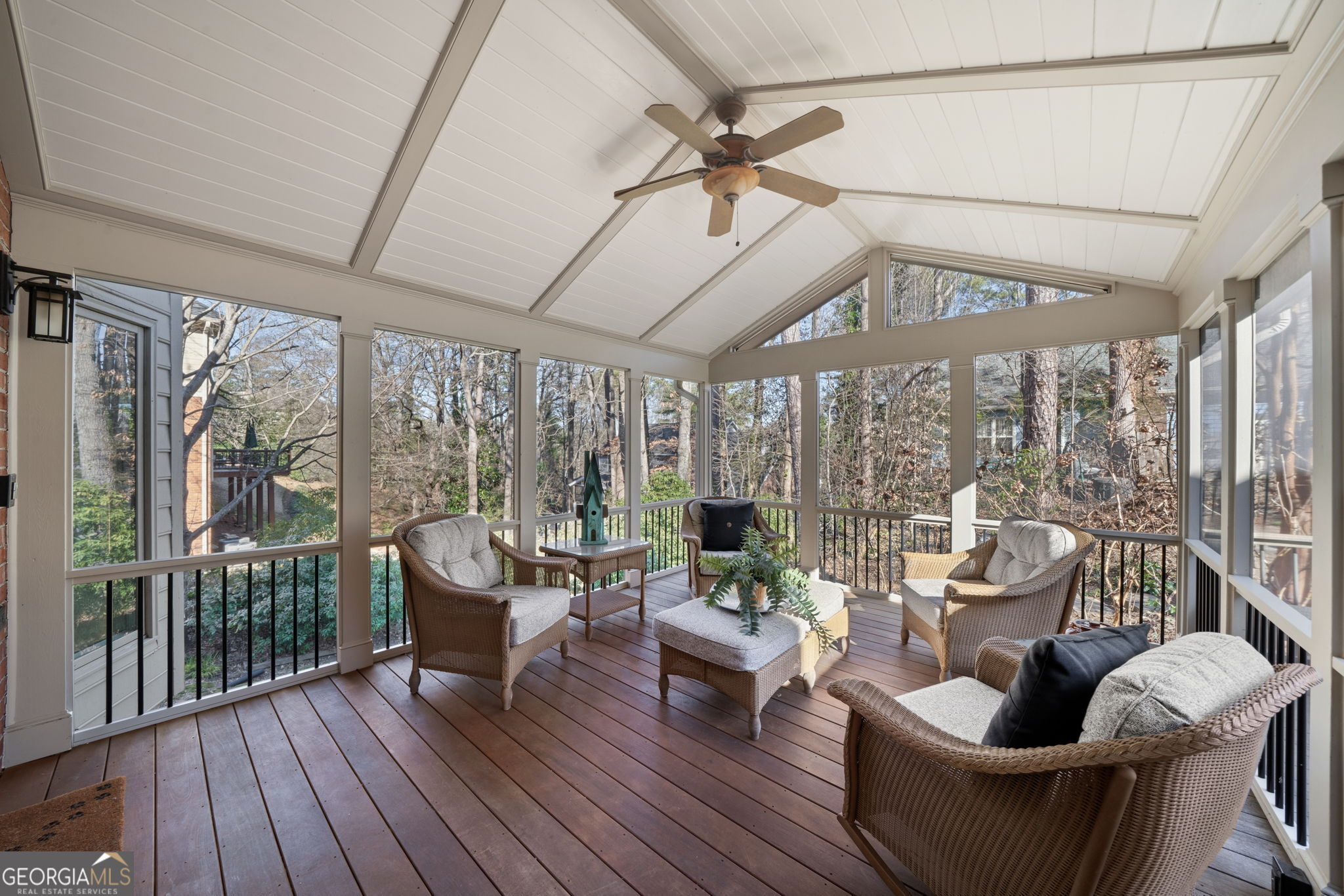 If you want real community, Byrnwyck delivers. Swim and tennis, a playground, book club, progressive dinners, and holiday parties that actually feel like holidays. From here you are minutes to GA 400 and I 285, close to the medical corridor with Northside Hospital, Children's Healthcare of Atlanta, and St. Joseph's Hospital of Atlanta, and a quick golf cart ride to Murphey Candler Park where weekends are spent on the ballfields and trails. Natural light pours through floor to ceiling windows across the main level with 9 foot ceilings, light hardwoods, neutral paint, and plantation shutters. The kitchen is dialed in with ceiling height custom maple cabinetry, stainless appliances, a new herringbone backsplash, glass display cabinets, and an island that opens to a vaulted breakfast room. French doors lead to a true walk out backyard and a screened porch with Brazillian wood decking that you will use year round. The layout works. A dining room that easily seats 12. A separate living room or office. A warm family room with bay window, custom built ins with glass shelving, and a stacked stone fireplace. Upstairs, the vaulted primary suite feels calm and airy with a walk in closet and a beautifully updated bath featuring floating vanities, a private water closet, and a multi sprayer walk in shower with seamless glass. Secondary bedrooms are generous with great closets and an updated hall bath. The professionally finished terrace level has 9 foot ceilings, a bedroom, full tiled bath, workout room, large fireside living space, and a near full kitchen. Ideal for guests, teens, or long term stays. Storage is abundant. Major improvements are already done. Roof is 5 years old. Newer windows. Newer driveway. Thoughtful updates throughout. You cannot recreate this light, this lot, and this level of finish in this location for the price.