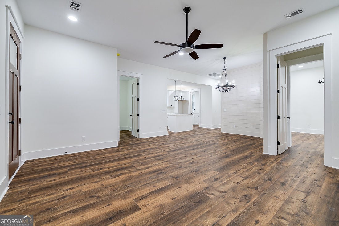 This gorgeous farmhouse sits on a 0.49-acre lot and exudes charm at every turn. A custom brick pathway leads to a welcoming wraparound porch, setting the stage for the beauty inside. As you step through the front door, it's immediately clear that no detail has been overlooked. The home boasts elegant Riverside by LW luxury vinyl plank flooring throughout, high-end lighting fixtures, shiplap paneling, upgraded hardware and trim, and durable Hardie board siding. The great room's striking centerpiece is a floor-to-ceiling fireplace, framed by a custom antique mantel, making it a perfect gathering spot. The kitchen is a chef's dream with a spacious center island, gleaming quartz countertops, and a built-in pantry. The owner's suite features a generously sized walk-in closet, double vanities, and a luxurious tiled walk-in shower. Plus, the thoughtfully designed laundry room offers ample cabinetry and a convenient laundry sink. To top it off, the insulated attic ensures efficient utility costs year-round.