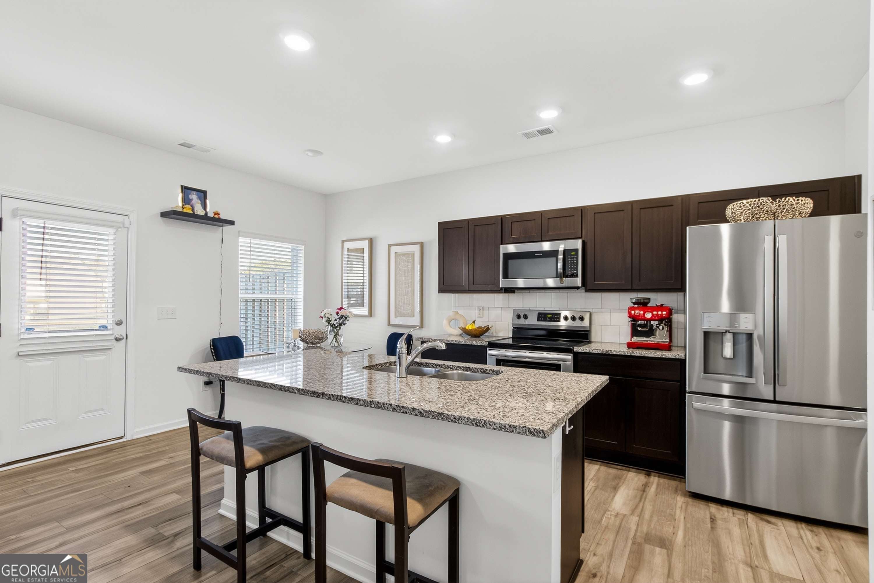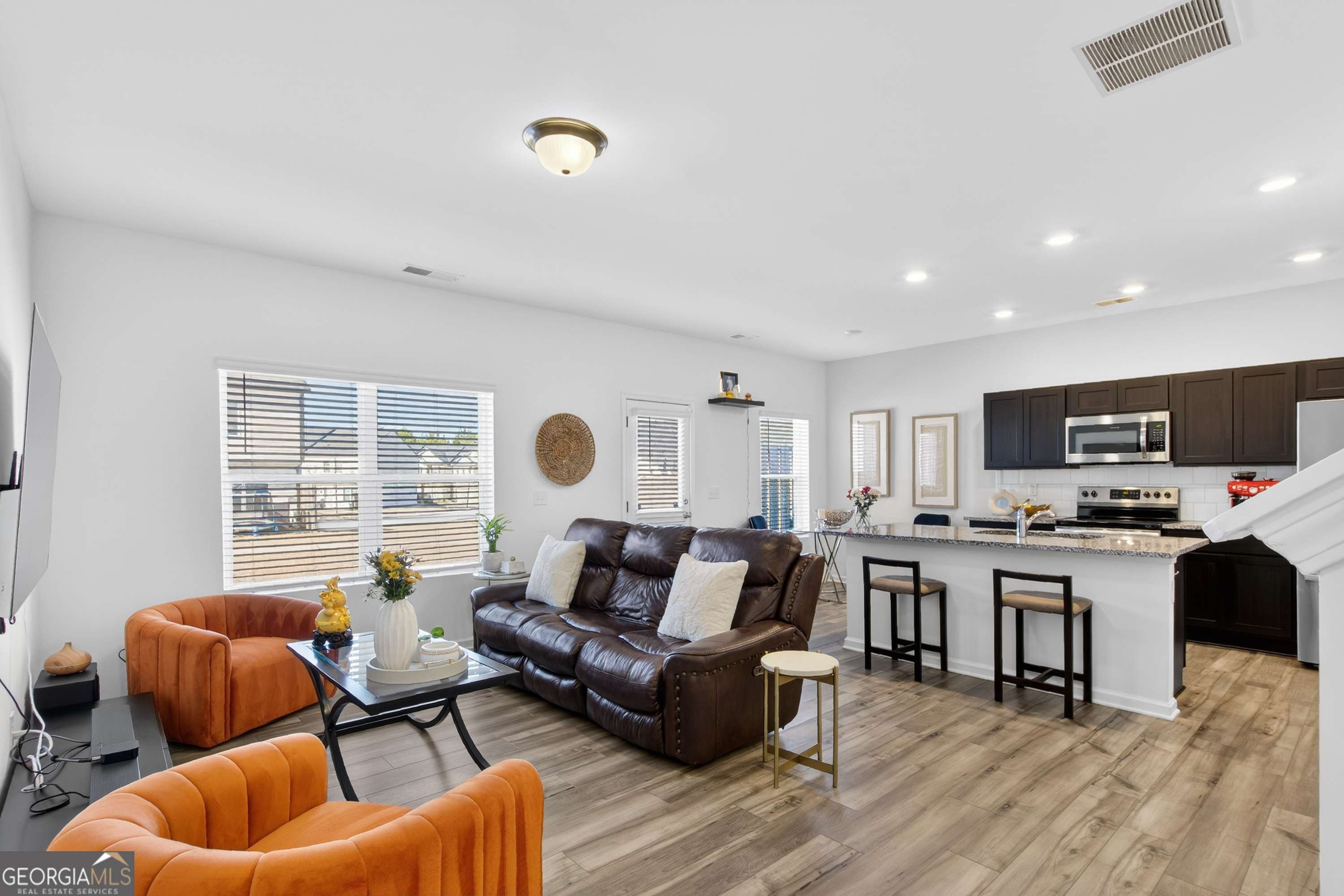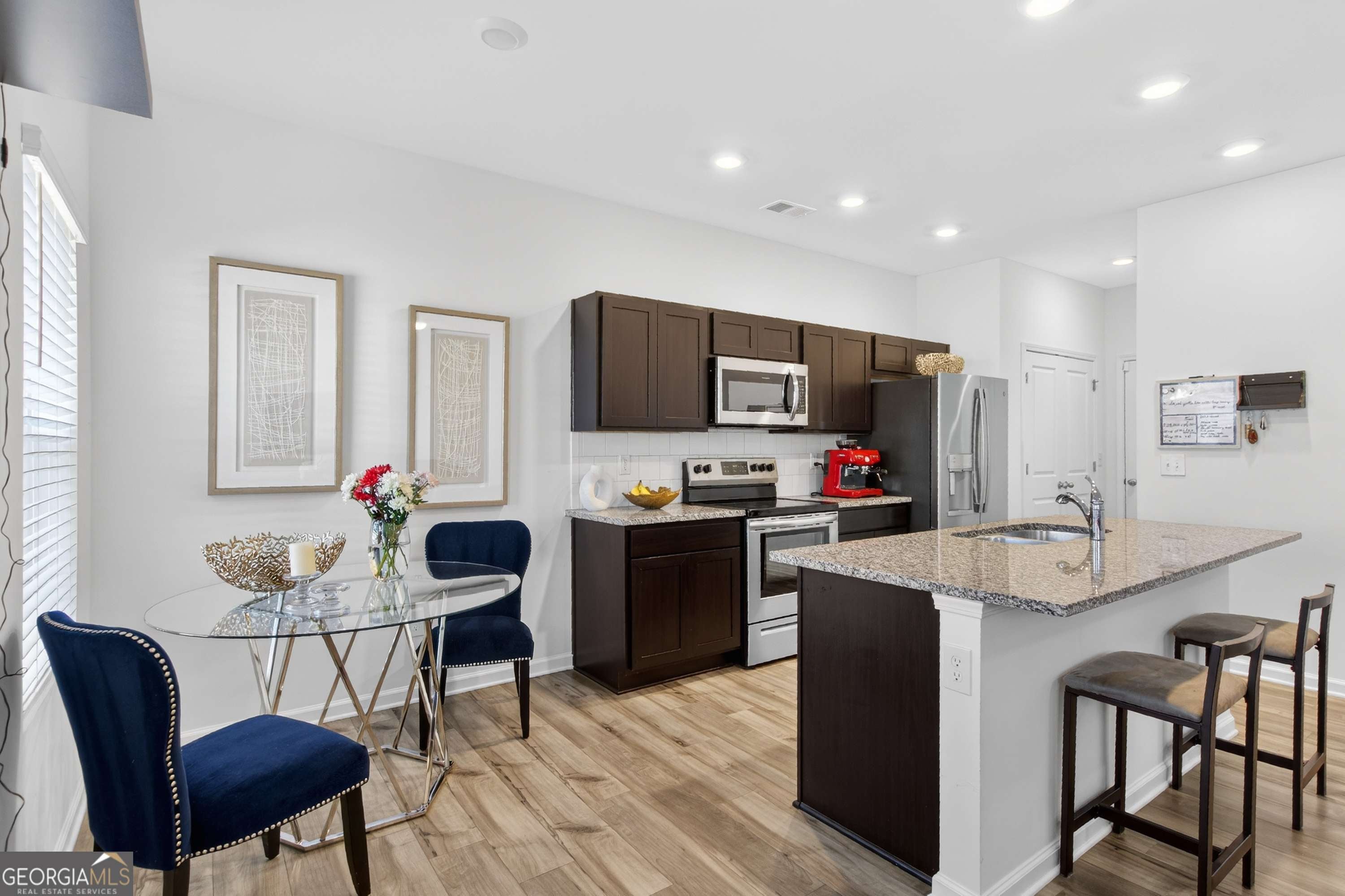 MOVE-IN READY with no waiting required, this beautifully maintained 2022 townhome is located in the heart of Grayson and offers a well-designed open-concept floor plan ideal for today's lifestyle. The main level features 9-foot ceilings and a spacious family room that flows seamlessly into the kitchen, which showcases custom cabinetry, upgraded stainless steel appliances, and an impressive 6'9" island perfect for entertaining. A pantry closet and ample space for a dining table add everyday functionality. Upstairs, the second floor offers three generously sized bedrooms along with a cozy sitting area/loft, providing flexible living space. The owner's suite serves as a private retreat with a luxurious walk-in shower and a remarkable walk-in closet. Enjoy outdoor living on the lovely patio overlooking the neighborhood park and fire pit. With desirable kitchen upgrades and immediate availability, this home is a true must-see.