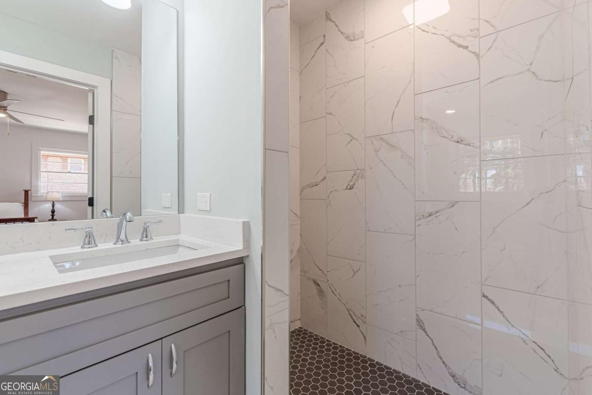 Beautifully and FULLY Renovated 3-Bed, 2-Bath Brick Ranch, NO HOA, Level-Lot on Nearly an Acre. Light-Filled, Private, and Move-In Ready. Welcome to this meticulously remodeled four-sided brick ranch tucked away in the peaceful Mountain Park Trail subdivision. Situated on 0.7 acre with mature trees providing natural privacy. This home blends classic charm with thoughtful, high-quality updates throughout. Every detail has been addressed with precision, from systems to finishes. This ranch is truly maintenance-free that's ready for immediate move-in and future peace of mind. Bring your inspector, this may be their shortest report yet. Located just 3 miles from Stone Mountain Park and within easy reach of Atlanta's top destinations. Step inside to an open, light-filled layout with site-finished oak hardwood floors throughout, NO CARPET, NO VINYL. Soft, neutral tones and updated fixtures, doors, and ceiling fans create a cohesive, comfortable atmosphere. The carefully and thoughtfully redesigned kitchen boasts custom solid wood cabinetry, granite countertops, new stainless steel appliances, a spacious walk-in pantry, offering both style and functionality. Both spacious bathrooms have been transformed into spa-inspired spaces with custom vanities, quartz countertops, stylish tile-work, double sinks, and premium fixtures. A large laundry room just off the kitchen adds convenience, while the daylight basement provides generous storage for anything; tools, gear, seasonal items and more. Major upgrades include a new furnace, tankless water heater, updated electrical panel, new plumbing, water lines and upgraded insulation all contributing to energy efficiency and worry-free living for years to come. Outside, the home's Craftsman-style curb appeal shines with cedar columns, new gutters, and professional landscaping. The flat yet well draining property offers ample space, opening up endless possibilities, whether that be to garden or design your outdoor dream space. You're just minutes from Publix, local dining, and shopping, with quick access to Atlanta's best attractions, like the Georgia Aquarium, Fernbank Museum, High Museum of Art, Ponce City Market, and the Atlanta Botanical Garden. Bonus: Seller is open to assisting with an interest rate buy-down, a truly great opportunity to take advantage of today's lower rates and reduce your monthly payment. Whether you're looking for a stylish primary residence, a serene retreat, or a turnkey long or short-term rental investment with no rental restrictions. This fully updated home offers comfort, flexibility, and lasting peace of mind.