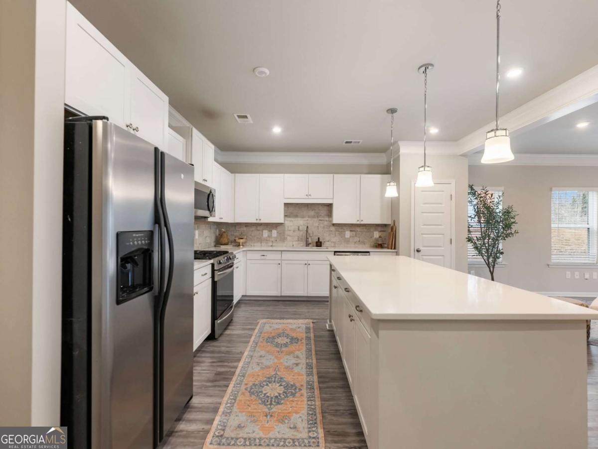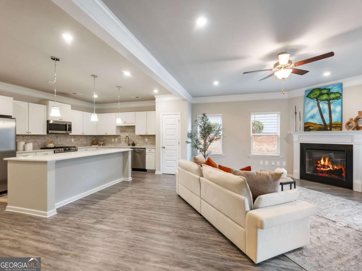 Exceptional Living in the Heart of Buford - Award-Winning Schools! Welcome to this beautifully maintained townhome, where modern luxury meets everyday comfort. The heart of the home is a stunning, chef-inspired kitchen featuring a massive island, crisp white cabinetry, stone countertops, and sleek stainless steel appliances-all overlooking an airy, open-concept living space. With sophisticated vinyl plank flooring throughout the main level, the home feels bright and polished from the moment you step inside. Retreat upstairs to find three spacious bedrooms, including a primary suite designed for relaxation, and a laundry room perfectly positioned for convenience. Outside, the covered back patio offers a private spot for morning coffee or evening unwinding. Located in a quiet community with a dedicated dog walk area, you are just a short stroll from the vibrant shops and dining of downtown Buford. Most importantly, enjoy the prestige of the Buford City School District, with all schools located within a mile!