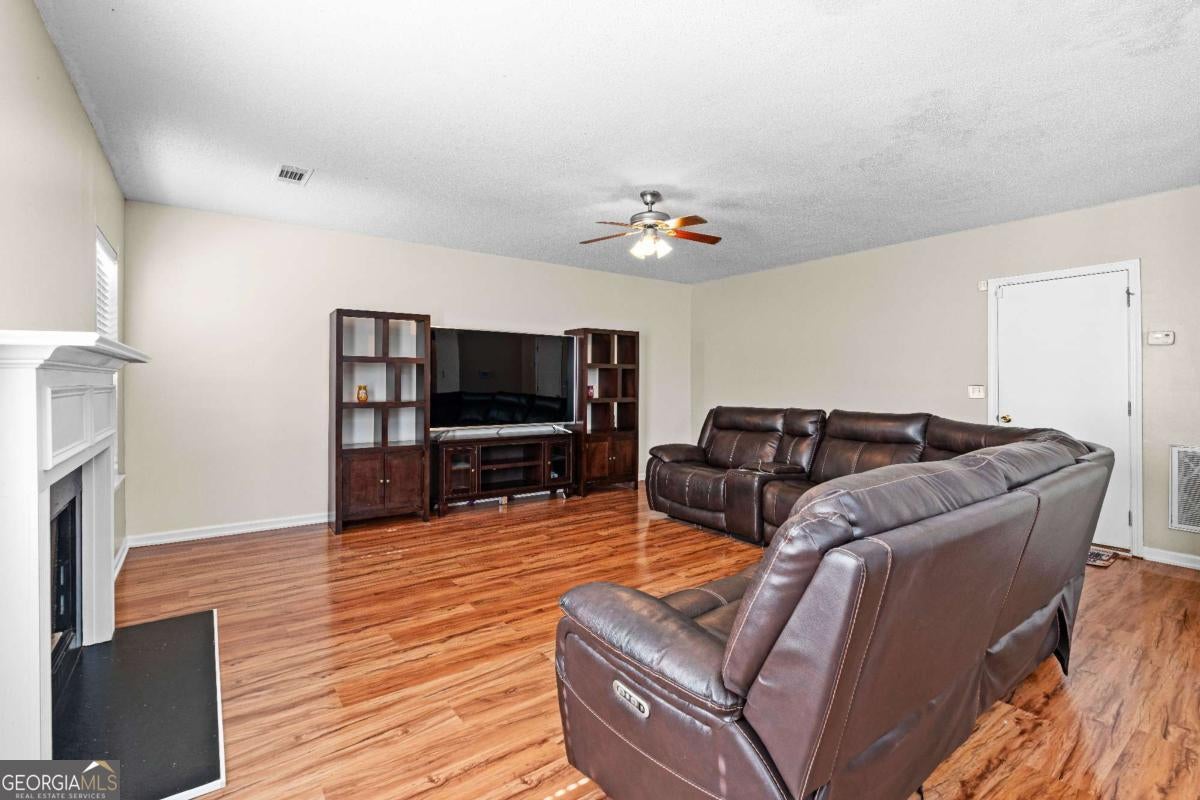 Welcome to this beautifully maintained 5-bedroom, 3-bathroom home offering comfort, versatility, and thoughtful upgrades throughout. Located in a desirable Atlanta neighborhood, this home features a flexible main-level layout with a bedroom and full bathroom-perfect for guests, multigenerational living, or a home office. Upon entry, you're greeted by a light-filled sitting room that can double as a formal living area or flex space. Gorgeous NEWER FLOORING was installed throughout the main level in 2023, complementing the UPDATED KITCHEN featuring GRANITE countertops, a stylish backsplash, and a seamless view into the cozy family room with fireplace-ideal for everyday living and entertaining. Upstairs, the spacious primary suite impresses with double tray ceilings, a ceiling fan, and an en-suite bath with new flooring, dual vanities, a makeup area, and TWO CLOSETS. Three additional upstairs bedrooms with cathedral ceilings and ceiling fans, a full size bathroom, and a laundry room all for added convenience. Enjoy peace of mind with major improvements already done for you-a brand NEW ROOF, PRIVACY FENCE, and low-maintenance TREX DECK installed in 2024. Just over 3,000 square feet this home offers the space, features, and upgrades today's buyers are looking for-schedule your showing today. It won't disappoint! There are NO RENTAL RESTRICTIONS.