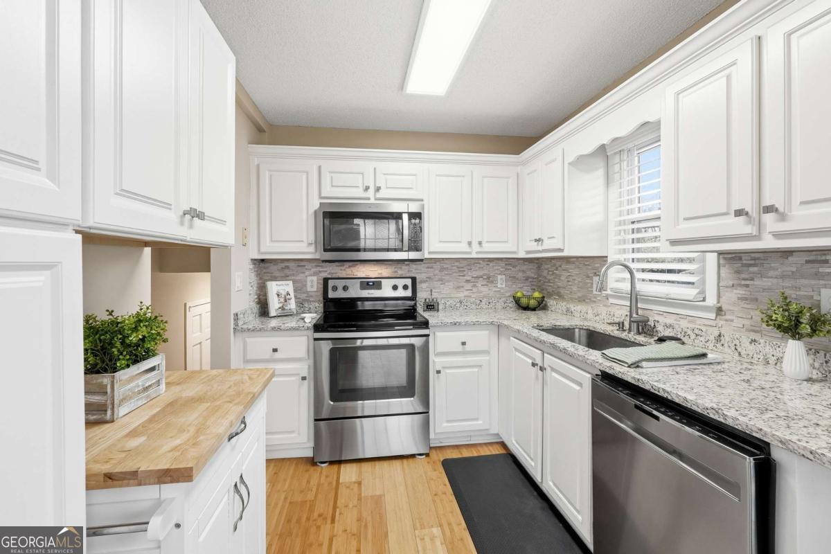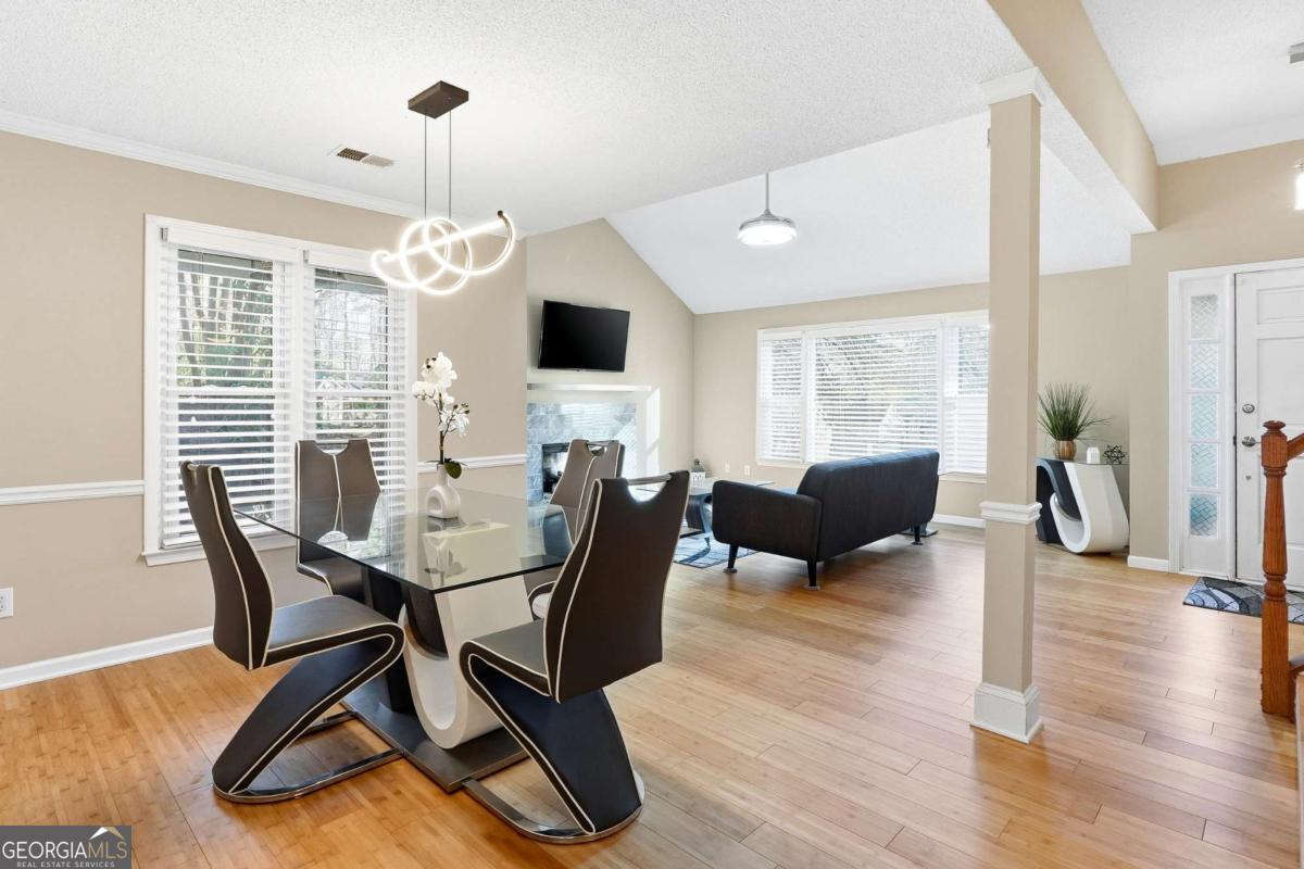 Updated Multi-Level Home in Sought-After Towne Lake Area of Woodstock! Move-in ready and beautifully updated, this 3 bedroom, 2 bath home offers stylish finishes, flexible living space and a fantastic location just minutes from shopping, dining, and the interstate. Step inside to a bright vaulted great room featuring bamboo flooring, a decorative fireplace, and an open flow into the dining area - perfect for everyday living and entertaining. New modern lighting fixtures and fresh neutral paint throughout create a clean, contemporary feel. The kitchen combines style and function with white cabinetry, granite countertops, and newer stainless steel appliances, offering a crisp, modern kitchen. The spacious primary suite provides a relaxing retreat with a double trey ceiling, crown molding, new ceiling fan, walk-in closet and a private bath featuring double sink vanity with granite counters, a soaking tub and separate shower. Two generously sized secondary bedrooms include modern ceiling fans and share an updated hall bath with a white vanity and granite counters. The lower level offers a versatile bonus/workout room ideal for a home gym, media space, office, or playroom. Enjoy outdoor living on the covered back porch overlooking a huge backyard - perfect for entertaining, pets, or play. Hurry, this will go fast! An oversized two-car garage provides excellent storage and functionality. Located in desirable Towne Lake, this home combines comfort, updates, and convenience in one exceptional package. Owner will consider selling furnished. Hurry this will go fast!
