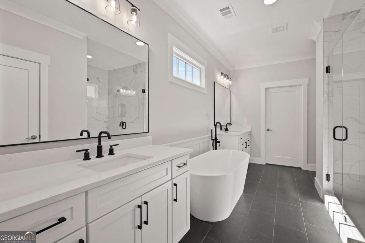 The Bronson Plan by JW Collection founded by John Wieland! Bring your golf cart for this 4 car garage. This new plan is a stunning detached home with exquisite John Wieland features. This home has wonderful living space for all your entertaining needs. Large and open with lots of windows! The kitchen has beautiful cabinets that go all the way to the top of the 10' ceilings. And EVERY cabinet in this home is soft close! The island is spacious and comes equipped with a double trash pullout, sink, and dishwasher. Of course, there are lots of beautiful quartz countertops and cabinets to choose from. You will meet with our JWC designers to personalize the interior of your home. Enjoy the wood shelving in your walk-in pantry. Hardwoods are on the entire main level, loft, owner's bedroom, bonus room and all stairs. Gleaming commercial stainless-steel appliances and tile to the ceiling behind your designer kitchen wood hood. What home would be cozy without a fireplace with gas logs, built-in bookcases in the great room. Well, you get that too! The owner's suite is equipped with double walk-in closets, including closet systems, that connect to the owner's bath. You will find a spa experience with a free-standing soaking tub, large shower with bench, shampoo niche, handheld shower attachment, frameless door, and tile all the way to the ceiling. In fact, it does not matter which bath you see, they all have tile to the ceiling, undermount sinks, and quartz countertops. Enter from your oversized garage to a mud room with bench, cubbies, and hooks. The terrace level has a private bonus room with a separate bedroom, full bath and walk in shower. Also, it has a side patio with a fenced side yard. You also have two large, covered porches on the front of the home and one on the back of the home. The main level has a dedicated study, dining room and large open entertaining space! The upper level has the owner's suite, two other bedrooms with their own private baths along with a loft space for the perfect office or reading nook. The home is under construction and should be ready for move in early 2026. Come by the neighborhood anytime for a tour and choose this home or another lot to build. You will meet with the JWC design team to personalize the interior design for the finishes. The amenities are the BEST Woodstock has to offer including a clubhouse with fitness center, 2 dog parks, swimming pool with children's splash pad and cabana, community garden, fire pit, pavilion, playground and the trail that runs through and connects to the Noonday Creek Trail. This is really a location you need to see!!! These homes are selling fast and limited availability. THE HOME IS OF A SIMILAR HOME THAT WAS BUILT IN SOUTH ON MAIN. THE HOME IS CURRENTLY UNDER CONSTRUCTION.