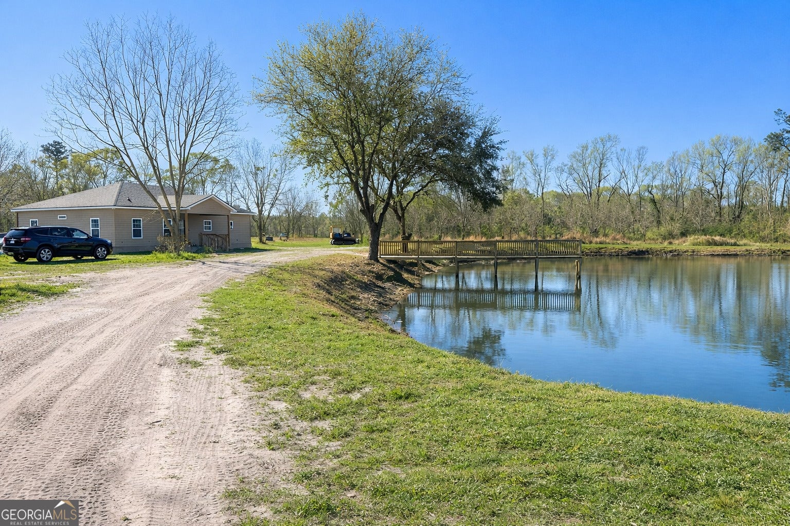 Welcome to your own private slice of Georgia paradise where space, freedom, and opportunity come together. This brand-new construction home sits on approximately 2.672 acres, offering the perfect blend of rural tranquility and modern living for buyers looking to enjoy peaceful surroundings without sacrificing convenience. The property also features a private pond complete with a new dock, creating the perfect setting for relaxing afternoons, fishing, or enjoying peaceful waterfront views right in your own backyard. Designed with gathering and comfort in mind, this thoughtfully built home features three bedrooms and two and a half bathrooms with a spacious open-concept layout that seamlessly connects the kitchen, dining, and living areas. Luxury vinyl plank flooring flows throughout the main living spaces while large windows fill the home with natural light, creating a bright and welcoming atmosphere. The oversized kitchen island serves as the heart of the home, perfect for meal prep, entertaining, or casual everyday living. A dedicated pantry add both function and style. One of the most desirable aspects of this property is the freedom it provides. With no HOA and no restrictive covenants, you have the flexibility to truly make the property your own - whether that includes parking recreational vehicles, adding a workshop, or creating your own homestead setup. The property is eligible for USDA, FHA, and VA financing, making it an excellent opportunity for a wide range of buyers. For added peace of mind, the builder is providing a 3-year home warranty and has received termite soil treatment. Some photos may depict a finished or similar property for illustrative purposes only, and the seller makes no representation that fixtures or finishes shown in staged or sample images will be identical to the completed home. Some images may be digitally enhanced to showcase the home's potential. DO NOT GO TO THE PROPERTY WITHOUT AN APPOINTMENT.