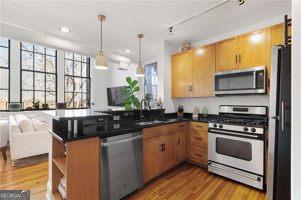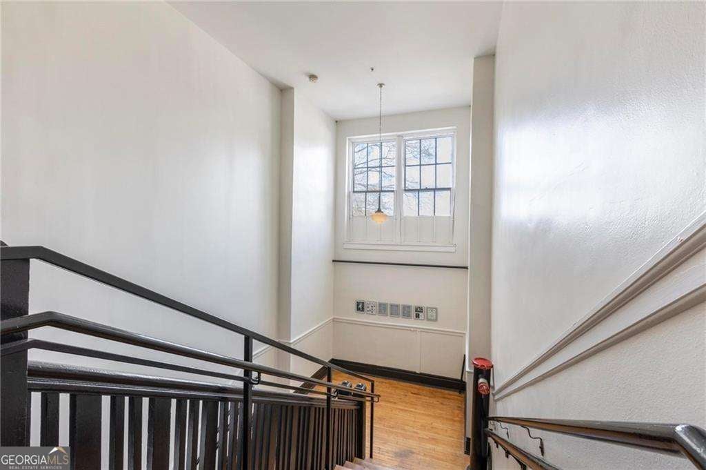 Welcome to this one-of-a-kind, top-floor loft in the iconic Highland School Lofts, an historic conversion in the heart of Poncey-Highland, one of Atlanta's most sought-after urban neighborhoods. The character-rich architecture captured on the National Register of Historic Places provides dramatic scale, natural light that highlights original schoolhouse hardwoods, and enduring charm you simply won't find in cookie-cutter condos. BONUS ALERT! TWO deeded parking spaces! Facing the schoolyard, this unique two-level 1 bed + loft / 1.5 bath configuration offers soaring ceilings, massive historic windows, and exposed brick-accented walls that give the space an authentic urban loft feel. The upper private bedroom suite is cleverly enclosed thanks to vintage operational window and door panels that bring the outdoors in, and add character you won't find in other units. A new custom closet system has been professionally installed, and just beyond the bedroom closet, discover a rare 200sqft private storage room, perfect for seasonal gear, luggage, and more. The Highland School Lofts community enhances urban living with a pet- and people-friendly courtyard, inviting outdoor gathering spaces, secured bike storage, and a true sense of connection that's increasingly rare in Intown Atlanta. From your doorstep, stroll to Ponce City Market, access the Atlanta BeltLine Eastside Trail, and the open green space of Freedom Park. You'll also find local cafes, bottle shops, and neighborhood favorites, with Virginia-Highland and Inman Park charm just around the corner. All of this comes together in a setting that honors its historic roots while connecting you to a walkable Intown lifestyle, a big reason Poncey-Highland continues to be one of Atlanta's most dynamic places to live.