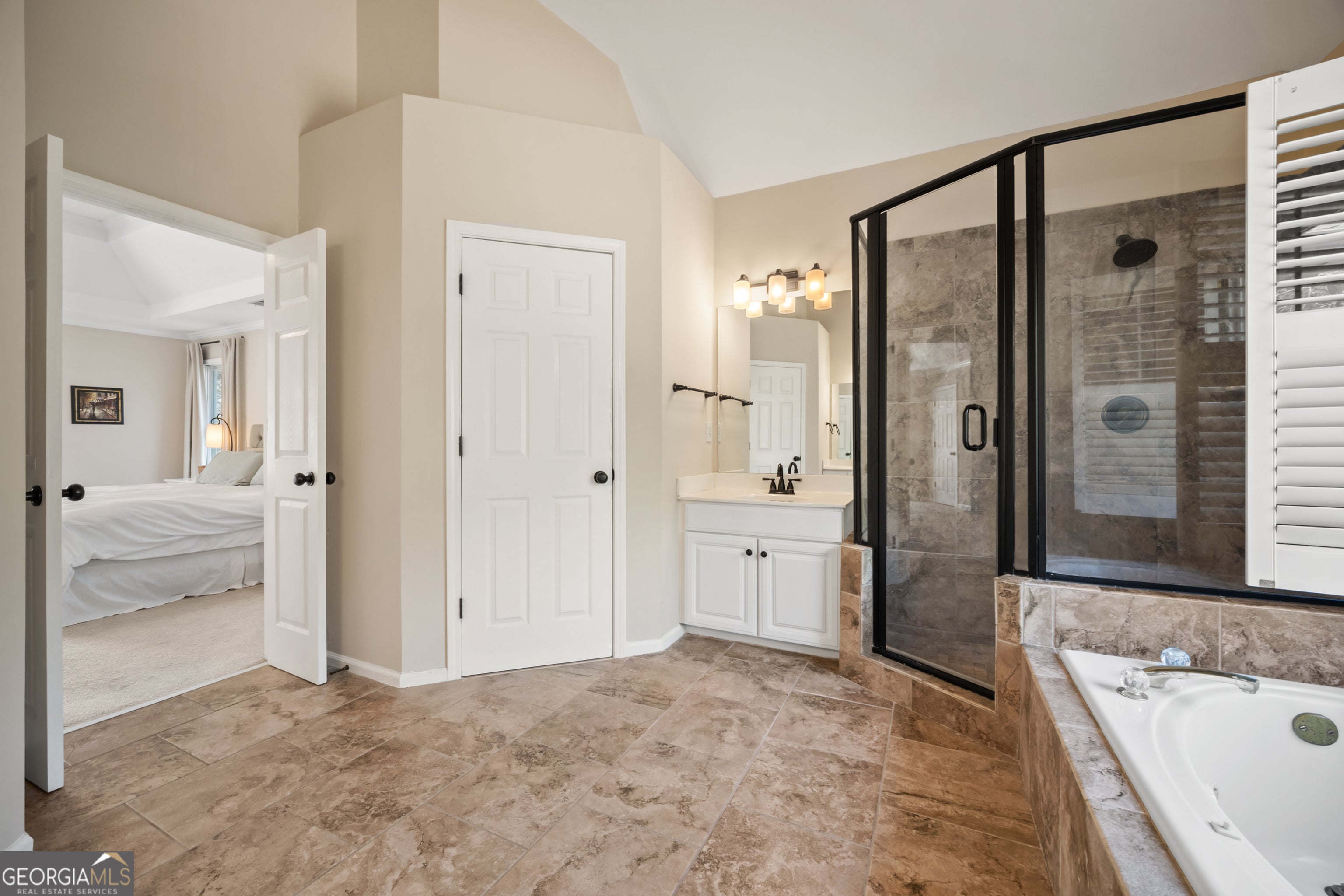- Interior FeaturesDouble Vanity, High Ceilings, Separate Shower, Soaking Tub, Tray Ceiling(s), Walk-In Closet(s)